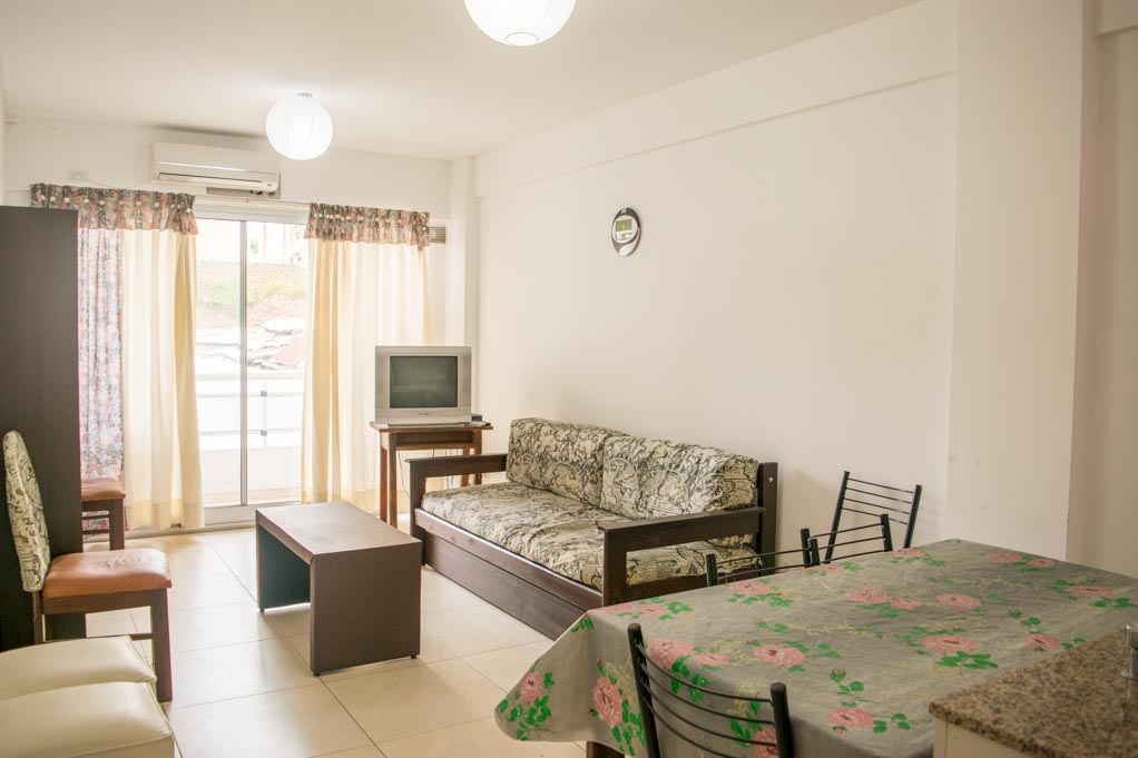 This 1 bedroom furnished Apartment is located a 1 minute’ walk from the bus stop and a 14 minutes’ walk from the Metro Station Aguero.The apartment has a living room, dinning room, kitchen (open), 1 bathroom and balcony. The bedroom 1 has a double bed, closet, nightstand and chair. The place measures 42m² + 3m² of balcony approximately. The cost of services like common expenses, hot water and cold water are paid in advance together with the monthly rent, with a consumption limit of $ 2USD. In addition, should be considered, the payment of the expenses of services of electricity, gas, internet, TV cable and heating that add $ 2USD approximately. You should pay a security deposit, which will be returned at the end of the lease term; The tenant(s) must also pay $ 1USD fee when the unit is returned for cleaning. The unit is located close to a huge variety of establishments, restaurants, cafeterias, and bookstores located mainly on Santa Fe Avenue. A few steps away from the Agüero Metro station, there is the Xul Solar Museum, where there are exhibit works done by one of the most emblematic Argentine artists. There are also multiple green areas to practice sports or enjoy the fresh air. It also has several public transportation services to different areas of the city.