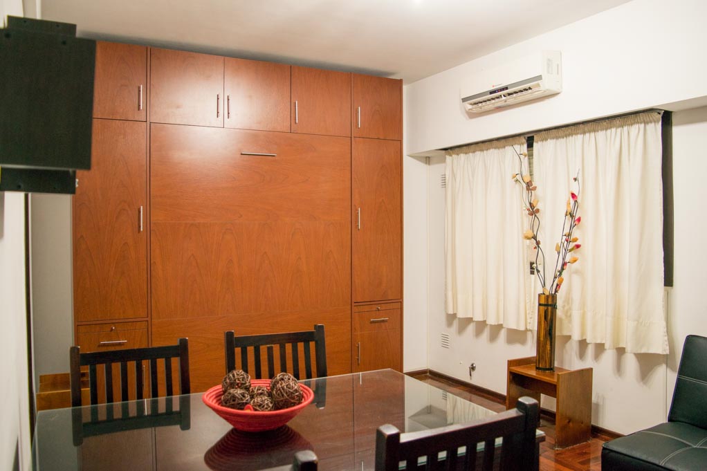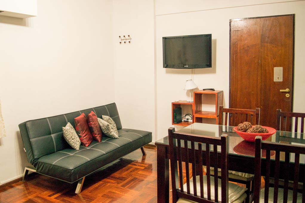 This 1 studio furnished Apartment is located a 1 minute’ walk from the bus stop and a 8 minutes’ walk from the Metro Station Angel Gallardo.The apartment has a living room, dinning room, kitchen (closed) and 1 bathroom. The bedroom 1 has a double bed, wardrobe, couch, TV, 4 chairs and bathroom in suite. The place measures 25m² approximately. The cost of services like common expenses, hot water, cold water, electricity, gas, internet and TV cable are paid in advance together with the monthly rent, with a consumption limit of $ 3USD. You should pay a security deposit, which will be returned at the end of the lease term; The tenant(s) must also pay $ 1USD fee when the unit is returned for cleaning.