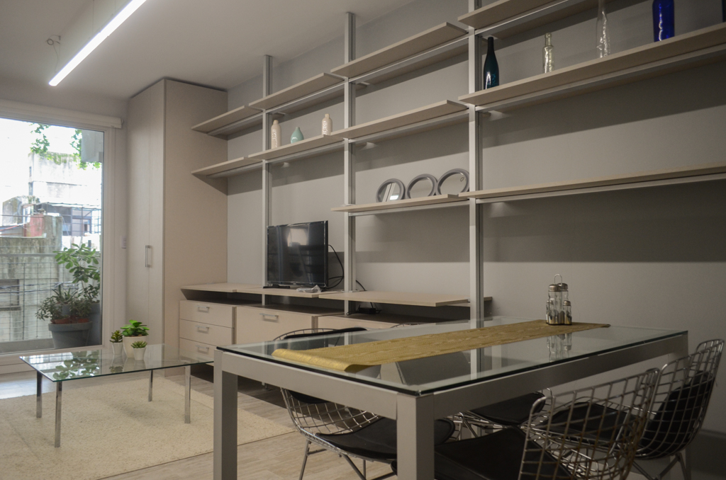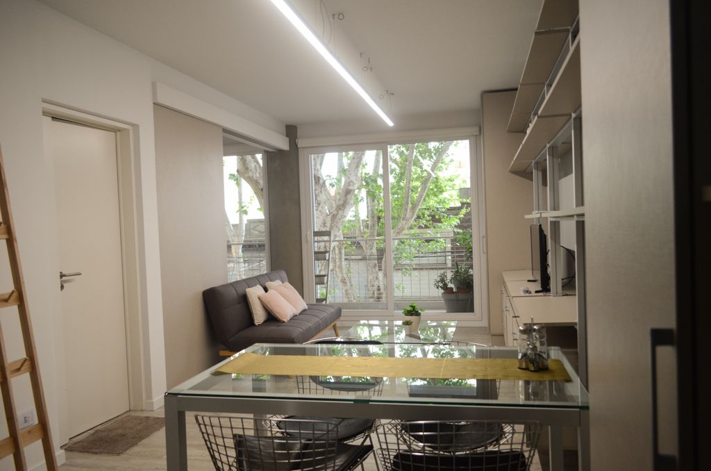 This 1 bedroom furnished Apartment is located a 3 minutes’ walk from the bus stop and a 3 minutes’ walk from the Metro Station Medrano.The apartment has a living room, dinning room, kitchen (closed), 1 bathroom and balcony. The bedroom 1 has a double bed. The place measures 54m² + 7m² of balcony approximately. The cost of services like common expenses, hot water, electricity, gas, internet, TV cable, cleaning weekly and heating are paid in advance together with the monthly rent, with a consumption limit of $ 200USD. The accommodation has in-house share laundry approximately. You should pay a security deposit, which will be returned at the end of the lease term. The unit is located close to the square Plaza Almagro, a green area for outdoor activities. This park is designed for the whole family, as it has áreas to practice sports, such as the soccer fields and the basketball courts, áreas for those who want to take a rest and playgrounds for children. It is a quiet neighborhood, with restaurants and cultural centers. It also has good access to public transportation services.
