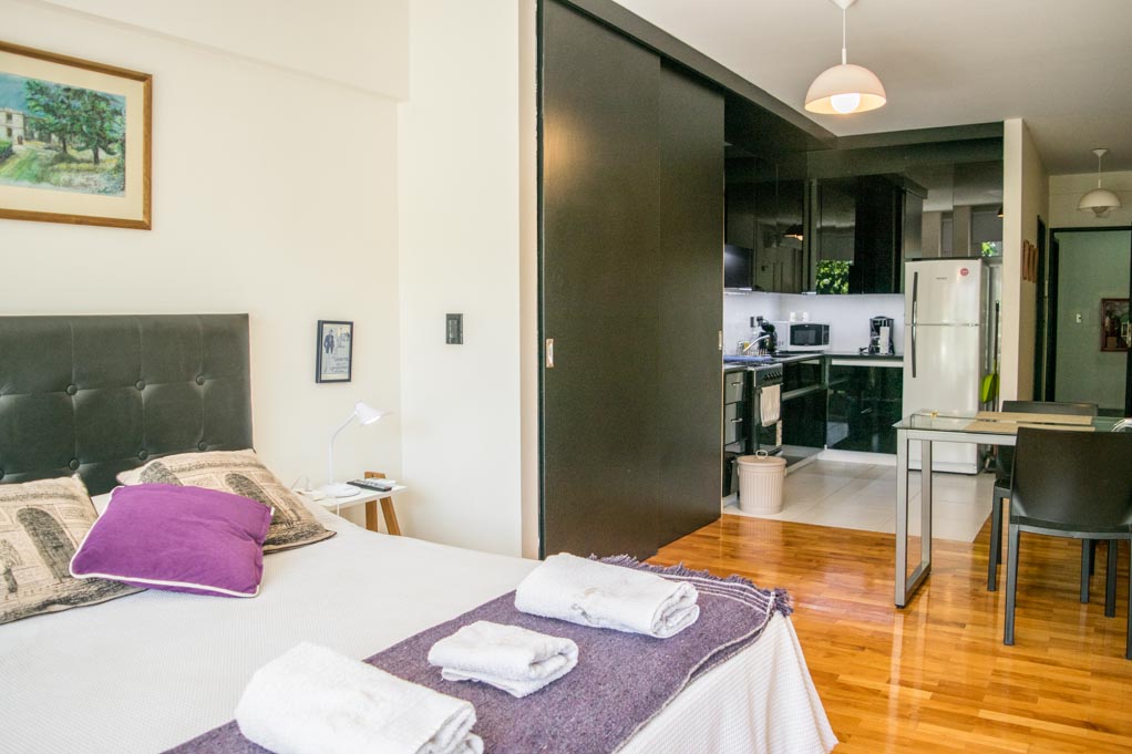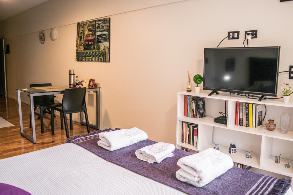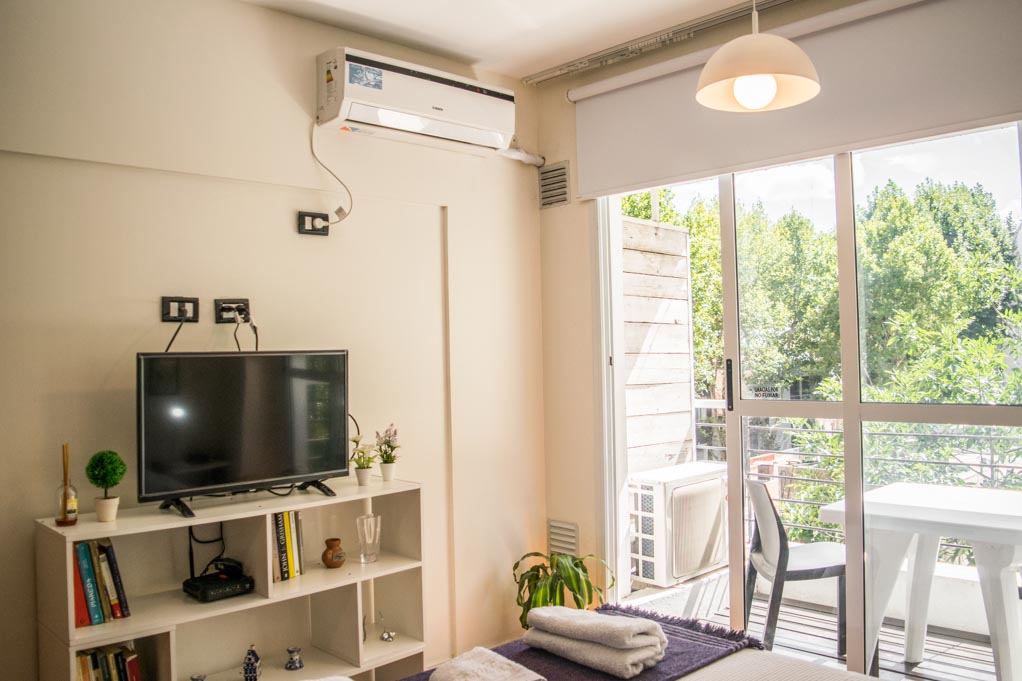 This 1 studio furnished Apartment is located a 1 minute’ walk from the bus stop and a 6 minutes’ walk from the Metro Station Juramento.The apartment has a dinning room, kitchen (open), 1 bathroom and balcony. The bedroom 1 has a double bed, wardrobe, 2 nightstands and TV. The place measures 37m² + 3m² of balcony approximately. The cost of services like common expenses, hot water, cold water, electricity, gas, internet, TV cable and heating are paid in advance together with the monthly rent, with a consumption limit of $ 135USD. You should pay a security deposit, which will be returned at the end of the lease term; The tenant(s) must also pay $ 10USD fee when the unit is returned for cleaning. The unit is located close to Cabildo Avenue, where there are various establishments, banks, supermarkets, and restaurants. There is also located the square Plaza Manuel Belgrano (known as Plaza Juramento), which is surrounded by multiple bars and restaurants, and that hosts a weekend fair of local artisans. The location has a great variety public transportation services that go toward other points of the city.