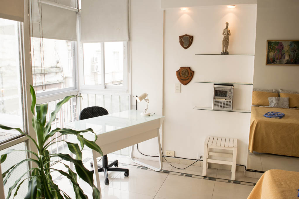 This 1 bedroom furnished Apartment is located a 2 minutes’ walk from the bus stop and a 3 minutes’ walk from the Metro Station Uruguay.The apartment has a living room, dinning room, kitchen (kitchinette), 1 bathroom and den. The bedroom 1 has a double bed, closet, desk and bathroom in suite. The place measures 35m² approximately. The cost of services like common expenses, hot water, cold water, electricity, gas, internet, TV cable, phone and cleaning weekly are paid in advance together with the monthly rent, with a consumption limit of $ 210USD. You should pay a security deposit, which will be returned at the end of the lease term. The unit is located close to the National Congress of Argentine, next to the Congressional Plaza, which has multiple green areas to walk and learn about the history of the country. This area is very busy and has easy access to public transportation services. Here you can find several restaurants, cinemas, banks, bars, and shops.