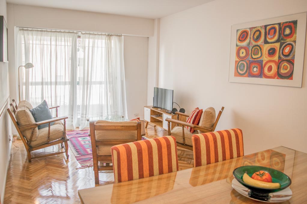 This 3 bedrooms furnished Apartment is located a 1 minute’ walk from the bus stop and a 6 minutes’ walk from the Metro Station .The apartment has a living room, dinning room, kitchen (closed), 1 bathroom, 1 ½ bathroom and balcony. The bedroom 1 has a double bed, wardrobe and 2 nightstands. The bedroom 2 has a 2 single beds, wardrobe and nightstand. The bedroom 3 has a single bed, nightstand and bathroom in suite. The place measures 85m² + 10m² of balcony approximately. Should be considered, the payment of the expenses of services of common expenses, hot water, cold water, electricity, gas, internet and phone that add $ 275USD approximately. You should pay a security deposit, which will be returned at the end of the lease term. The unit is located close to near the accommodation is located Las Heras Park, an ideal place to practice sports or enjoy outdoor walks. In Santa Fe Avenue can be fund many establishments such as banks, restaurants, bars, supermarkets, and many other stores; in addition, there is also located the Alto Palermo shopping mall, one of the most visited in the city. It also has good access to public transportation services.