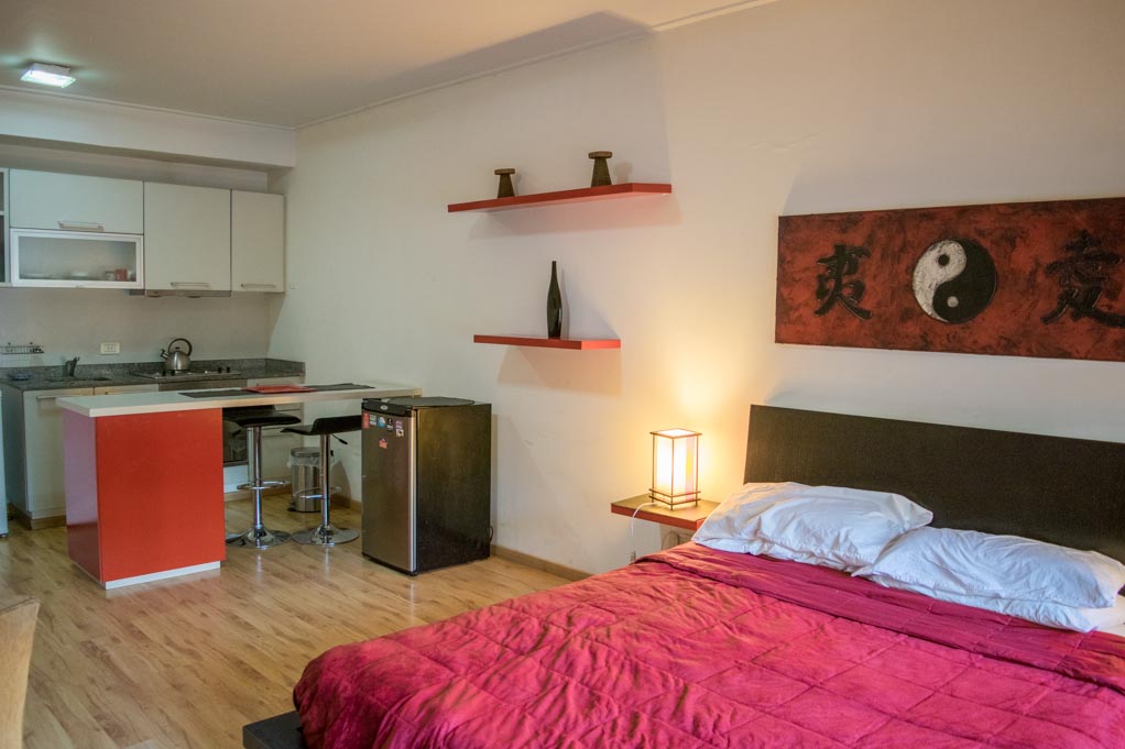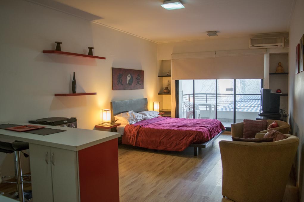 This 1 studio furnished Apartment is located a 2 minutes’ walk from the bus stop and a 10 minutes’ walk from the Metro Station Palermo.The apartment has a living room, dinning room, kitchen (open), 1 bathroom and balcony. The bedroom 1 has a double bed, closet, 2 nightstands, 2 couchs and TV. The place measures 27m² + 2m² of balcony approximately. The cost of services like common expenses, hot water, cold water, electricity, internet, TV cable and heating are paid in advance together with the monthly rent, with a consumption limit of $ 205USD. The accommodation has in-house share laundry, price per load for both washers or dryers is $ 35USD approximately. You should pay a security deposit, which will be returned at the end of the lease term; The tenant(s) must also pay $ 41USD fee when the unit is returned for cleaning. The unit is located close to a series of shops, banks, and supermarkets on Santa Fe Avenue. In this area is located the shopping mall, Distrito Arcos, the ideal place to enjoy a shopping day; a few steps away, there are different parks where it is possible to practice sports or enjoy outdoor activities. In addition, the Palermo subway station communicates with the San Martín Train, that gives easy access to other places in the city.
