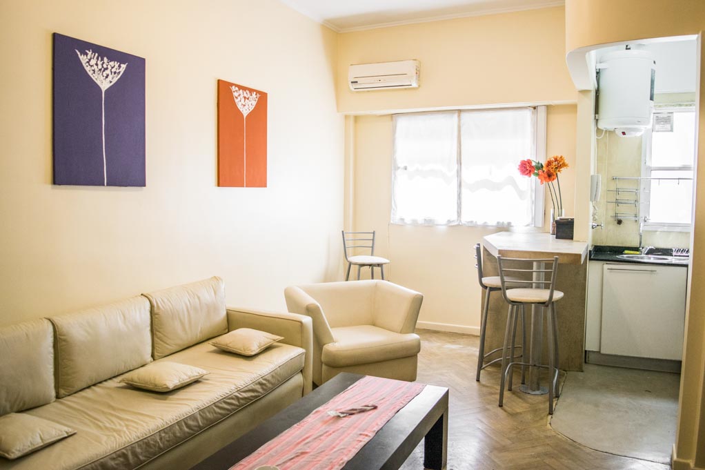 This 1 bedroom furnished Apartment is located a 1 minute’ walk from the bus stop and a 2 minutes’ walk from the Metro Station Plaza Italia.The bedroom 1 has a double bed, wardrobe, 2 nightstands and bathroom in suite. The place measures 40m² approximately. The cost of services like common expenses, hot water, cold water, electricity, gas, internet, TV cable, phone and heating are paid in advance together with the monthly rent, with a consumption limit of $ 6USD. You should pay a security deposit, which will be returned at the end of the lease term; The tenant(s) must also pay $ 1USD fee when the unit is returned for cleaning. The unit is located close to La Rural, which is an event venue and the city's Botanical Garden, as well as several parks for sports practice and outdoor walks. It is also possible to appreciate the King Fahd Islamic Cultural Center. This area, located in the heart of Palermo, is full of multiple stores, supermarkets, banks, bars, and restaurants, where people can enjoy the local gastronomy. It has easy and comfortable access to public transportation services.