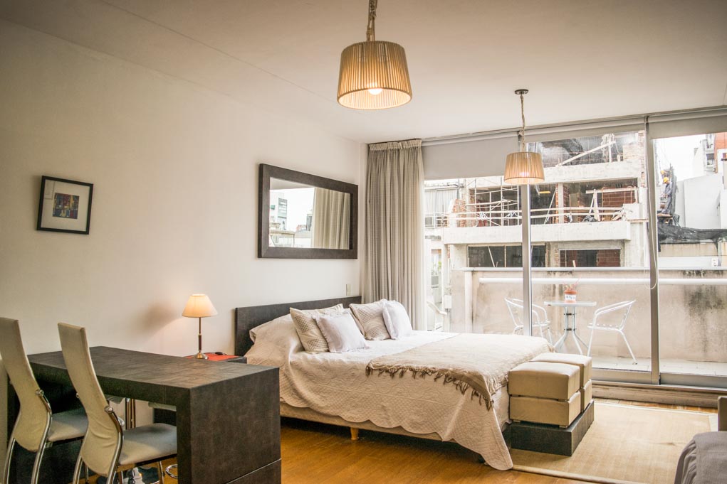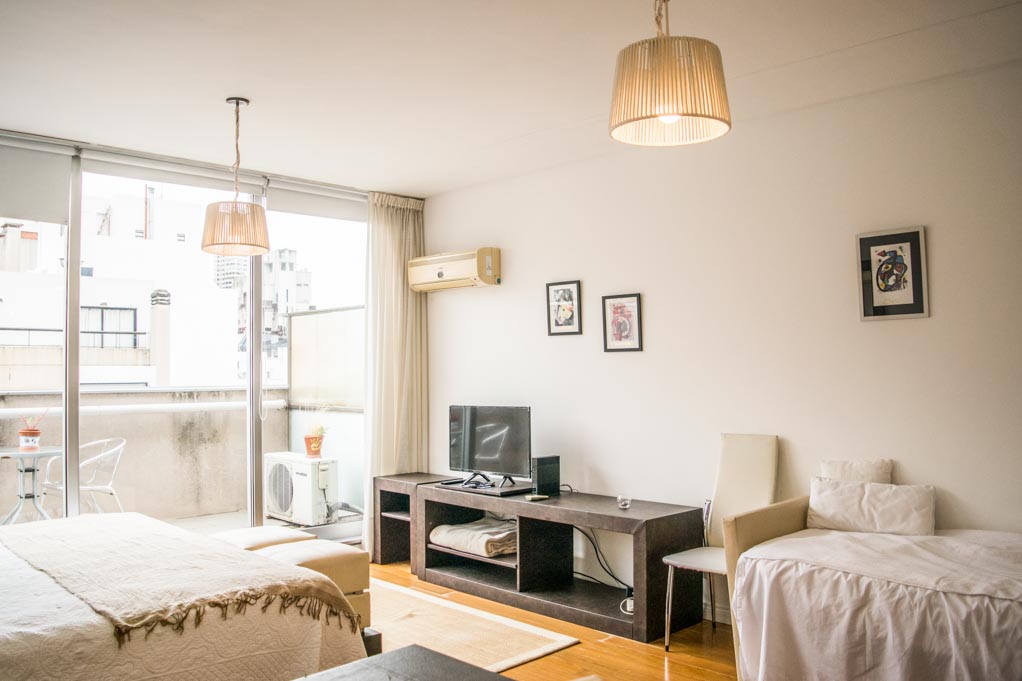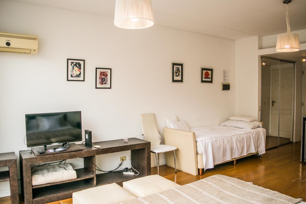 This 1 studio furnished Apartment is located a 2 minutes’ walk from the bus stop and a 14 minutes’ walk from the Metro Station Scalabrini Ortiz.The apartment has a living room. The bedroom 1 has a double bed, wardrobe, nightstand and TV. The place measures 38m² + 5m² of balcony approximately. Should be considered, the payment of the expenses of services of common expenses, electricity, internet, TV cable and heating that add $ 5USD approximately. The accommodation has in-house share laundry approximately. You should pay a security deposit, which will be returned at the end of the lease term. The unit is located close to the most residential and quiet area of Palermo, characterized for being a place where different embassies are located; it also hosts the MALBA (Museo de Arte Latinoamericano de Buenos Aires) and the Museo Nacional de Arte Decorativo (National Museum of Decorative Art), which offer guided tours to show the work of national and international artists. There can be also fund the Buenos Aires’ Japanese Garden, that offer a variety of outdoor activities. Only a few minutes away, there is the Costanera Avenue, where there are located: the Jorge Newbwery Metropolitan Airport, the Tierra Santa theme park, the most elegant nightclubs in the city and the Costa Salguero convention center.