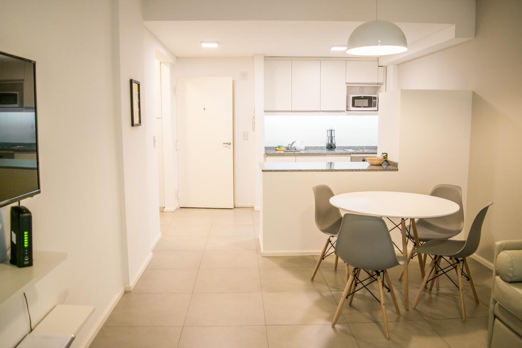 This 1 bedroom furnished Apartment is located a 1 minute’ walk from the bus stop and a 9 minutes’ walk from the Metro Station Medrano.The apartment has a living room, dinning room, kitchen (open), 1 bathroom, balcony and 1 parking (optional for additional value of $ 80USD). The bedroom 1 has a double bed, closet and 2 nightstands. The place measures 55m² + 5m² of balcony approximately. The cost of services like common expenses, hot water, cold water, electricity, internet, TV cable and heating are paid in advance together with the monthly rent, with a consumption limit of $ 185USD. The accommodation has in-house share laundry, price per load for both washers or dryers is $ 1USD approximately. You should pay a security deposit, which will be returned at the end of the lease term.