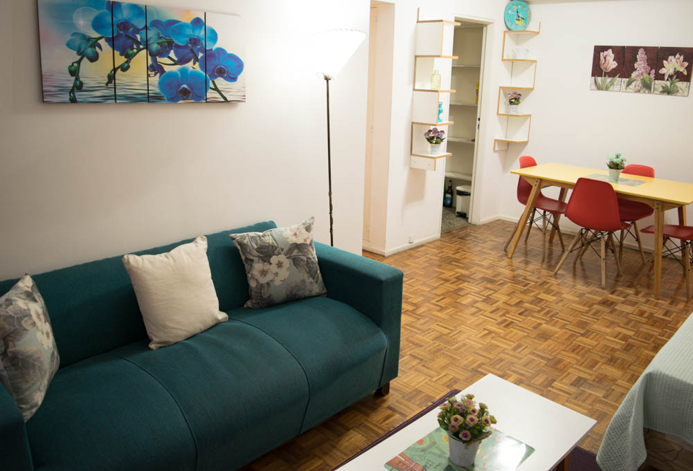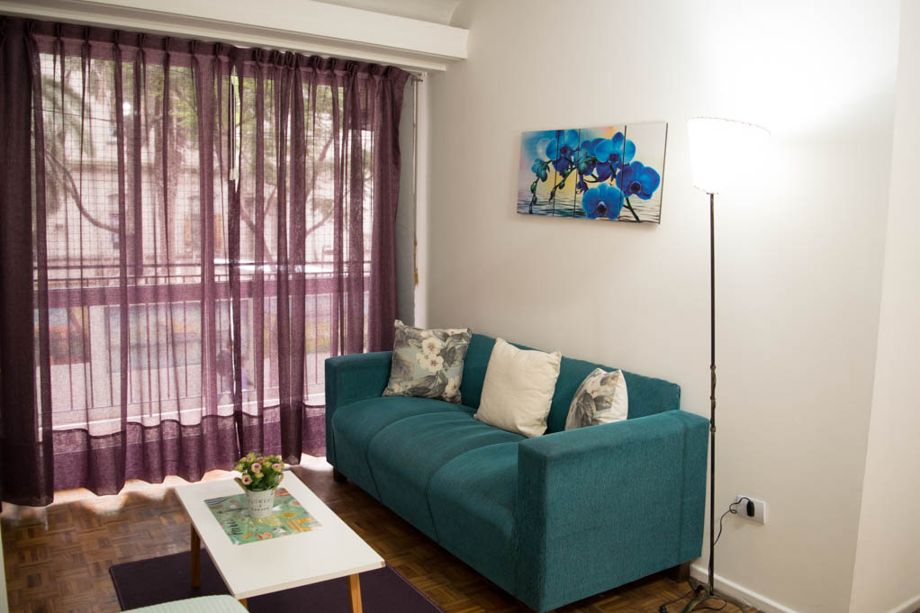 This 2 bedrooms furnished Apartment is located a 2 minutes’ walk from the bus stop and a 9 minutes’ walk from the Metro Station Las Heras.The apartment has a living room, dinning room, kitchen (closed), 1 bathroom and balcony. The bedroom 1 has a bunk bed and nightstand. The bedroom 2 has a double bed, closet and nightstand. The place measures 75m² + 4m² of balcony approximately. Should be considered, the payment of the expenses of services of common expenses, hot water, electricity, gas, internet, TV cable and cleaning biweekly that add $ 230USD approximately. You should pay a security deposit, which will be returned at the end of the lease term. The unit is located close to the most residential and quiet area of Palermo, characterized for being a place where different embassies are located; it also hosts the MALBA (Museo de Arte Latinoamericano de Buenos Aires) and the Museo Nacional de Arte Decorativo (National Museum of Decorative Art), which offer guided tours to show the work of national and international artists. There can be also fund the Buenos Aires’ Japanese Garden, that offer a variety of outdoor activities. Only a few minutes away, there is the Costanera Avenue, where there are located: the Jorge Newbwery Metropolitan Airport, the Tierra Santa theme park, the most elegant nightclubs in the city and the Costa Salguero convention center.