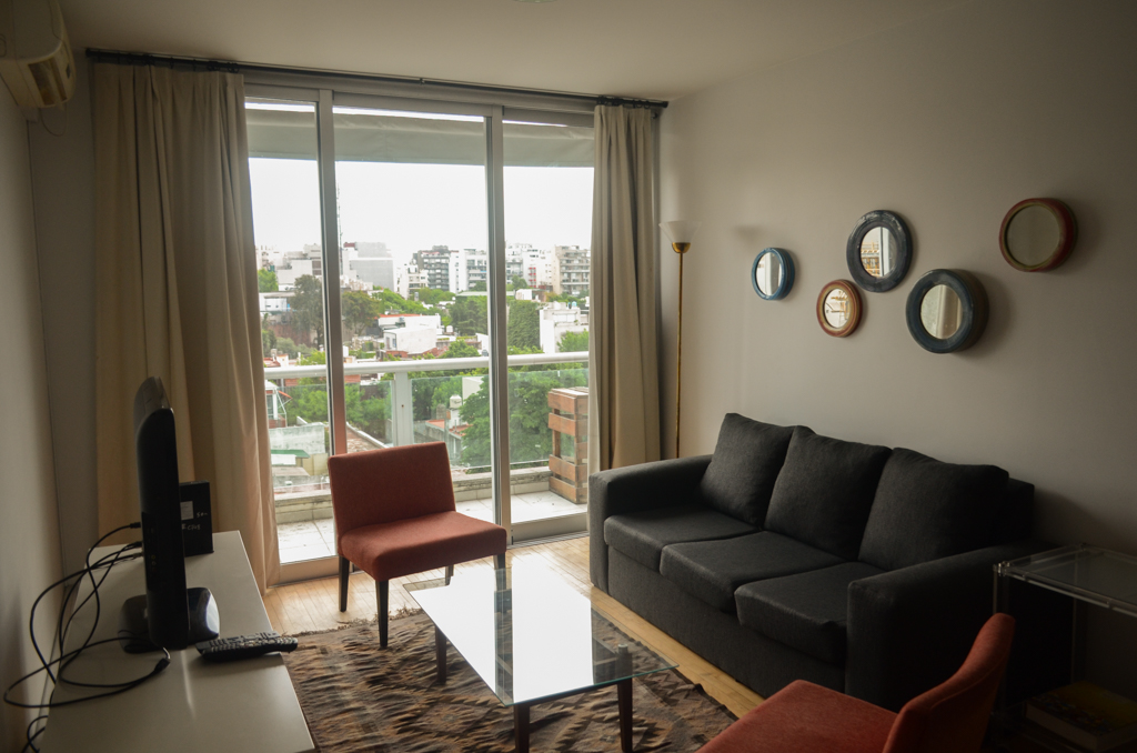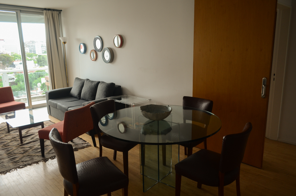 This 2 bedrooms furnished Apartment is located a 5 minutes’ walk from the bus stop and a 15 minutes’ walk from the Metro Station Palermo.The apartment has a living room, kitchen (closed), 2 bathrooms and balcony. The bedroom 1 has a double bed, wardrobe, dresser, nightstand and 2 couchs. The bedroom 2 has a 2 single beds, wardrobe and nightstand. The place measures 80m² + 10m² of balcony approximately. The cost of services like common expenses, hot water, cold water, electricity, gas, internet, TV cable, phone and heating are paid in advance together with the monthly rent, with a consumption limit of $ 400USD. The accommodation has in-house share laundry approximately. You should pay a security deposit, which will be returned at the end of the lease term. The unit is located close to there it will be fund a wide variety of restaurants, cafes, bars, and nightclubs. This location is known as Palermo Hollywood due to the film and television production companies installed in the area, in addition to the various independent theaters located there. There is also good access to public transportation services.