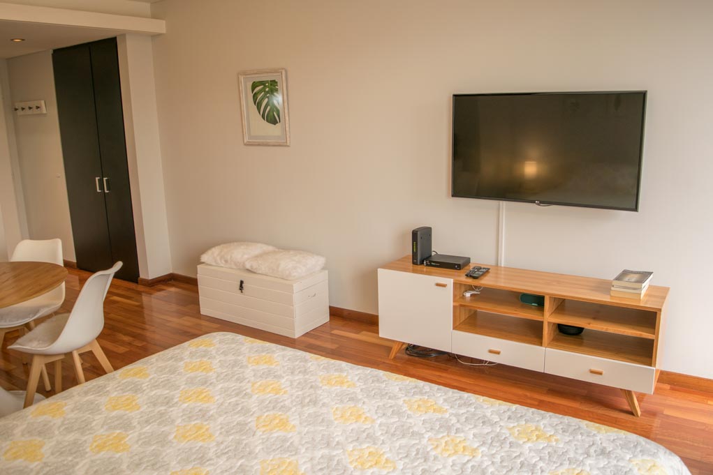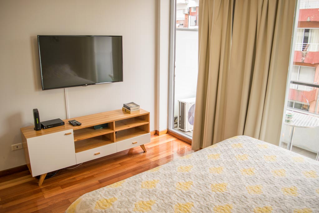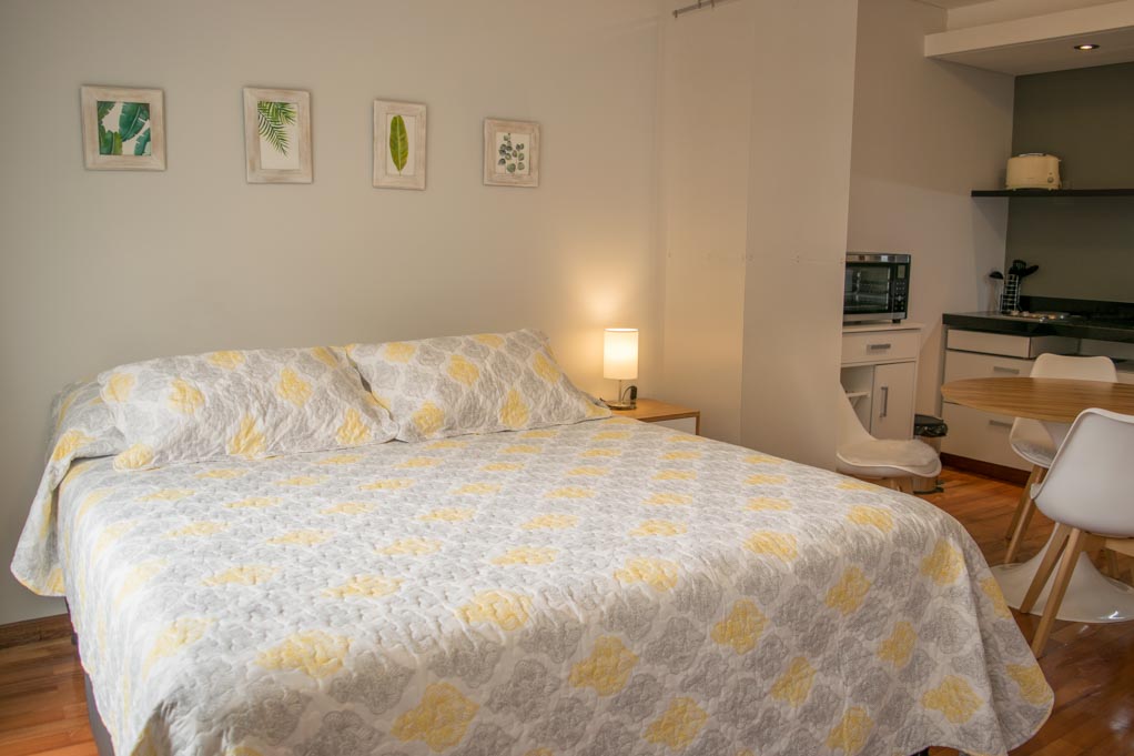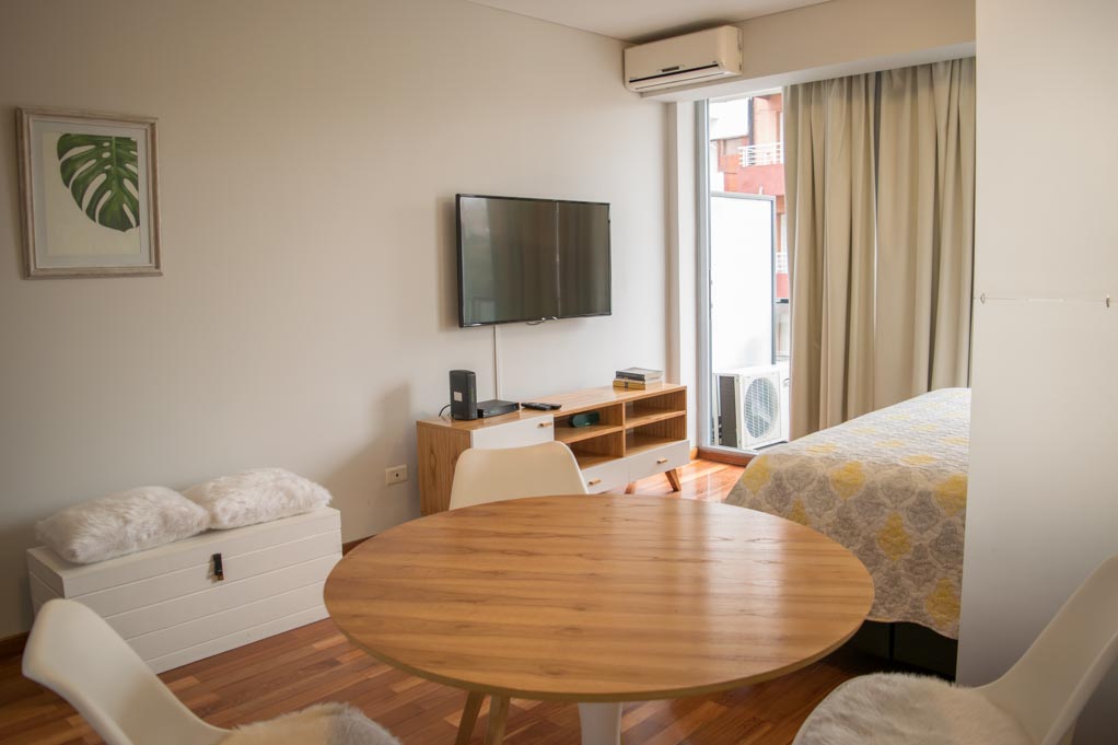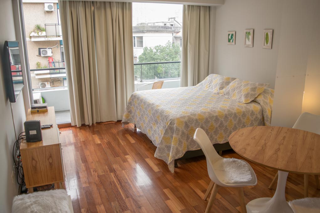 This 1 studio furnished Apartment is located a 2 minutes’ walk from the bus stop and a 7 minutes’ walk from the Metro Station Las Heras.The apartment has a living room, dinning room, kitchen (open), 1 bathroom and balcony. The bedroom 1 has a double bed, dresser, nightstand and TV. The place measures 32m² + 3m² of balcony approximately. The cost of services like common expenses, hot water, cold water, electricity, internet, TV cable and heating are paid in advance together with the monthly rent, with a consumption limit of $ 120USD. The accommodation has in-house share laundry approximately. You should pay a security deposit, which will be returned at the end of the lease term. The unit is located close to the Faculty of Engineering of the University of Buenos Aires. There they are many green areas ideal to enjoy the fresh air and to practice sports; as well as exclusive restaurants. The Mariano Moreno National Library is also located in this área, such as many other different buildings and statues of great historical and architectural value.