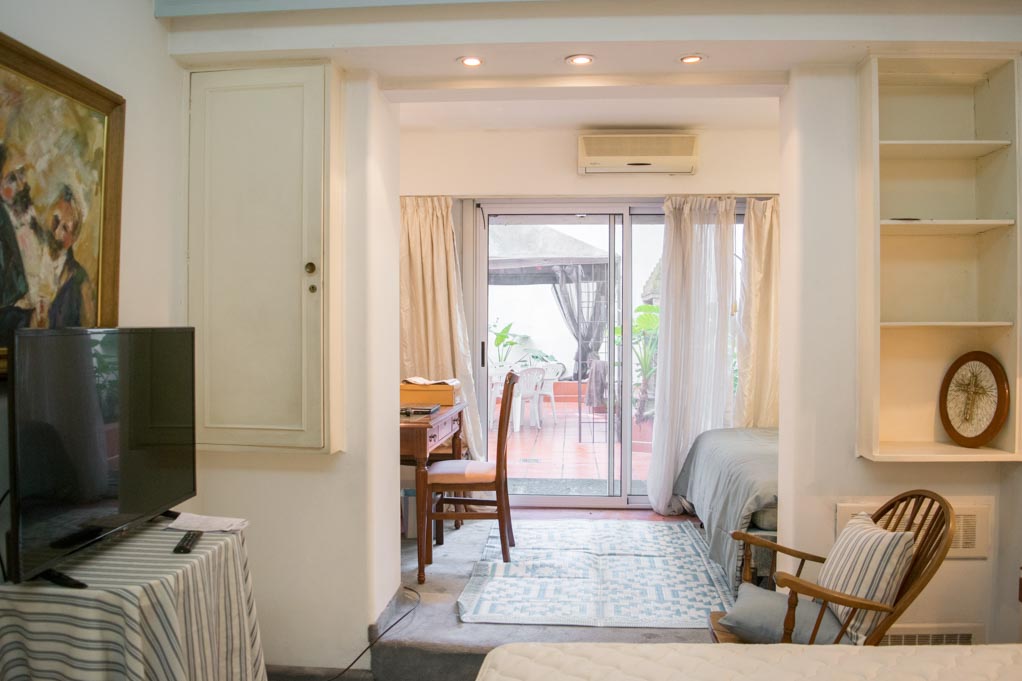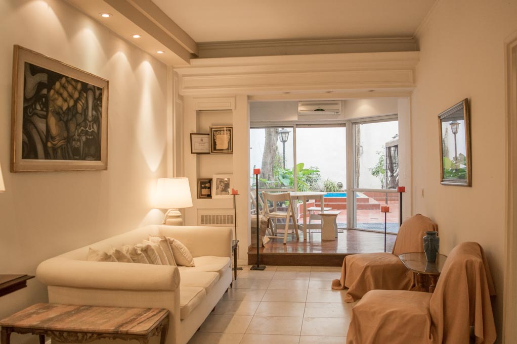 This 2 bedrooms furnished Apartment is located a 1 minute’ walk from the bus stop and a 12 minutes’ walk from the Metro Station Las Heras.The apartment has a living room, dinning room, kitchen (open), 1 bathroom, 1 ½ bathroom and yard. The bedroom 1 has a double bed, wardrobe, 2 nightstands, couch, TV, desk, chair and bathroom in suite. The bedroom 2 has a double bed, wardrobe and couch. The place measures 130m² + 20m² of balcony approximately. The cost of services like common expenses, hot water, cold water, electricity, gas, internet, TV cable and heating are paid in advance together with the monthly rent, with a consumption limit of $ 240USD. You should pay a security deposit, which will be returned at the end of the lease term. The unit is located close to the Faculty of Engineering of the University of Buenos Aires. There they are many green areas ideal to enjoy the fresh air and to practice sports; as well as exclusive restaurants. The Mariano Moreno National Library is also located in this área, such as many other different buildings and statues of great historical and architectural value.
