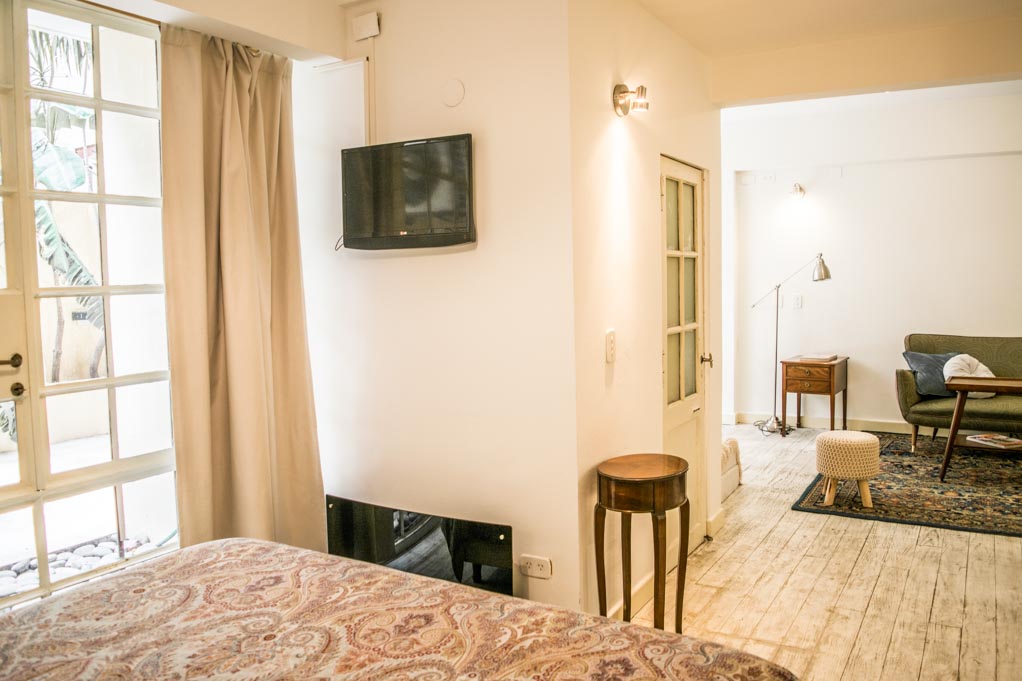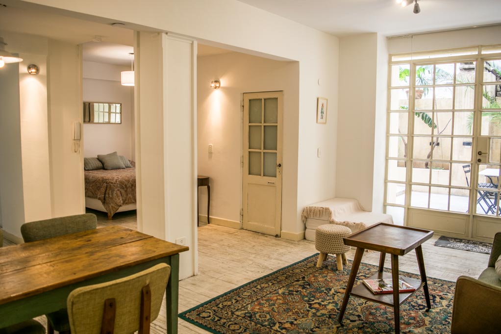 This 1 studio furnished Apartment is located a 1 minute’ walk from the bus stop and a 6 minutes’ walk from the Metro Station Callao (D).The apartment has a living room, dinning room, kitchen (open), 1 bathroom and yard. The bedroom 1 has a double bed, wardrobe, 2 nightstands, TV and bathroom in suite. The place measures 45m² + 10m² of balcony approximately. The cost of services like common expenses, hot water, cold water, electricity, gas, internet, TV cable and heating are paid in advance together with the monthly rent, with a consumption limit of $ 135USD. You should pay a security deposit, which will be returned at the end of the lease term; The tenant(s) must also pay $ 30USD fee when the unit is returned for cleaning. The unit is located close to the Ateneo Grand Splendid, a world-renowned bookstore, which also hosts live book and musical presentations that can be seen from its cafeteria. A few steps away there is a huge variety of theaters, including the famous Colon Theater. It has buildings and statues of great historical and architectural value. This location is connected with diverse public transportation services.