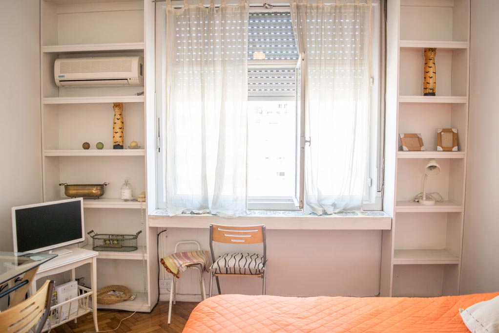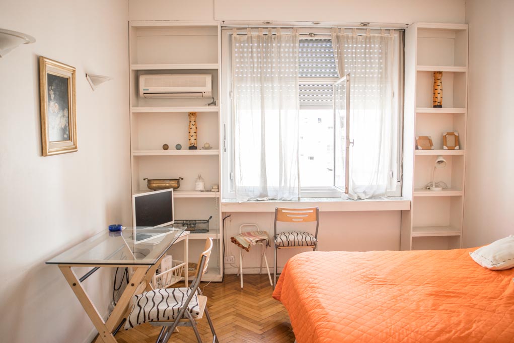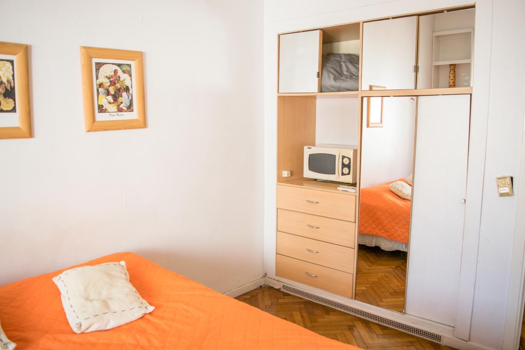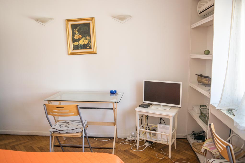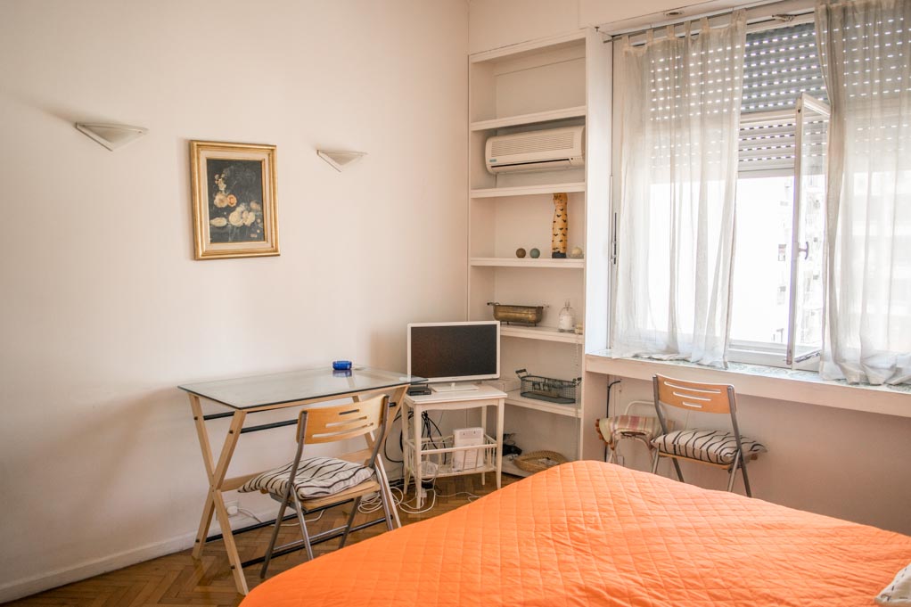 This 1 studio furnished Apartment is located a 1 minute’ walk from the bus stop and a 10 minutes’ walk from the Metro Station Callao (D).The bedroom 1 has a double bed, wardrobe, dresser, TV, desk and chair. The place measures 32m² approximately. The cost of services like common expenses, hot water, cold water, electricity, internet, TV cable and heating are paid in advance together with the monthly rent, with a consumption limit of $ 3USD. You should pay a security deposit, which will be returned at the end of the lease term. The unit is located close to the Ateneo Grand Splendid, a world-renowned bookstore, which also hosts live book and musical presentations that can be seen from its cafeteria. A few steps away there is a huge variety of theaters, including the famous Colon Theater. It has buildings and statues of great historical and architectural value. This location is connected with diverse public transportation services.