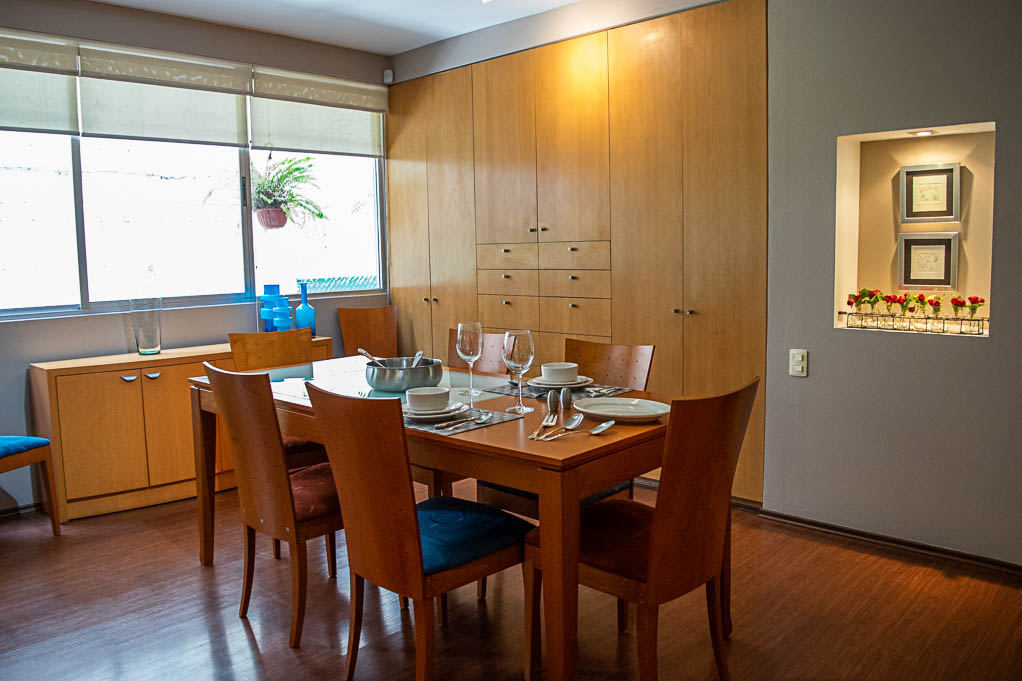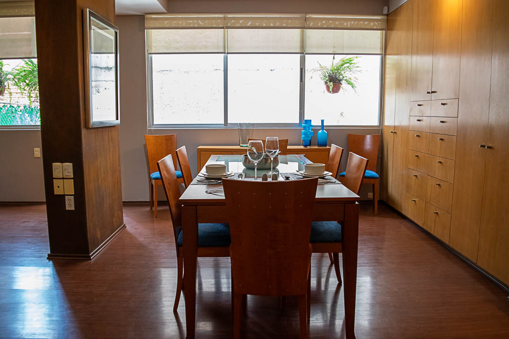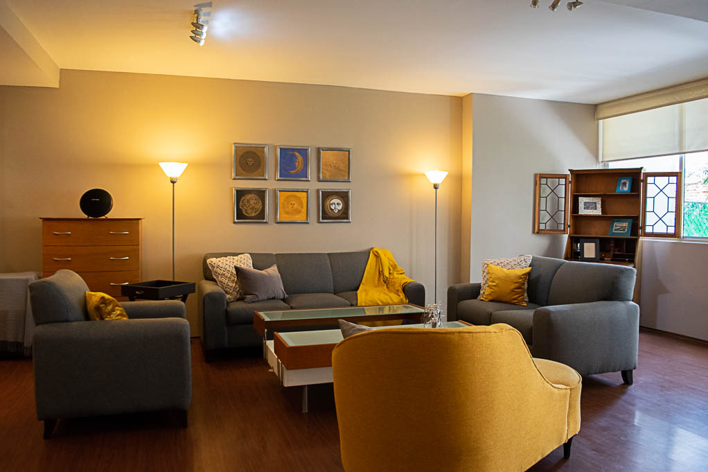 This 2 bedrooms furnished Apartment is located a 1 minute’ walk from the bus stop and a 3 minutes’ walk from the Metro Station Chilpancingo.The apartment has a living room, dinning room, kitchen (open), 2 bathrooms, balcony and 1 parking. The bedroom 1 has a double bed, closet, 2 nightstands, couch, TV and bathroom in suite. The bedroom 2 has a double bed, closet and nightstand. The place measures 120m² + 10m² of balcony approximately. The cost of services like common expenses are paid in advance together with the monthly rent, with a consumption limit of $ 174USD. In addition, should be considered, the payment of the expenses of services of cold water, electricity, gas, internet, TV cable and phone that add $ 87USD approximately. You should pay a security deposit, which will be returned at the end of the lease term; The tenant(s) must also pay $ 23USD fee when the unit is returned for cleaning. The unit is located close to a circuit of gastronomy and traditional coffee shops in the sector. It is located in an area of hospital and health centers. There are various means of public transport to different parts of the city, highlighting the Chilpancingo Metro.