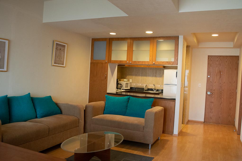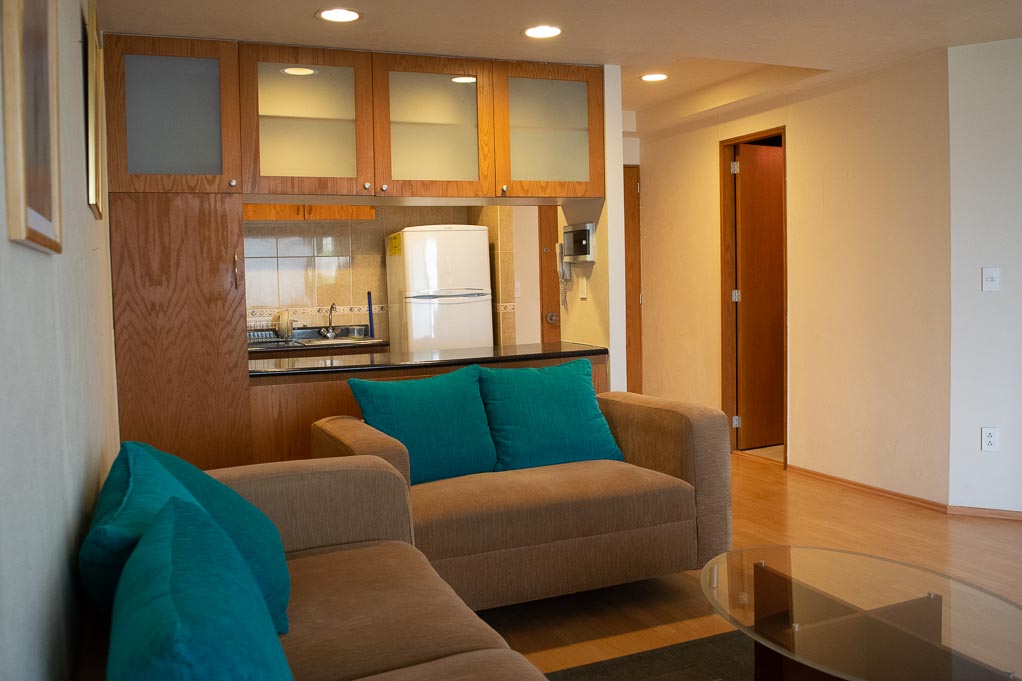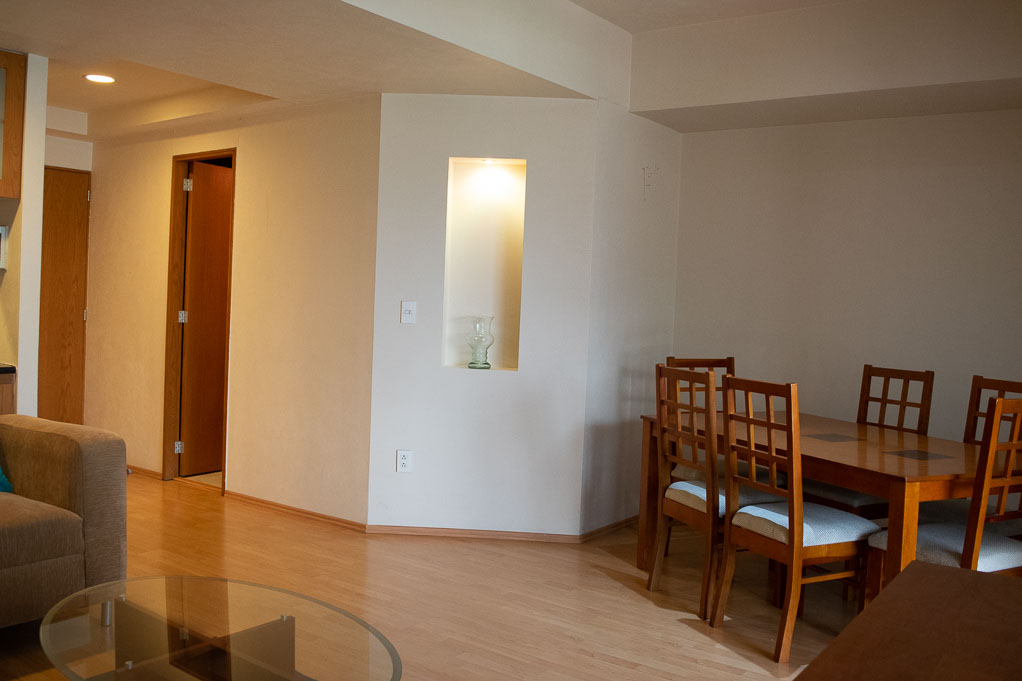 This 1 bedroom furnished Apartment is located a 3 minutes’ walk from the bus stop and a 7 minutes’ walk from the Metro Station Insurgentes.The apartment has a living room, dinning room, kitchen (open), 1 bathroom and 1 parking. The bedroom 1 has a double bed, closet and TV. The place measures 73m² approximately. The cost of services like common expenses, cold water and electricity are paid in advance together with the monthly rent, with a consumption limit of $ 117USD. The accommodation has in-house share laundry, price per load for both washers or dryers is $ 2USD approximately. You should pay a security deposit, which will be returned at the end of the lease term.
