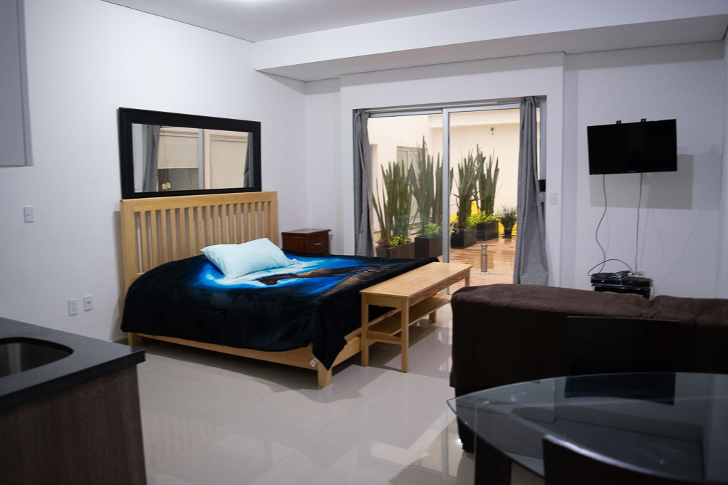 This 1 studio furnished Apartment is located a 2 minutes’ walk from the bus stop and a 4 minutes’ walk from the Metro Station Sevilla.The apartment has a living room, dinning room, kitchen (open), 1 bathroom, yard and 1 parking. The bedroom 1 has a double bed, walk-in closet and dresser. The place measures 48m² approximately. The cost of services like common expenses, cold water, electricity, gas, internet, TV cable and phone are paid in advance together with the monthly rent, with a consumption limit of $ 197USD. You should pay a security deposit, which will be returned at the end of the lease term; The tenant(s) must also pay $ 28USD fee when the unit is returned for cleaning.