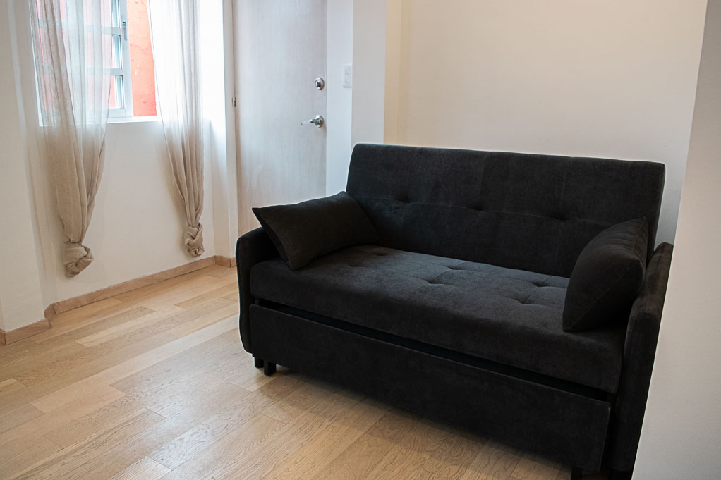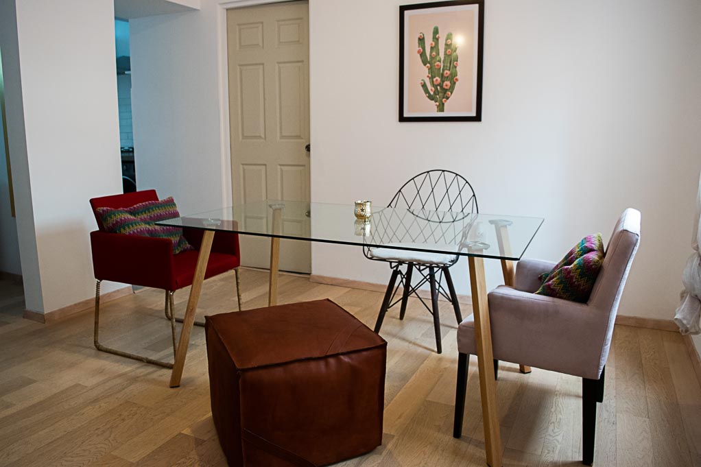 This 1 bedroom furnished Apartment is located a 1 minute’ walk from the bus stop and a 6 minutes’ walk from the Metro Station Hopital General.The apartment has a living room, dinning room, kitchen (open) and 1 bathroom. The bedroom 1 has a double bed, closet, dresser, nightstand and TV. The place measures 50m² approximately. The cost of services like common expenses and cold water are paid in advance together with the monthly rent, with a consumption limit of $ 45USD. In addition, should be considered, the payment of the expenses of services of electricity, gas and internet that add $ 42USD approximately. You should pay a security deposit, which will be returned at the end of the lease term; The tenant(s) must also pay $ 20USD fee when the unit is returned for cleaning. The unit is located close to a colorful university circuit that has a great gastronomic offer and a variety of bars, highlighting Mercado Roma, a place that offers gourmet organic food. There are various means of public transport to different parts of the city with proximity to the Hospital General Metro.