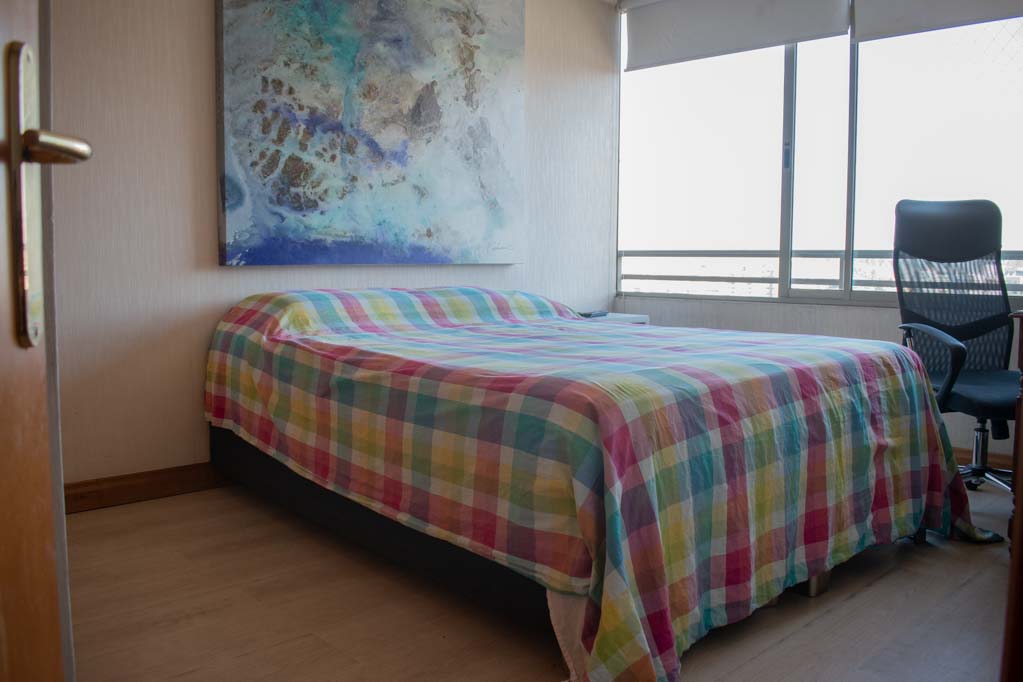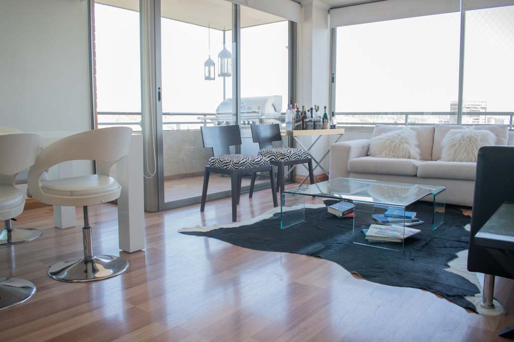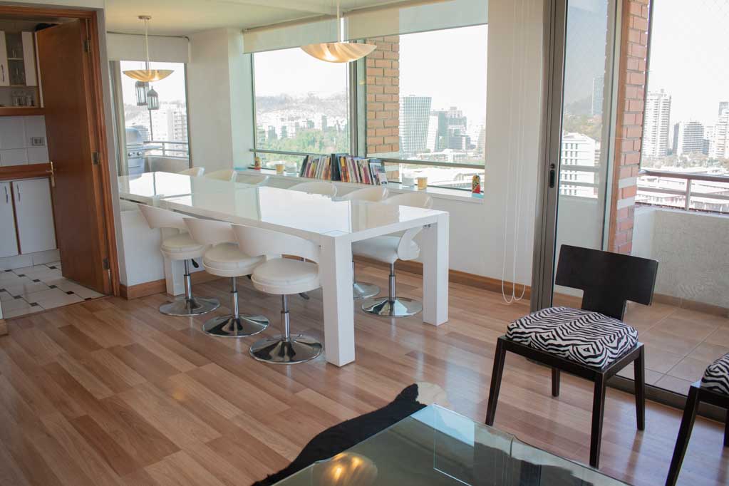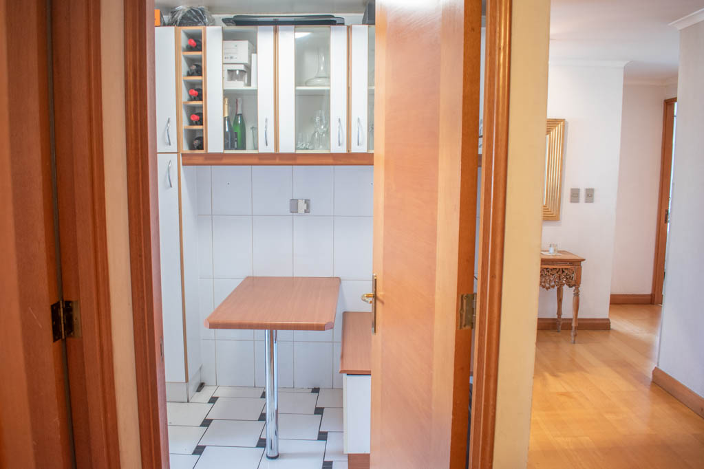 This 3 bedrooms furnished Apartment is located a 6 minutes’ walk from the bus stop and a 14 minutes’ walk from the Metro Station Escuela Militar.The apartment has a living room, dinning room, kitchen (closed), 3 bathrooms, terrace, undefined parking and 2 parkings. The bedroom 1 has a double bed, walk-in closet, 2 nightstands and bathroom in suite. The bedroom 2 has a double bed, closet, TV and chair. The bedroom 3 has a single bed, closet, desk and chair. The place measures 110m² + 8m² of balcony approximately. Should be considered, the payment of the expenses of services of common expenses, hot water, cold water, electricity, gas, internet, TV cable and phone that add $ 322USD approximately. You should pay a security deposit, which will be returned at the end of the lease term; The tenant(s) must also pay $ 51USD fee when the unit is returned for cleaning. The unit is located close to the Military School of Libertador Bernardo O'Higgins, institute in charge of training officers for the Chilean Army, as well as embassies, professional institutes, schools, banks and supermarkets; in addition to various means of public transport to different parts of the city. In the subway station (underground) there is a shopping gallery.