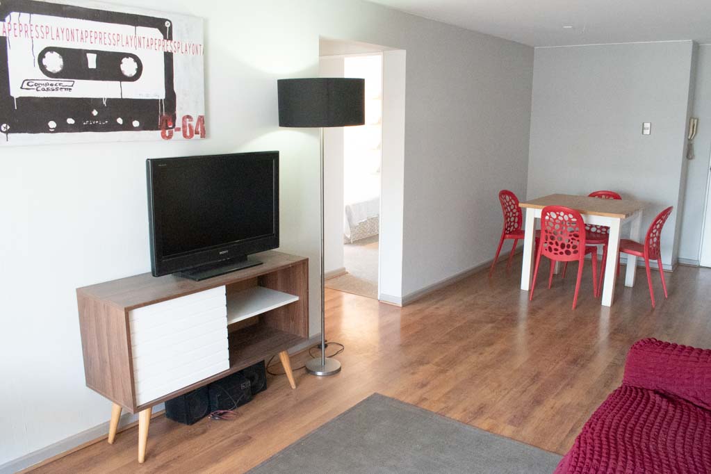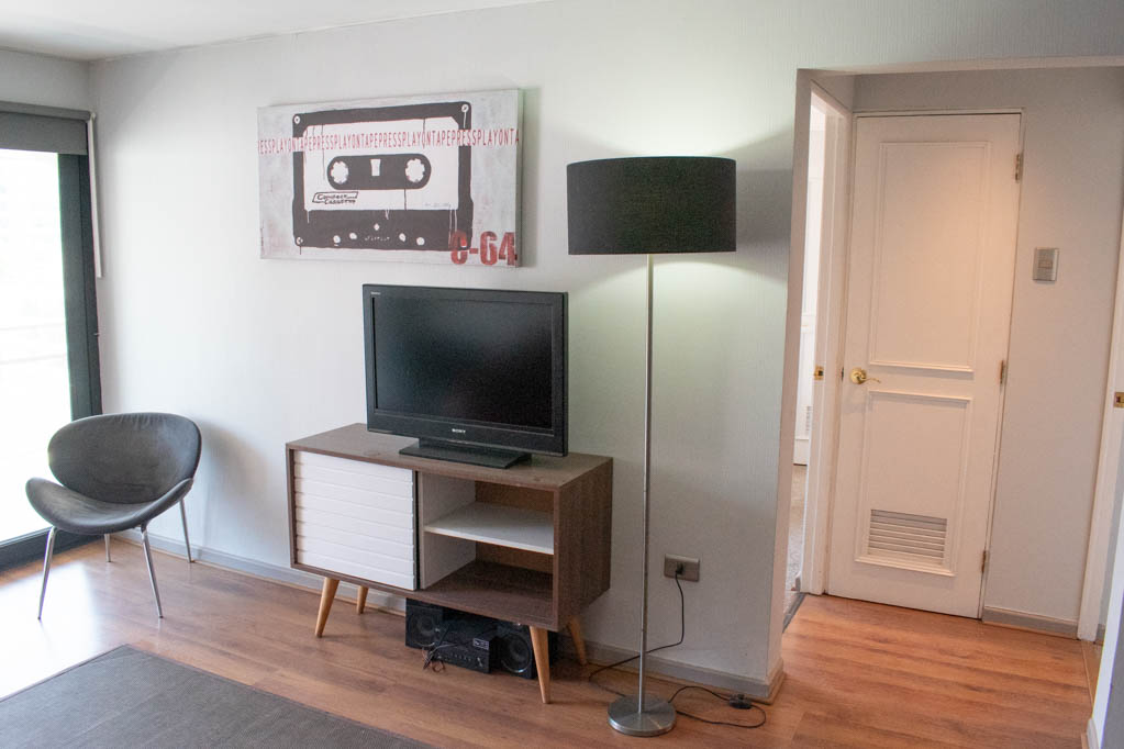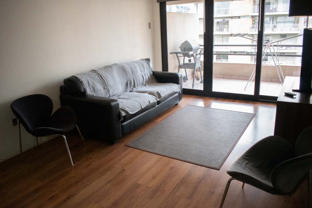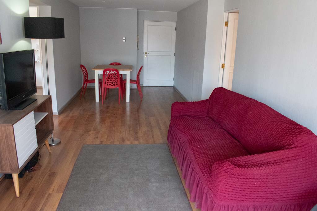 This 2 bedrooms furnished Apartment is located a 4 minutes’ walk from the bus stop and a 5 minutes’ walk from the Metro Station El Golf.The apartment has a living room, dinning room, kitchen (closed), 2 bathrooms, terrace and 1 estacionamiento (optional for additional value of $ 55USD). The bedroom 1 has a double bed, closet, 2 nightstands and bathroom in suite. The bedroom 2 has a single bed and closet. The place measures 70m² + 10m² of balcony approximately Should be considered, the payment of the expenses of services of common expenses, hot water, cold water, electricity and gas that add $ 243USD approximately. The accommodation has in-house share laundry, price per load for both washers or dryers is $ 2USD approximately. You should pay a security deposit, which will be returned at the end of the lease term; The tenant(s) must also pay $ 55USD fee when the unit is returned for cleaning. The unit is located close to the neighborhood El Golf, known as the financial district of Santiago; with modern buildings of large hotels, companies and offices. Nearby is Apoquindo Avenue with various banks, supermarkets, coffee shops, public transport and just a few steps from Isidora Goyenechea Avenue, with its wide range of restaurants and bars.