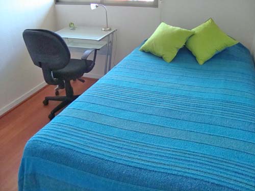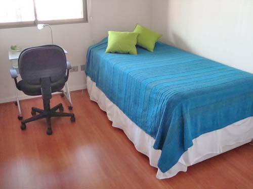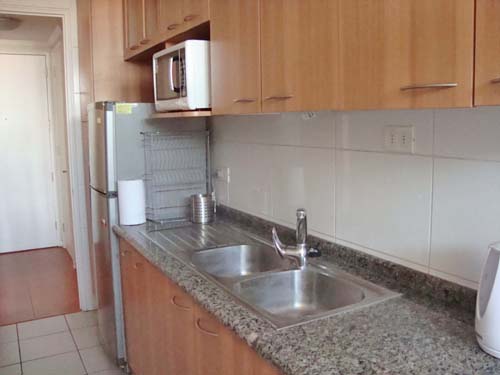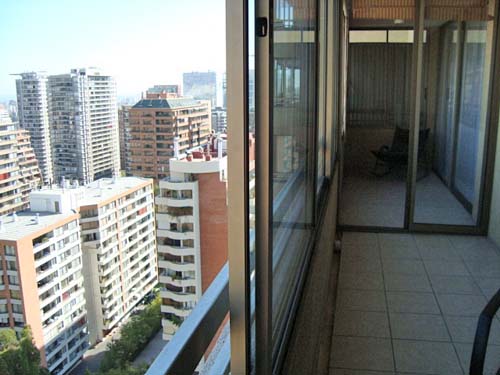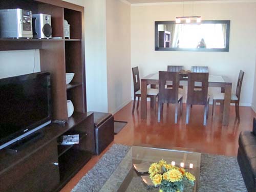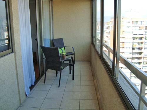 This 2 bedrooms furnished Apartment is located a 8 minutes’ walk from the bus stop and a 8 minutes’ walk from the Metro Station Manquehue.The apartment has a living room, dinning room, kitchen (closed), 2 bathrooms and 1 estacionamiento. The bedroom 1 has a double bed, closet and 2 nightstands. The bedroom 2 has a single bed, closet and desk. The place measures 70m² + 8m² of balcony approximately The cost of services like internet and TV cable are paid in advance together with the monthly rent, with a consumption limit of $ 49USD. In addition, should be considered, the payment of the expenses of services of common expenses, hot water, cold water, electricity and gas that add $ 148USD approximately. The accommodation has in-house share laundry, price per load for both washers or dryers is $ 1USD approximately. You should pay a security deposit, which will be returned at the end of the lease term; The tenant(s) must also pay $ 33USD fee when the unit is returned for cleaning. The unit is located close to the Araucano Park, 74,000 acres of green areas, where it is possible to rest surrounded by trees and gardens, in addition to the practice of a wide range of sports such as running, cycling, skating, swimming, among others. There you can also enjoy different events, bookstores, restaurants, coffee shops and the entertainment center for children. In the sector it is one of the first commercial centers of Chile, Apumanque.