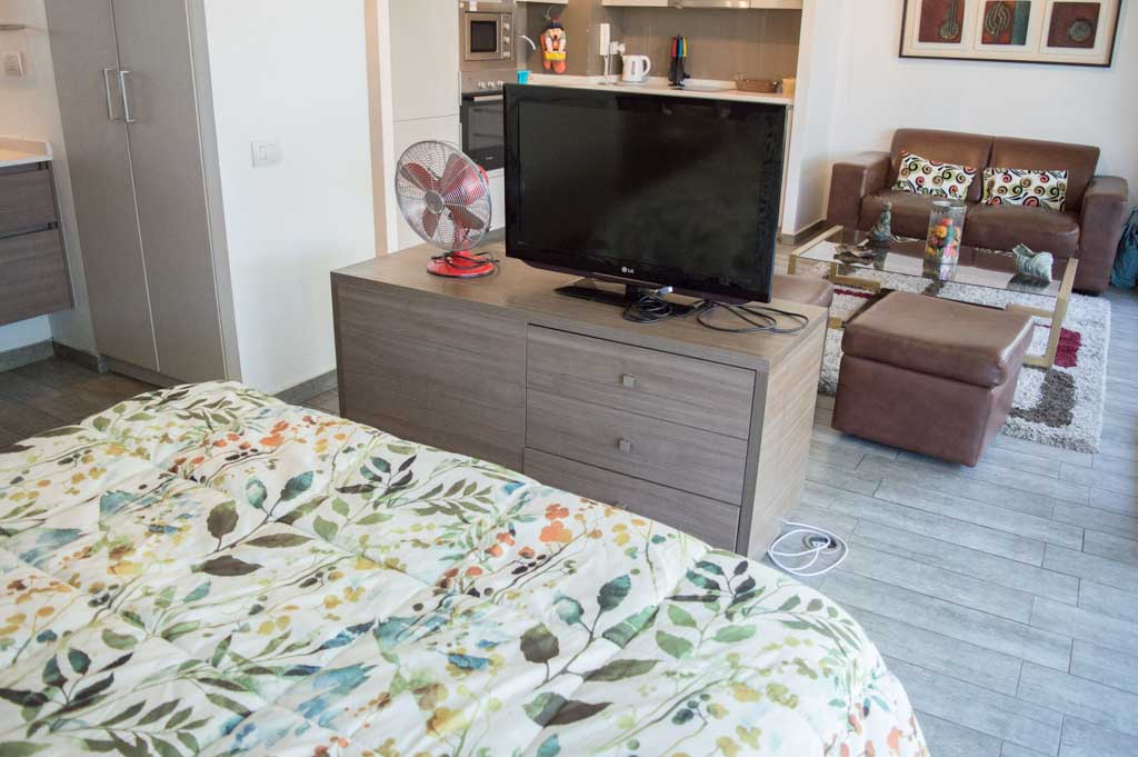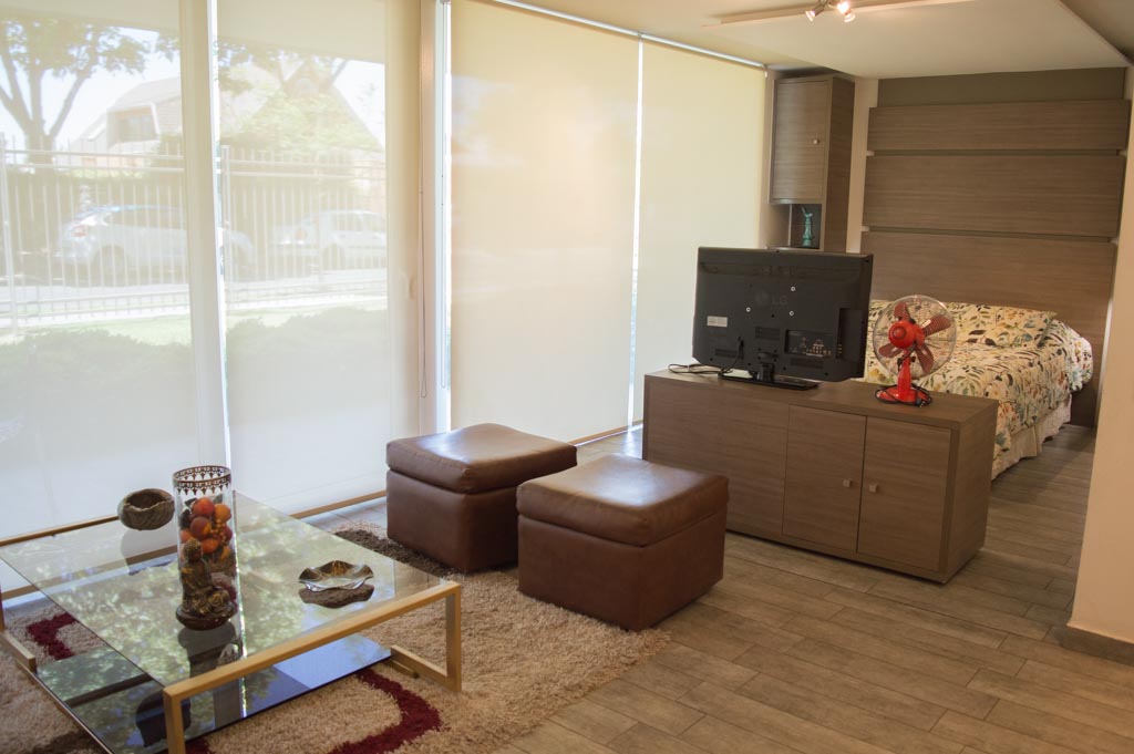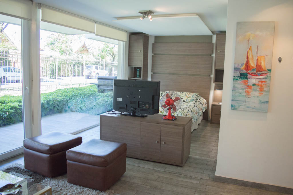 This 1 studio furnished Apartment is located a 3 minutes’ walk from the bus stop and a 3 minutes’ walk from the Metro Station Los Dominicos.The apartment has a living room, kitchen (open), 1 bathroom, terrace and 1 estacionamiento. The bedroom 1 has a double bed, closet, 2 nightstands, TV and bathroom in suite. The place measures 35m² + 7m² of balcony approximately Should be considered, the payment of the expenses of services of common expenses, hot water, cold water and electricity that add $ 139USD approximately. The accommodation has in-house share laundry, price per load for both washers or dryers is $ 1USD approximately. You should pay a security deposit, which will be returned at the end of the lease term; The tenant(s) must also pay $ 93USD fee when the unit is returned for cleaning. The unit is located close to Los Dominicos Park, where you can find the church Los Dominicos, cultural centers, commercial properties, and the well-known "Los Dominicos Village", an ideal tourist destination for the family, characterized by a large number of handicrafts in ceramics, textiles, wood, stone, among others.