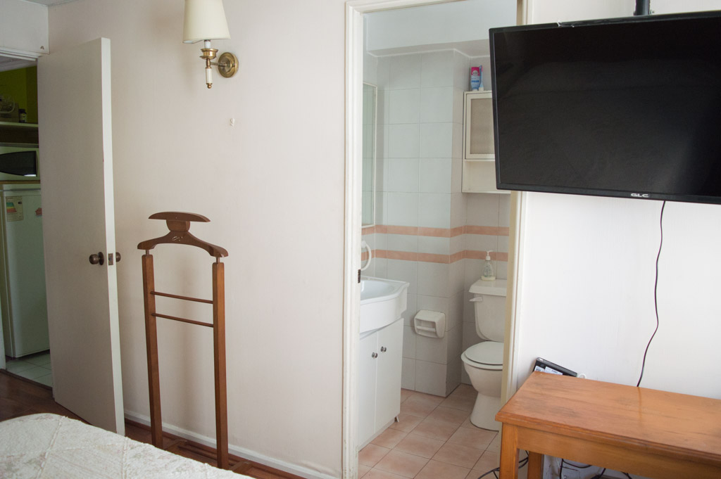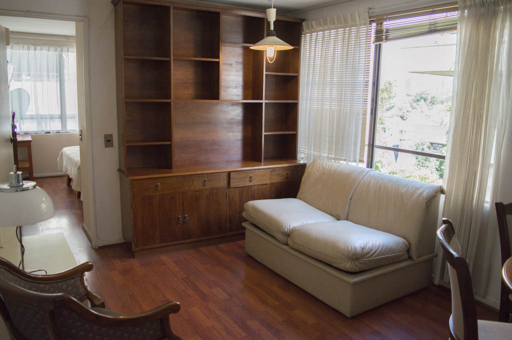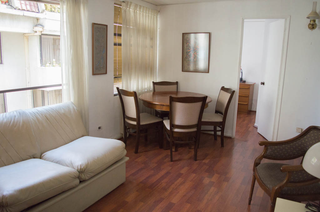 This 2 bedrooms furnished Apartment is located a 6 minutes’ walk from the bus stop and a 6 minutes’ walk from the Metro Station Escuela Militar.The apartment has a living room, dinning room, kitchen (closed), 2 bathrooms and 1 estacionamiento. The bedroom 1 has a double bed, closet, 2 nightstands, TV and bathroom in suite. The bedroom 2 has a single bed, closet, nightstand and bathroom in suite. The place measures 45m² approximately. The cost of services like common expenses, hot water, cold water, electricity and gas are paid in advance together with the monthly rent, with a consumption limit of $ 244USD. You should pay a security deposit, which will be returned at the end of the lease term; The tenant(s) must also pay $ 44USD fee when the unit is returned for cleaning. The unit is located close to the Military School of Libertador Bernardo O'Higgins, institute in charge of training officers for the Chilean Army, as well as embassies, professional institutes, schools, banks and supermarkets; in addition to various means of public transport to different parts of the city. In the subway station (underground) there is a shopping gallery.