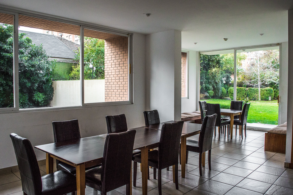 This 1 bedroom furnished Apartment is located a 1 minute’ walk from the bus stop and a 7 minutes’ walk from the Metro Station Cristóbal Colón.The apartment has a living room, dinning room, kitchen (open), 1 bathroom, balcony and 1 estacionamiento (optional for additional value of $ 58USD). The bedroom 1 has a double bed, 2 closets, 2 nightstands and TV. The place measures 40m² + 4m² of balcony approximately Should be considered, the payment of the expenses of services of common expenses, hot water, cold water, electricity and gas that add $ 168USD approximately. The accommodation has in-house share laundry, price per load for both washers or dryers is $ 2USD approximately. You should pay a security deposit, which will be returned at the end of the lease term; The tenant(s) must also pay $ 46USD fee when the unit is returned for cleaning. The unit is located close to Cristóbal Colón Avenue and Tobalaba Avenue (both with a lot of traffic due to its connection to a large part of the city) where you will find various means of public transport, drugstores, supermarkets, restaurants and coffee shops. The place is located in a suburban and quiet neighborhood.