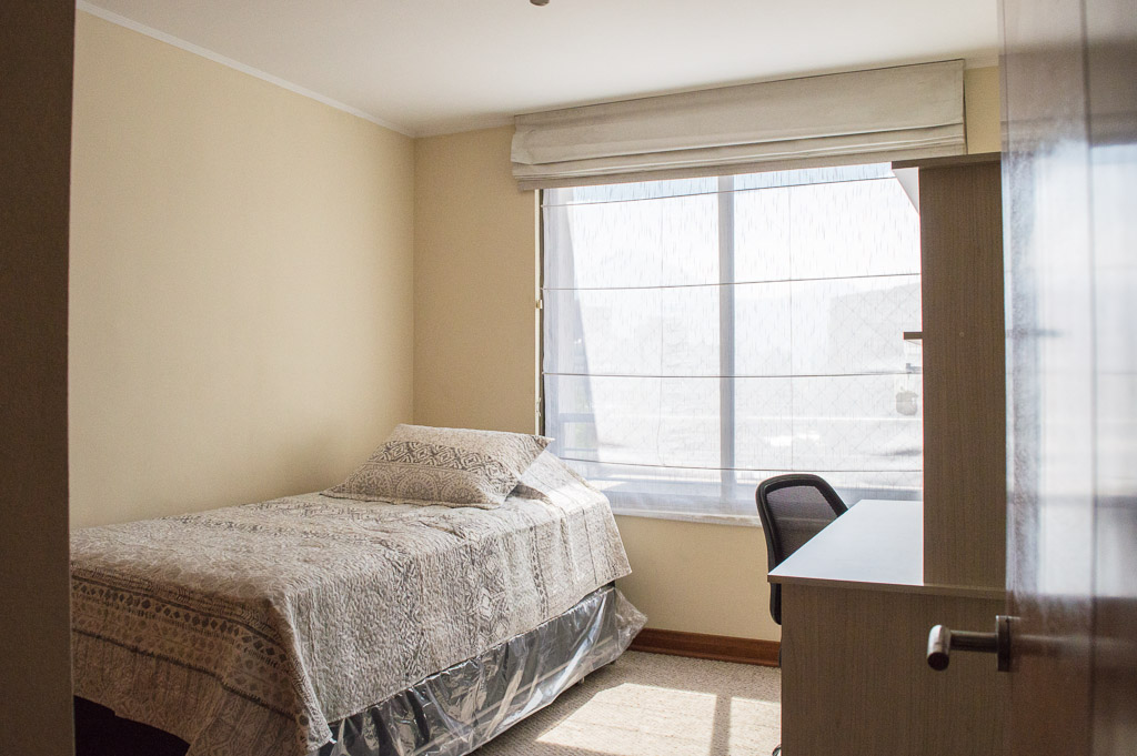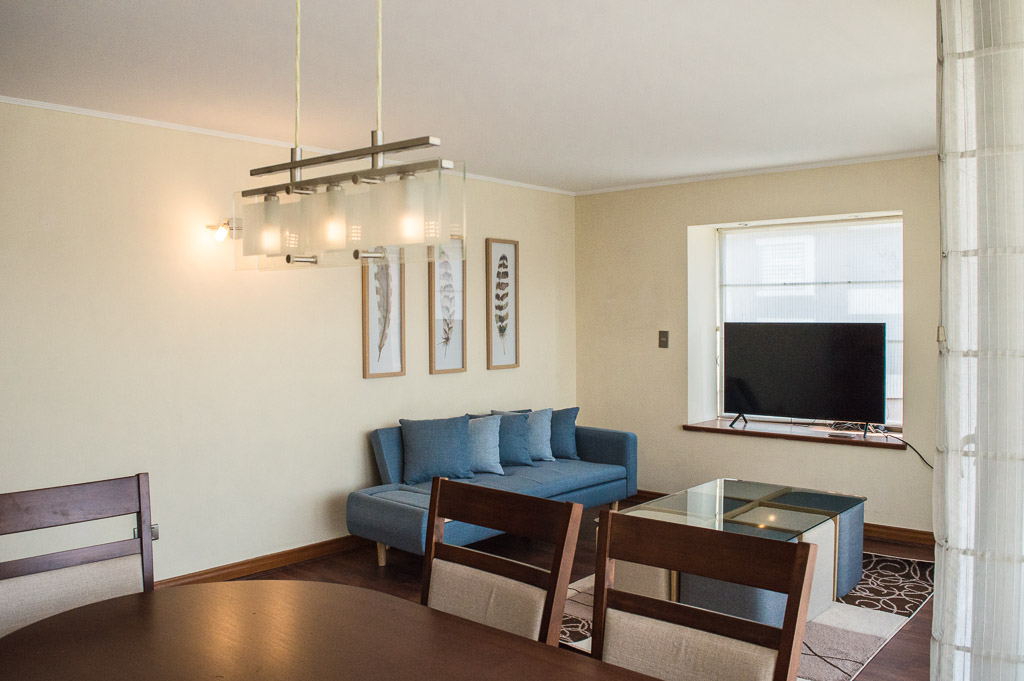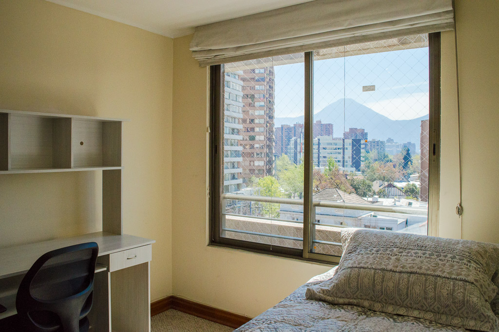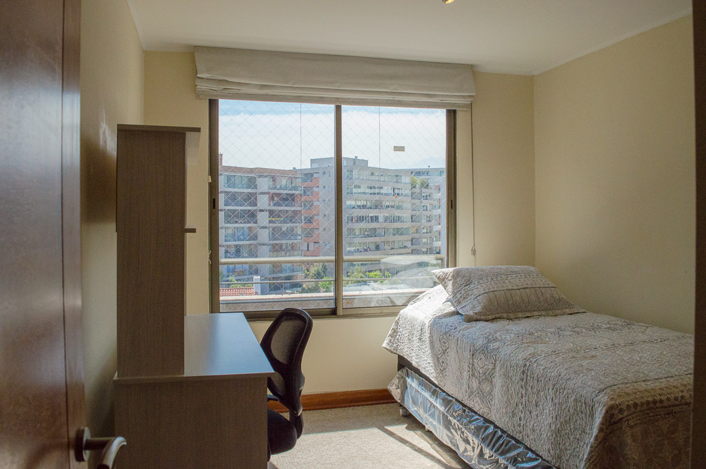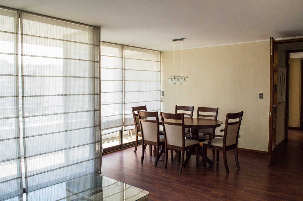 This 3 bedrooms furnished Apartment is located a 8 minutes’ walk from the bus stop and a 5 minutes’ walk from the Metro Station Hernando de Magallanes.The apartment has a living room, dinning room, kitchen (closed), 2 bathrooms, balcony and 1 estacionamiento. The bedroom 1 has a double bed, closet, walk-in closet, 2 nightstands and bathroom in suite. The bedroom 2 has a trundle bed, closet and desk. The bedroom 3 has a trundle bed, closet and desk. The place measures 100m² + 15m² of balcony approximately The cost of services like common expenses, hot water, cold water, electricity and gas are paid in advance together with the monthly rent, with a consumption limit of $ 292USD. You should pay a security deposit, which will be returned at the end of the lease term; The tenant(s) must also pay $ 88USD fee when the unit is returned for cleaning. The unit is located close to the Corporación Cultural de las Condes, where you can find a library, an amphitheater and different exhibitions from varied artists. On las Condes Avenue, there are shops, educational centers, coffee shops, restaurants and various means of public transport to different parts of the city.