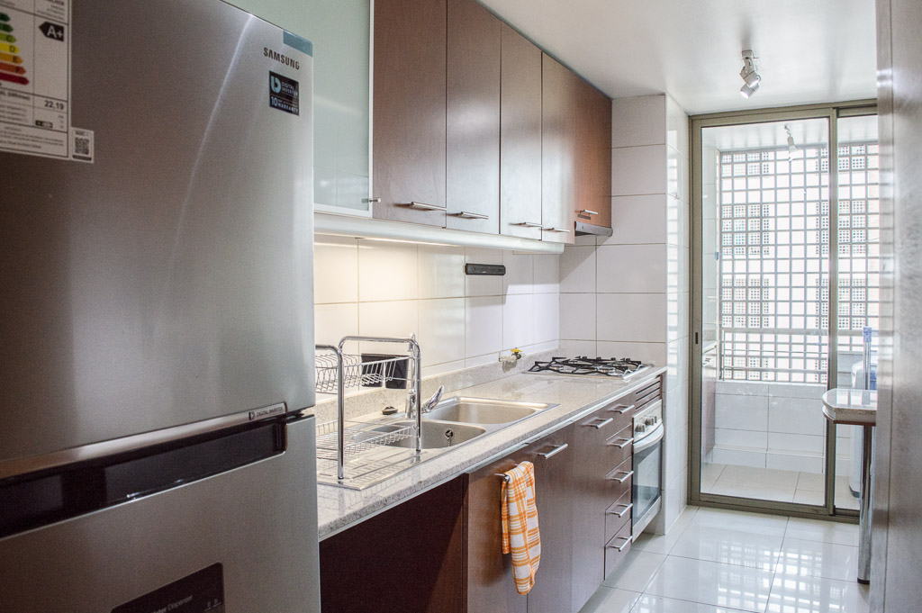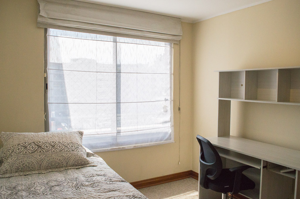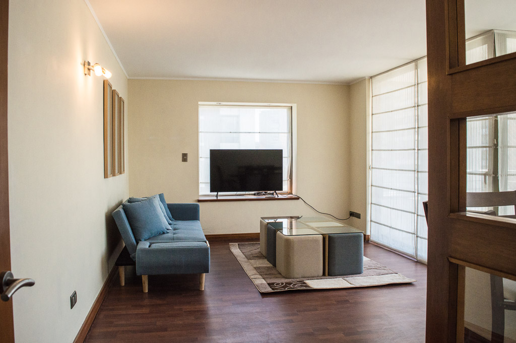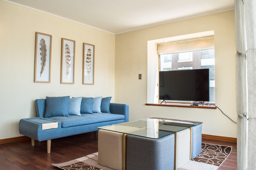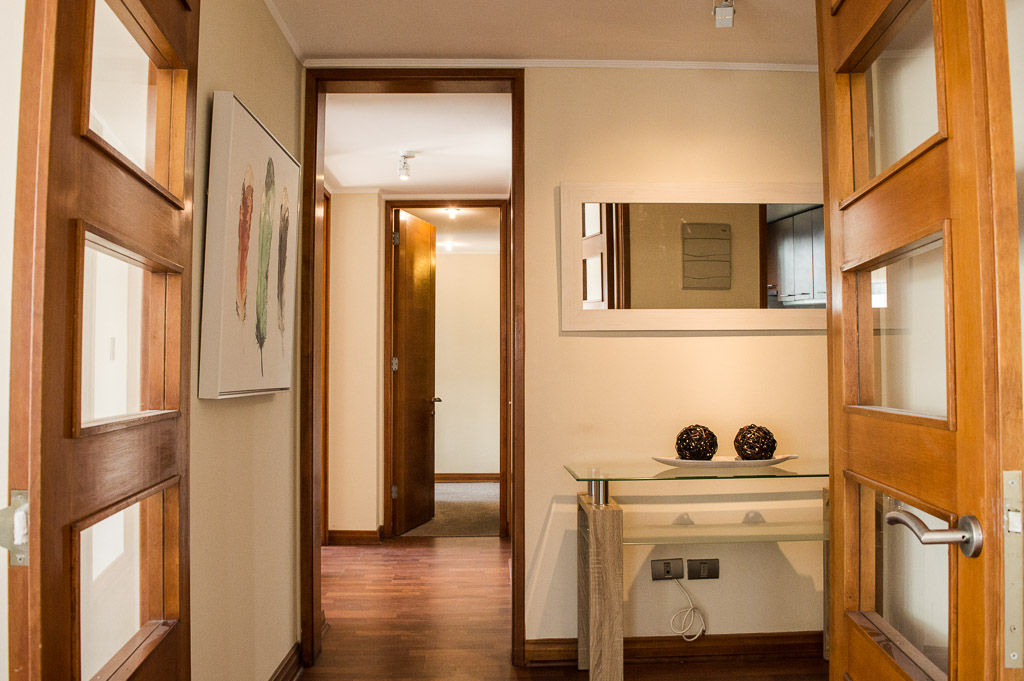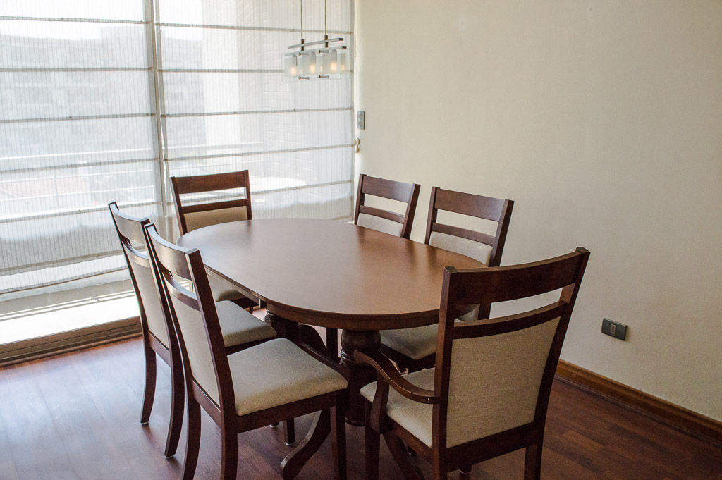 This 3 bedrooms furnished Apartment is located a 8 minutes’ walk from the bus stop and a 5 minutes’ walk from the Metro Station Hernando de Magallanes.The apartment has a living room, dinning room, kitchen (closed), 2 bathrooms, balcony and 1 estacionamiento. The bedroom 1 has a double bed, closet, walk-in closet, 2 nightstands and bathroom in suite. The bedroom 2 has a trundle bed, closet and desk. The bedroom 3 has a trundle bed, closet and desk. The place measures 100m² + 15m² of balcony approximately The cost of services like common expenses, hot water, cold water, electricity and gas are paid in advance together with the monthly rent, with a consumption limit of $ 292USD. You should pay a security deposit, which will be returned at the end of the lease term; The tenant(s) must also pay $ 88USD fee when the unit is returned for cleaning. The unit is located close to the Corporación Cultural de las Condes, where you can find a library, an amphitheater and different exhibitions from varied artists. On las Condes Avenue, there are shops, educational centers, coffee shops, restaurants and various means of public transport to different parts of the city.