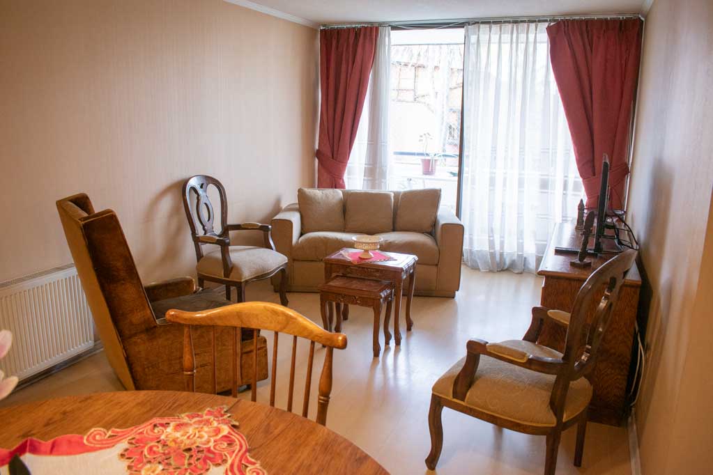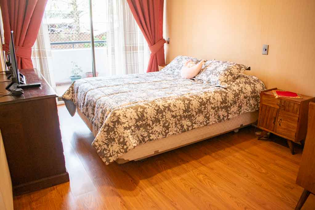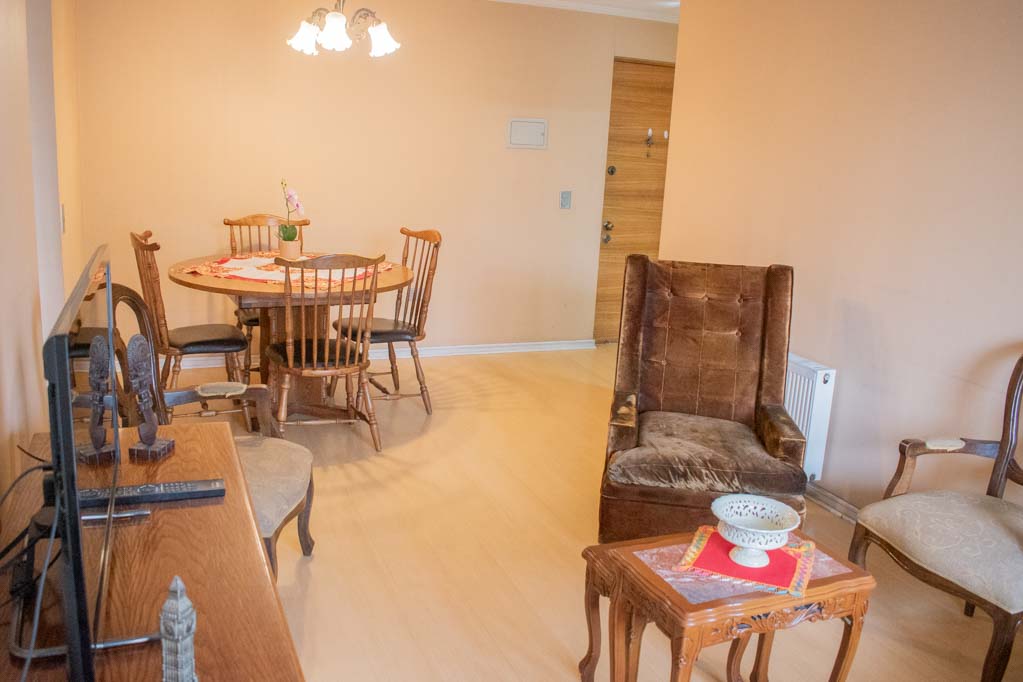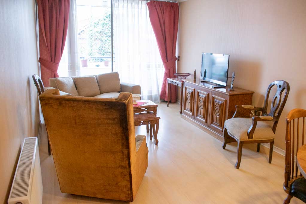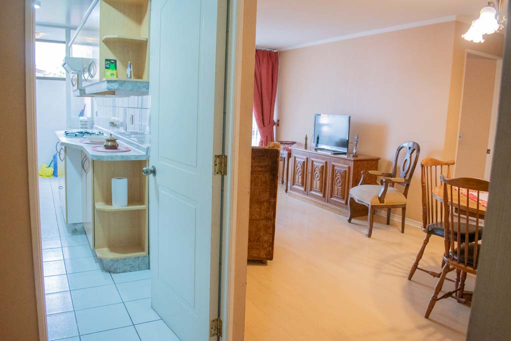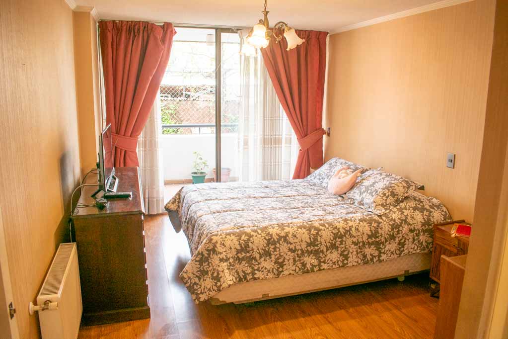 This 2 bedrooms furnished Apartment is located a 1 minute’ walk from the bus stop and a 10 minutes’ walk from the Metro Station Monseñor Eyzaguirre.The apartment has a living room, dinning room, kitchen (closed), 2 bathrooms, terrace and 1 estacionamiento (optional for additional value of $ 58USD). The bedroom 1 has a double bed, walk-in closet, dresser, 2 nightstands, TV and bathroom in suite. The bedroom 2 has a single bed, closet, 2 nightstands, TV and chair. The place measures 80m² + 10m² of balcony approximately Should be considered, the payment of the expenses of services of common expenses, hot water, cold water, electricity and gas that add $ 226USD approximately. You should pay a security deposit, which will be returned at the end of the lease term; The tenant(s) must also pay $ 41USD fee when the unit is returned for cleaning. The unit is located close to Irarrázaval Avenue, one of the main thoroughfares of Santiago, characterized by its different shops, supermarkets, restaurants, pubs and nightclubs. It also has various means of public transport to different parts of the city.