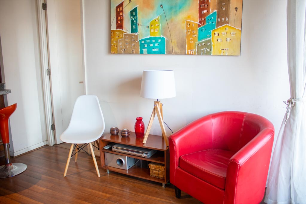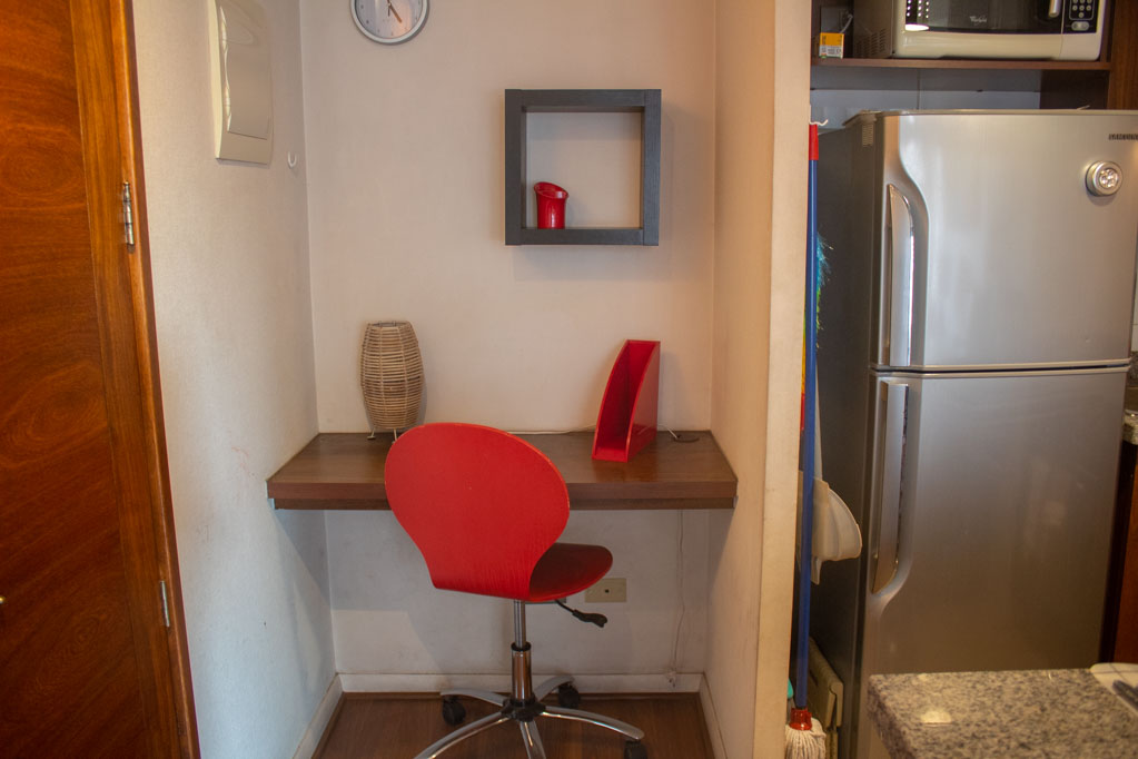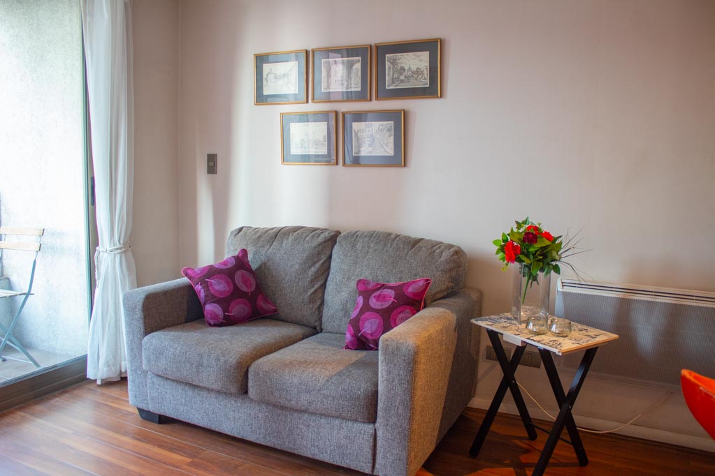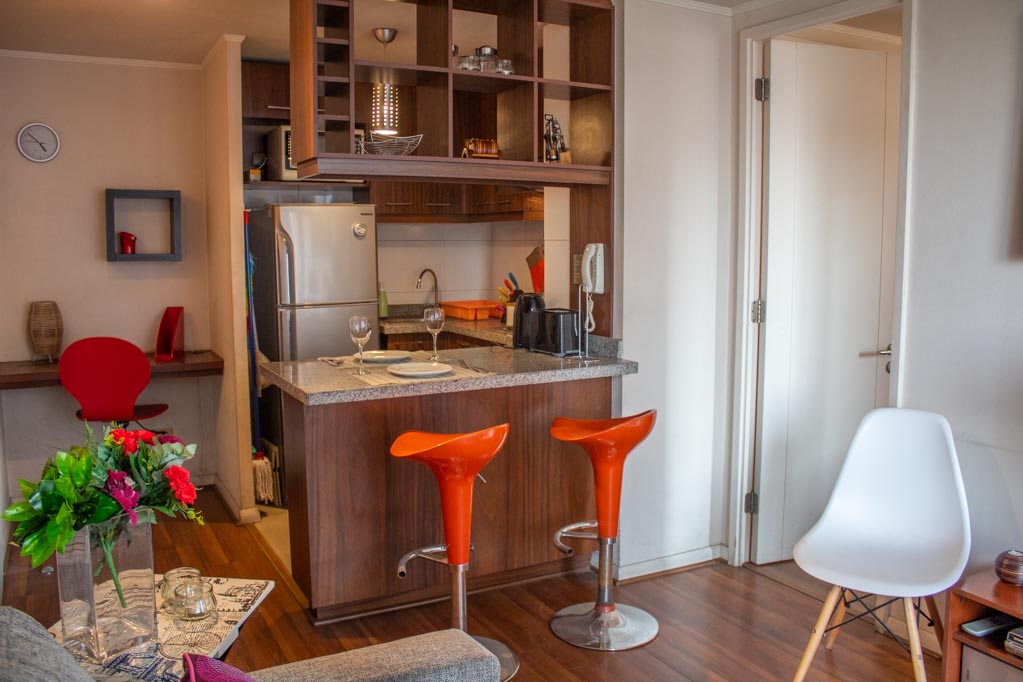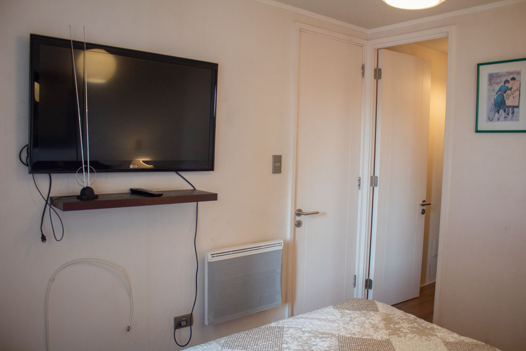 This 1 bedroom furnished Apartment is located a 1 minute’ walk from the bus stop and a 2 minutes’ walk from the Metro Station Irarrázaval.The apartment has a living room, dinning room, kitchen (open), 1 bathroom, terrace and 1 estacionamiento (optional for additional value of $ 49USD). The bedroom 1 has a double bed, walk-in closet, 2 nightstands, TV, chair and bathroom in suite. The place measures 42m² + 4m² of balcony approximately Should be considered, the payment of the expenses of services of common expenses, hot water, cold water and electricity that add $ 99USD approximately. The accommodation has in-house share laundry, price per load for both washers or dryers is $ 1USD approximately. You should pay a security deposit, which will be returned at the end of the lease term; The tenant(s) must also pay $ 44USD fee when the unit is returned for cleaning. The unit is located close to Irarrázaval Avenue, one of the main thoroughfares of Santiago, characterized by its different shops, supermarkets, restaurants, pubs and nightclubs. It also has various means of public transport to different parts of the city.