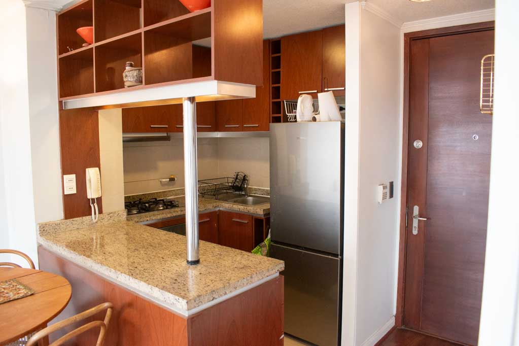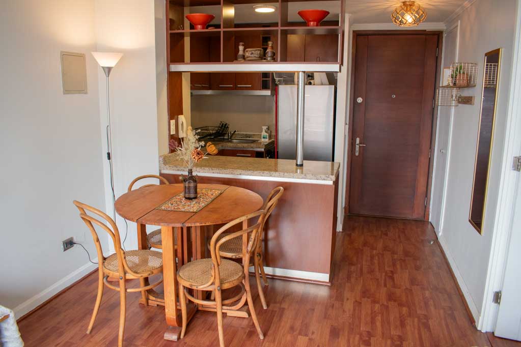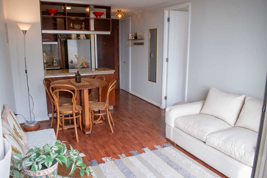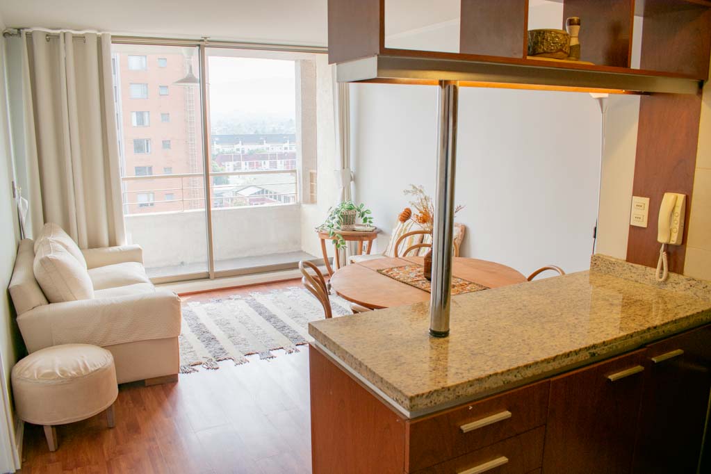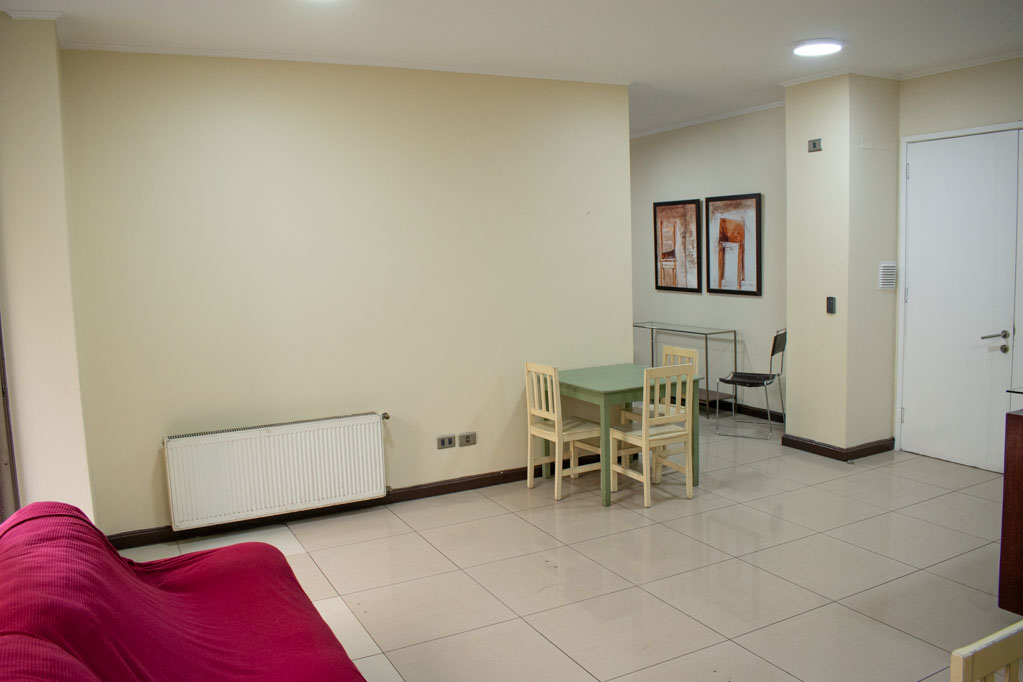 This 1 bedroom furnished Apartment is located a 3 minutes’ walk from the bus stop and a 8 minutes’ walk from the Metro Station Chile España.The apartment has a living room, dinning room, kitchen (open), 1 bathroom, terrace and 1 estacionamiento. The bedroom 1 has a double bed, walk-in closet, 2 nightstands, TV and bathroom in suite. The place measures 39m² + 6m² of balcony approximately Should be considered, the payment of the expenses of services of common expenses, hot water, cold water, electricity and gas that add $ 187USD approximately. You should pay a security deposit, which will be returned at the end of the lease term; The tenant(s) must also pay $ 55USD fee when the unit is returned for cleaning. The unit is located close to the square Plaza Ñuñoa, Municipality of Ñuñoa, cultural centers such as the Theater of the Catholic University (Teatro Dante) and the traditional pergola of Plaza Ñuñoa, a meeting point for residents and tourists. The place is characterized by its full of life identity and its great variety of bars and restaurants.