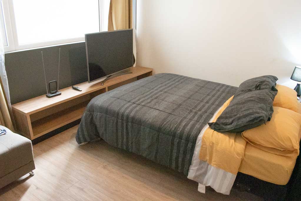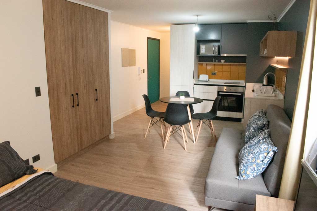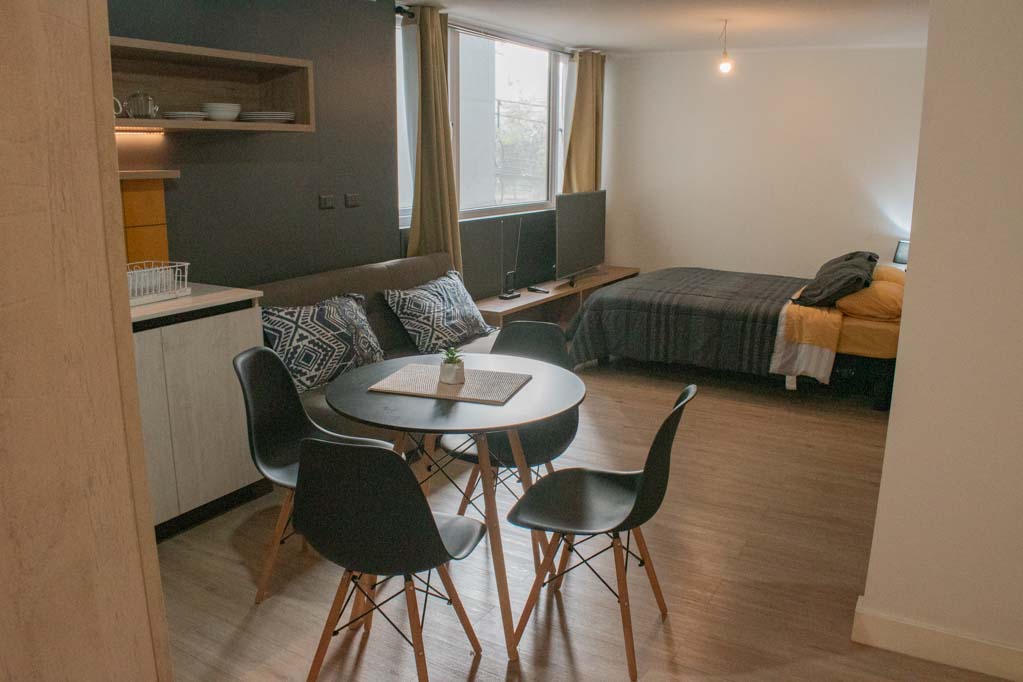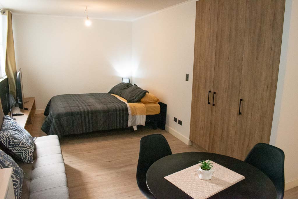 This 1 studio furnished Apartment is located a 3 minutes’ walk from the bus stop and a 3 minutes’ walk from the Metro Station Irarrázaval.The apartment has a dinning room, kitchen (open) and 1 bathroom. The bedroom 1 has a double bed, closet, nightstand, couch and TV. The place measures 35m² approximately. The cost of services like common expenses, hot water, cold water and electricity are paid in advance together with the monthly rent, with a consumption limit of $ 146USD. The accommodation has in-house share laundry, price per load for both washers or dryers is $ 2USD approximately. You should pay a security deposit, which will be returned at the end of the lease term; The tenant(s) must also pay $ 41USD fee when the unit is returned for cleaning. The unit is located close to Irarrázaval Avenue, one of the main thoroughfares of Santiago, characterized by its different shops, supermarkets, restaurants, pubs and nightclubs. It also has various means of public transport to different parts of the city.