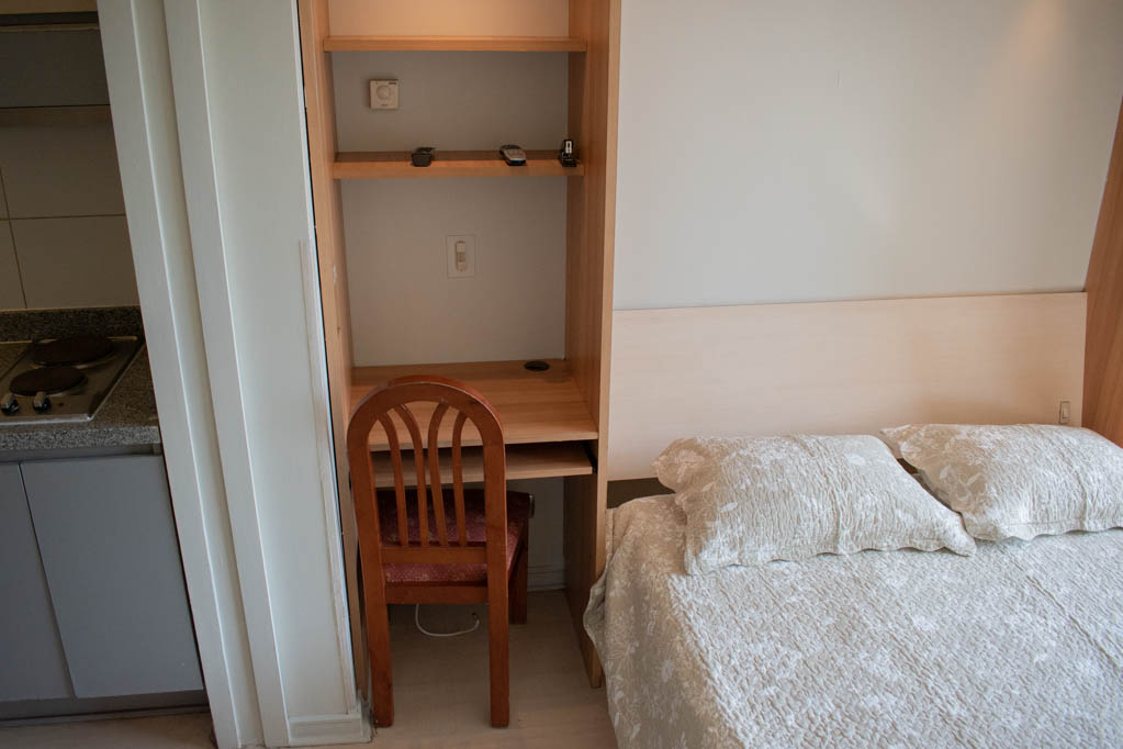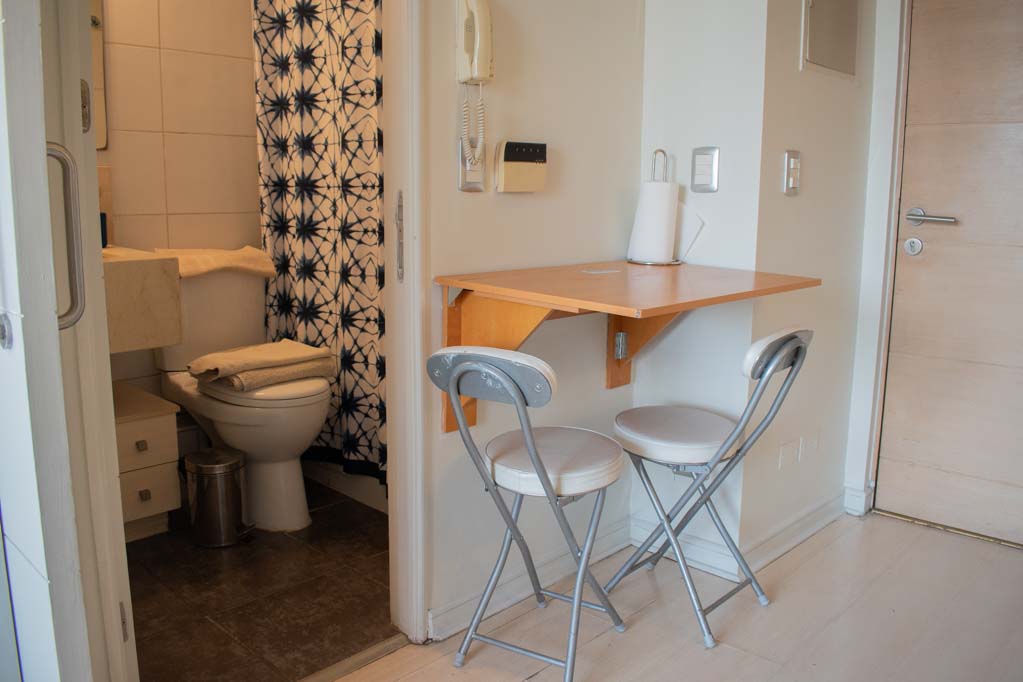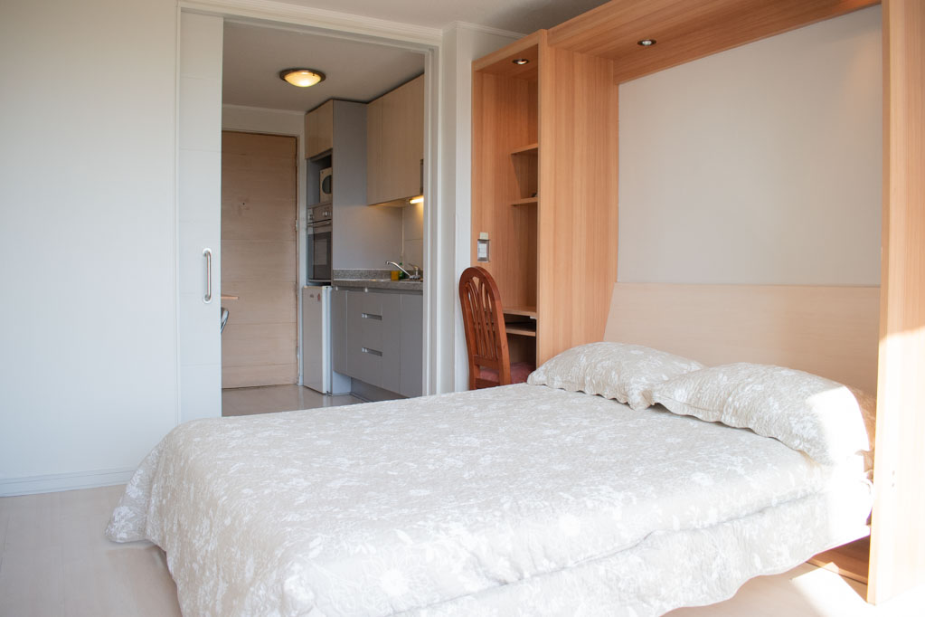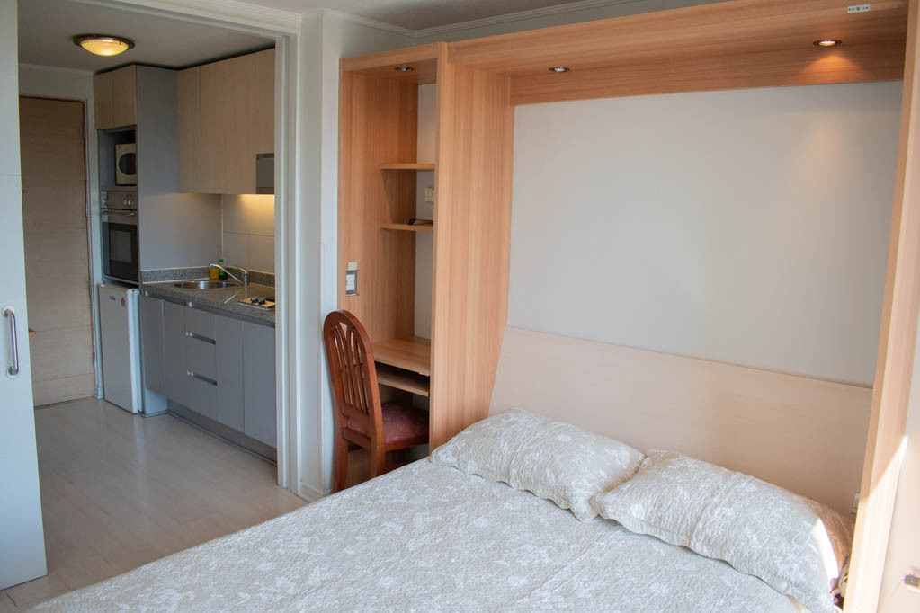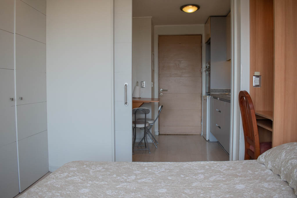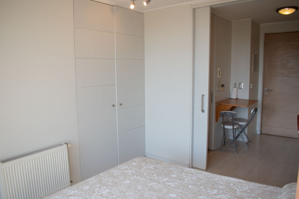 This 1 studio furnished Apartment is located a 3 minutes’ walk from the bus stop and a 5 minutes’ walk from the Metro Station Los Leones.The apartment has a living room, dinning room, kitchen (closed), 1 bathroom and balcony. The bedroom 1 has a double bed, closet, TV, desk and bathroom in suite. The place measures 23m² + 2m² of balcony approximately The cost of services like common expenses, hot water, cold water and electricity are paid in advance together with the monthly rent, with a consumption limit of $ 120USD. The accommodation has in-house share laundry, price per load for both washers or dryers is $ 2USD approximately. You should pay a security deposit, which will be returned at the end of the lease term; The tenant(s) must also pay $ 54USD fee when the unit is returned for cleaning. The unit is located close to Nueva Providencia Avenue and Providencia Avenue (the heart of Providencia,) where it is possible to find commercial stores, banks, gyms, supermarkets and public transport. A few steps away, it is the well-known Mall Costanera Center, the largest and most modern shopping center in Latin America.