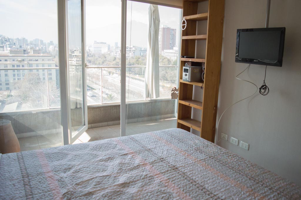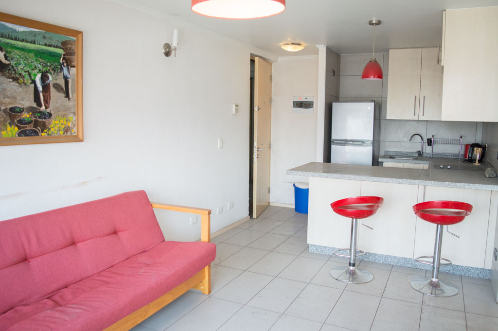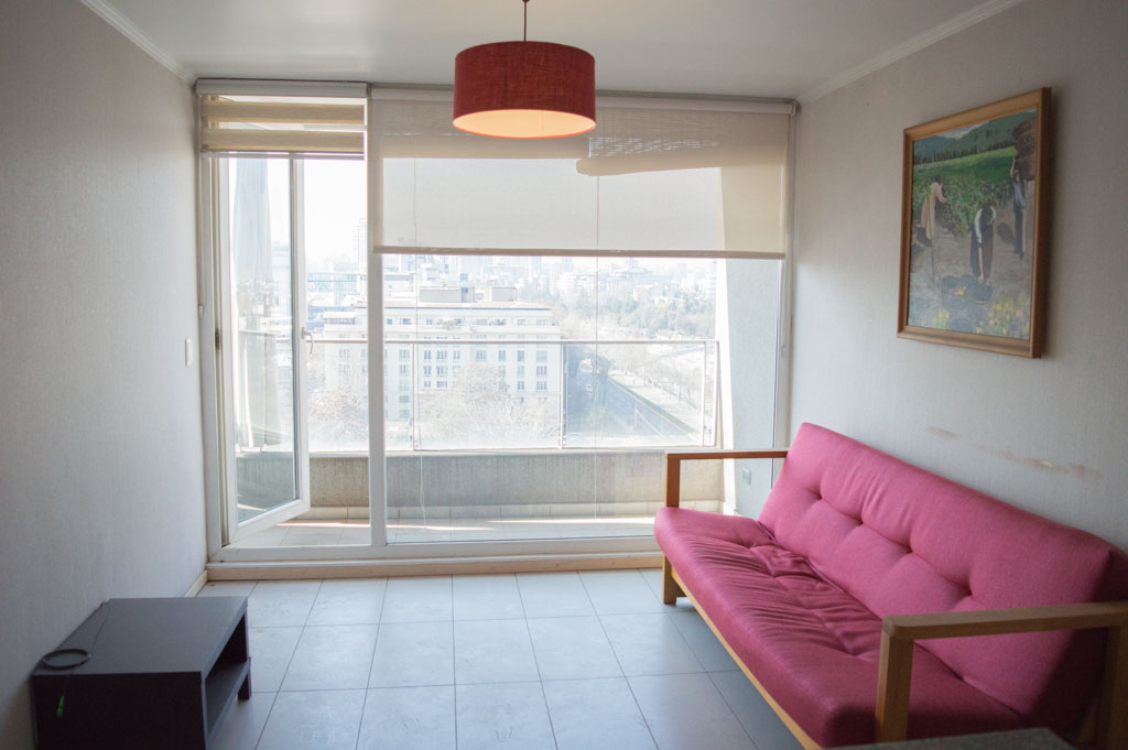 This 1 bedroom furnished Apartment is located a 3 minutes’ walk from the bus stop and a 9 minutes’ walk from the Metro Station Baquedano.The apartment has a living room, dinning room, kitchen (open), 1 bathroom, terrace and 1 estacionamiento. The bedroom 1 has a double bed, closet, 2 nightstands, TV and bathroom in suite. The place measures 38m² + 5m² of balcony approximately Should be considered, the payment of the expenses of services of common expenses, hot water, cold water and electricity that add $ 117USD approximately. The accommodation has in-house share laundry, price per load for both washers or dryers is $ 1USD approximately. You should pay a security deposit, which will be returned at the end of the lease term; The tenant(s) must also pay $ 33USD fee when the unit is returned for cleaning. The unit is located close to Bustamante Park, where it is possible to walk, practice sports or visit the library (literary coffee shop). At just a few steps away from the neighborhood Bellavista. It is unique for its identity and multiple artistic interventions, museums, galleries and squares; a combination of different costumes, handicrafts, besides its restaurants, nightclubs, bars and cafés. Nearby is the San Cristóbal Hill where you can walk and practice sports; in addition to an important tourist attraction: the house of the poet Pablo Neruda "La Chascona".