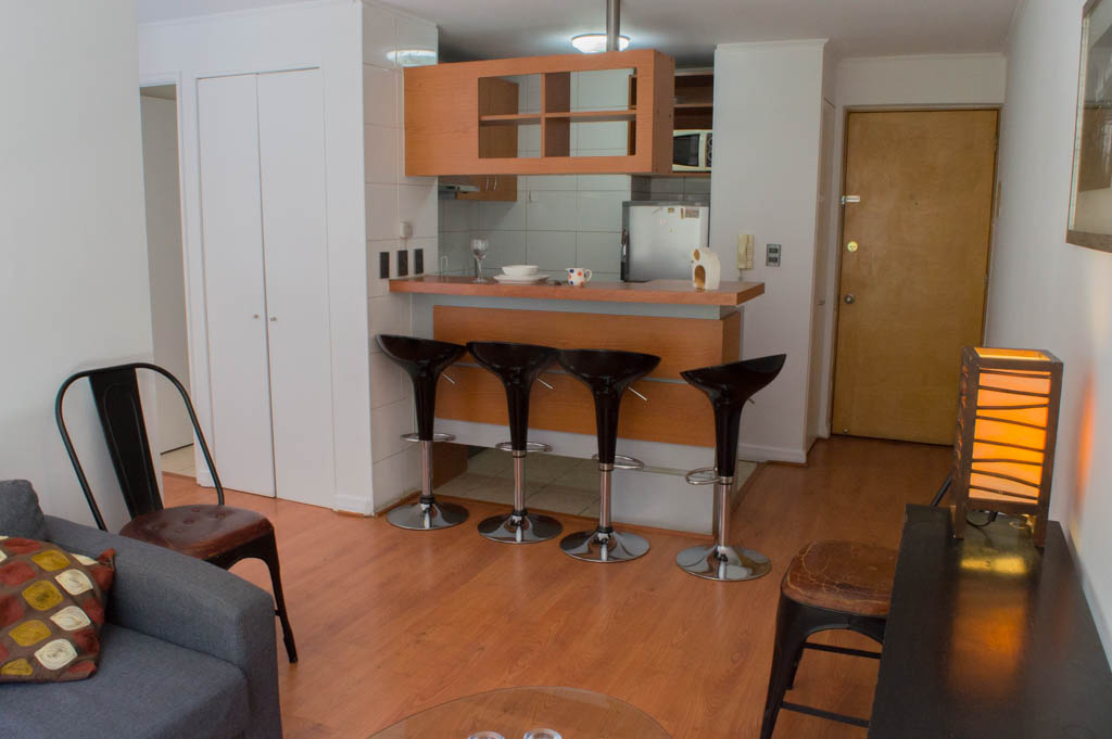 This 1 bedroom furnished Apartment is located a 1 minute’ walk from the bus stop and a 1 minute’ walk from the Metro Station Los Leones.The apartment has a living room, dinning room, kitchen (open) and 1 bathroom. The bedroom 1 has a double bed, closet, 2 nightstands and bathroom in suite. The place measures 34m² approximately. The cost of services like common expenses, hot water, cold water, electricity and internet are paid in advance together with the monthly rent, with a consumption limit of $ 184USD. The accommodation has in-house share laundry, price per load for both washers or dryers is $ 2USD approximately. You should pay a security deposit, which will be returned at the end of the lease term; The tenant(s) must also pay $ 32USD fee when the unit is returned for cleaning. The unit is located close to Nueva Providencia Avenue and Providencia Avenue (the heart of Providencia,) where it is possible to find commercial stores, banks, gyms, supermarkets and public transport. A few steps away, it is the well-known Mall Costanera Center, the largest and most modern shopping center in Latin America.