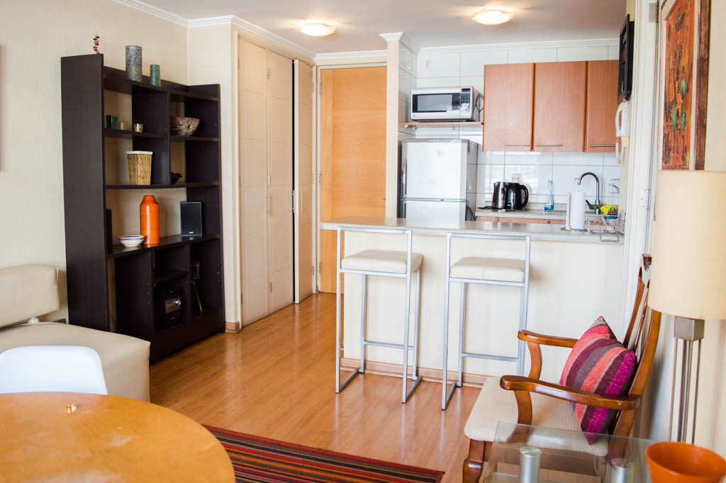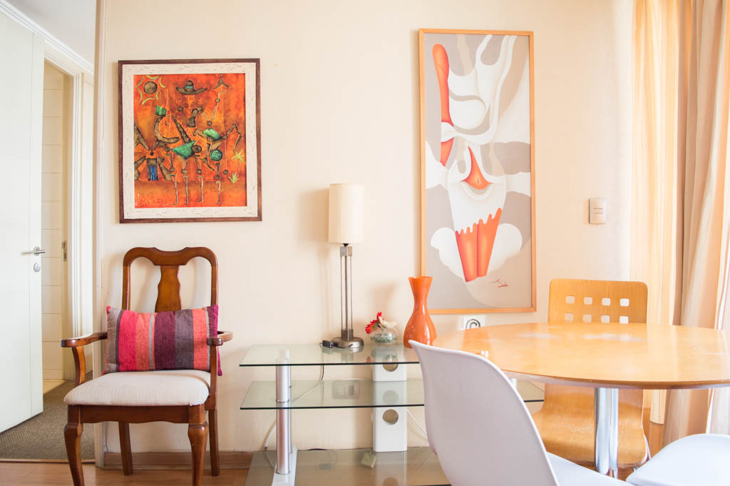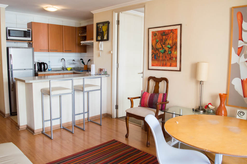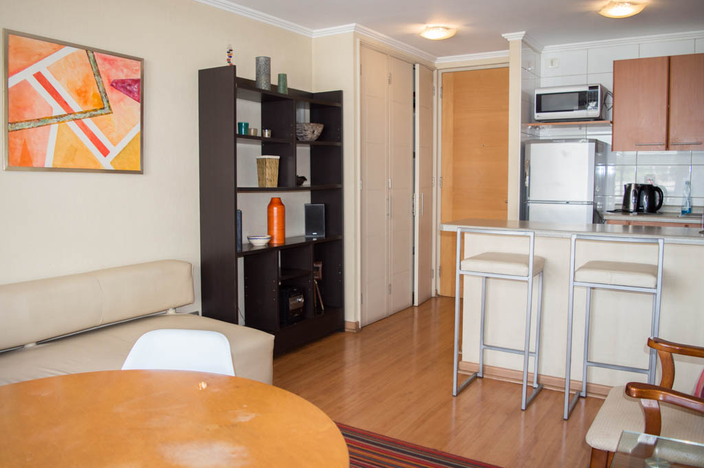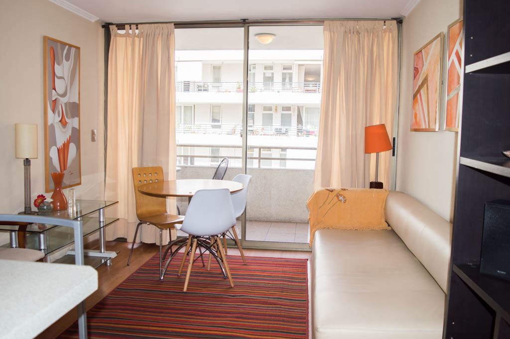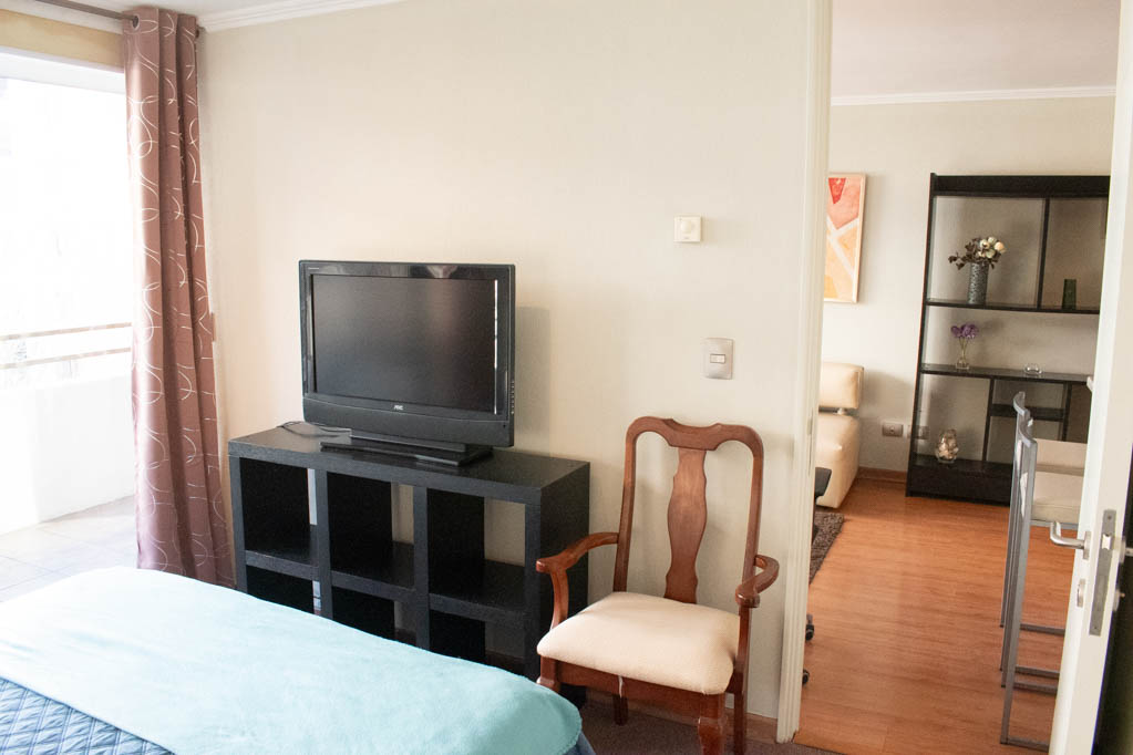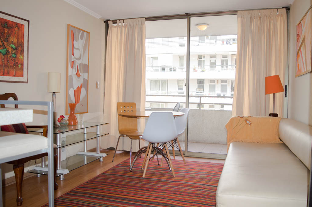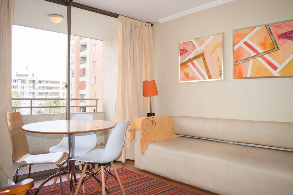 This 1 bedroom furnished Apartment is located a 14 minutes’ walk from the bus stop and a 14 minutes’ walk from the Metro Station Pedro de Valdivia.The apartment has a living room, dinning room, kitchen (open), 1 bathroom, terrace and 1 estacionamiento (optional for additional value of $ 42USD). The bedroom 1 has a double bed, closet, 2 nightstands, TV and bathroom in suite. The place measures 34m² + 6m² of balcony approximately Should be considered, the payment of the expenses of services of common expenses, hot water, cold water, electricity and gas that add $ 212USD approximately. The accommodation has in-house share laundry, price per load for both washers or dryers is $ 2USD approximately. You should pay a security deposit, which will be returned at the end of the lease term; The tenant(s) must also pay $ 53USD fee when the unit is returned for cleaning. The unit is located close to Providencia Avenue, where they are located different shops, banks, supermarkets, restaurants, coffee shops, bars, and accessibility to different parts of the city. A few steps away you can find the Church of the Divine Providence, a national monument, and the sculpture’s park, with artworks of different artists, and pleasant green areas.