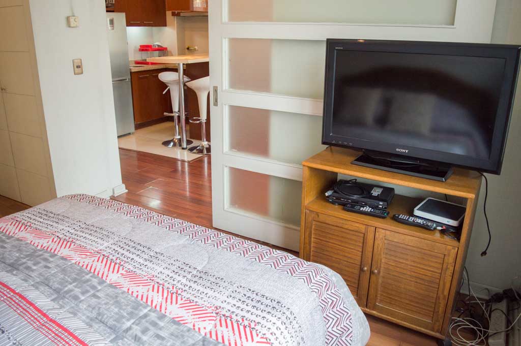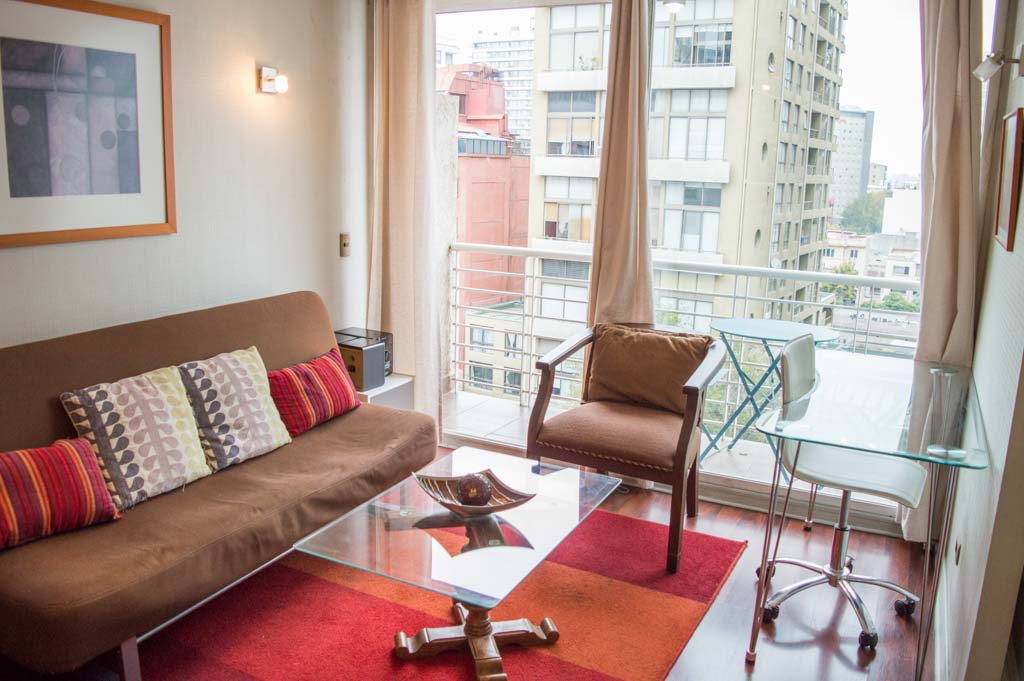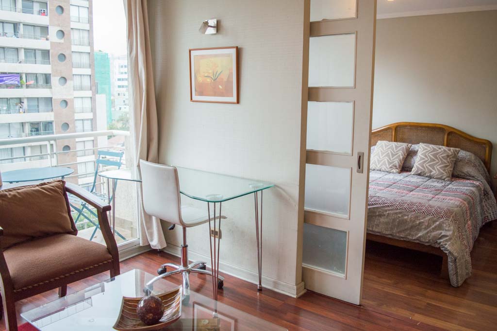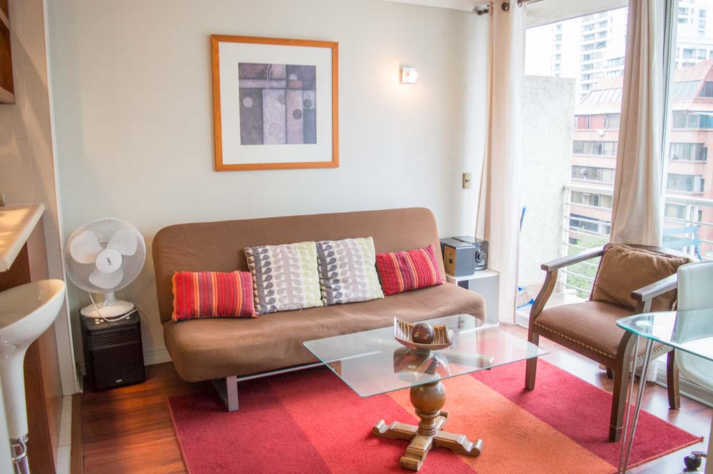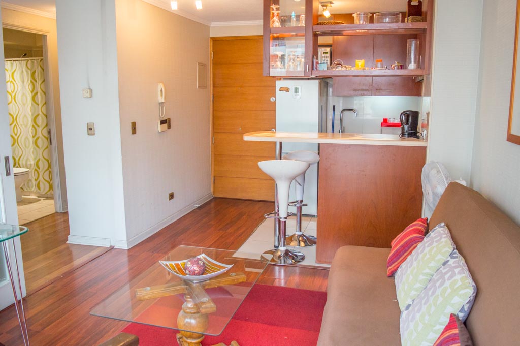 This 1 bedroom furnished Apartment is located a 3 minutes’ walk from the bus stop and a 3 minutes’ walk from the Metro Station Manuel Montt.The apartment has a living room, dinning room, kitchen (open), 1 bathroom and balcony. The bedroom 1 has a double bed, closet, 2 nightstands, TV and bathroom in suite. The place measures 33m² + 3m² of balcony approximately The cost of services like common expenses, hot water, cold water, electricity, gas, internet and TV cable are paid in advance together with the monthly rent, with a consumption limit of $ 201USD. The accommodation has in-house share laundry, price per load for both washers or dryers is $ 2USD approximately. You should pay a security deposit, which will be returned at the end of the lease term; The tenant(s) must also pay $ 45USD fee when the unit is returned for cleaning. The unit is located close to Providencia Avenue, where it is possible to find shops, banks, restaurants, cooffe shops and public transport. There is also Manuel Montt Ave, which is characterized by the presence of the academic, the commercial and the bohemian sector of the area; there you can find different bars and clubs.