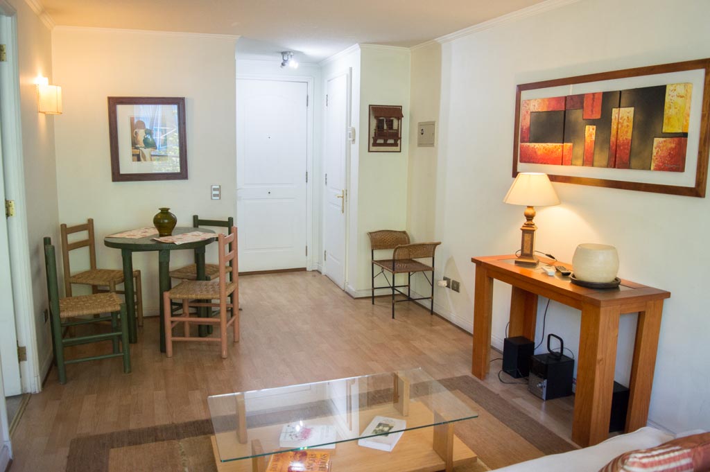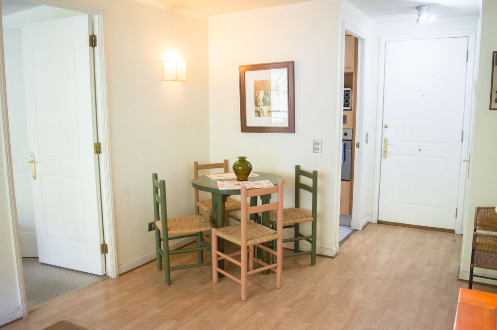 This 1 bedroom furnished Apartment is located a 5 minutes’ walk from the bus stop and a 10 minutes’ walk from the Metro Station Los Leones.The apartment has a living room, dinning room, kitchen (closed), 1 bathroom, terrace and 1 estacionamiento. The bedroom 1 has a double bed, walk-in closet, 2 nightstands, TV and bathroom in suite. The place measures 40m² + 6m² of balcony approximately Should be considered, the payment of the expenses of services of common expenses, hot water, cold water, electricity and gas that add $ 153USD approximately. The accommodation has in-house share laundry, price per load for both washers or dryers is $ 1USD approximately. You should pay a security deposit, which will be returned at the end of the lease term; The tenant(s) must also pay $ 32USD fee when the unit is returned for cleaning. The unit is located close to Nueva Providencia Avenue and Providencia Avenue (the heart of Providencia,) where it is possible to find commercial stores, banks, gyms, supermarkets and public transport. A few steps away, it is the well-known Mall Costanera Center, the largest and most modern shopping center in Latin America.