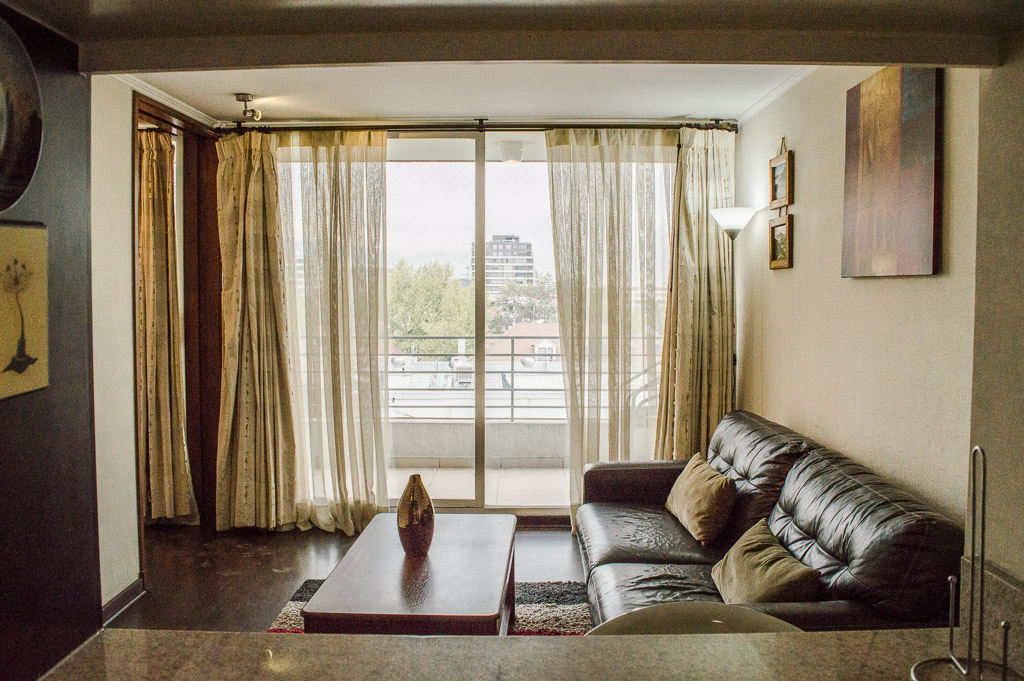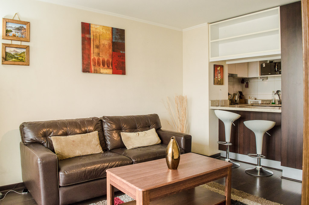 This 1 bedroom furnished Apartment is located a 2 minutes’ walk from the bus stop and a 11 minutes’ walk from the Metro Station Inés de Suárez.The apartment has a living room, dinning room, kitchen (open), 1 bathroom, terrace and 1 estacionamiento. The bedroom 1 has a double bed, 2 nightstands, TV and bathroom in suite. The place measures 30m² + 10m² of balcony approximately Should be considered, the payment of the expenses of services of common expenses, hot water, cold water and electricity that add $ 116USD approximately. You should pay a security deposit, which will be returned at the end of the lease term; The tenant(s) must also pay $ 22USD fee when the unit is returned for cleaning. The unit is located close to Pocuro Avenue, highlighted by its extensive bike path with green areas, especially for outdoor sports. The place is characterized for being a suburban neighborhood, which mixes modern buildings with spacious houses; all of them surrounded by its tree-lined streets.