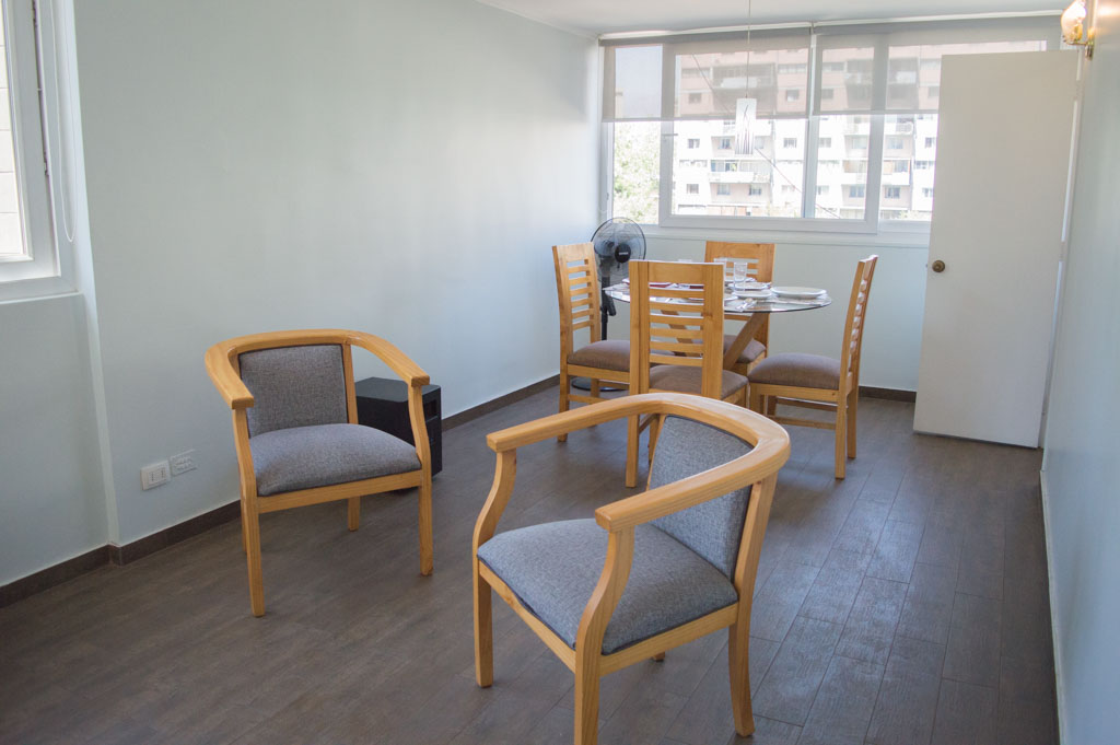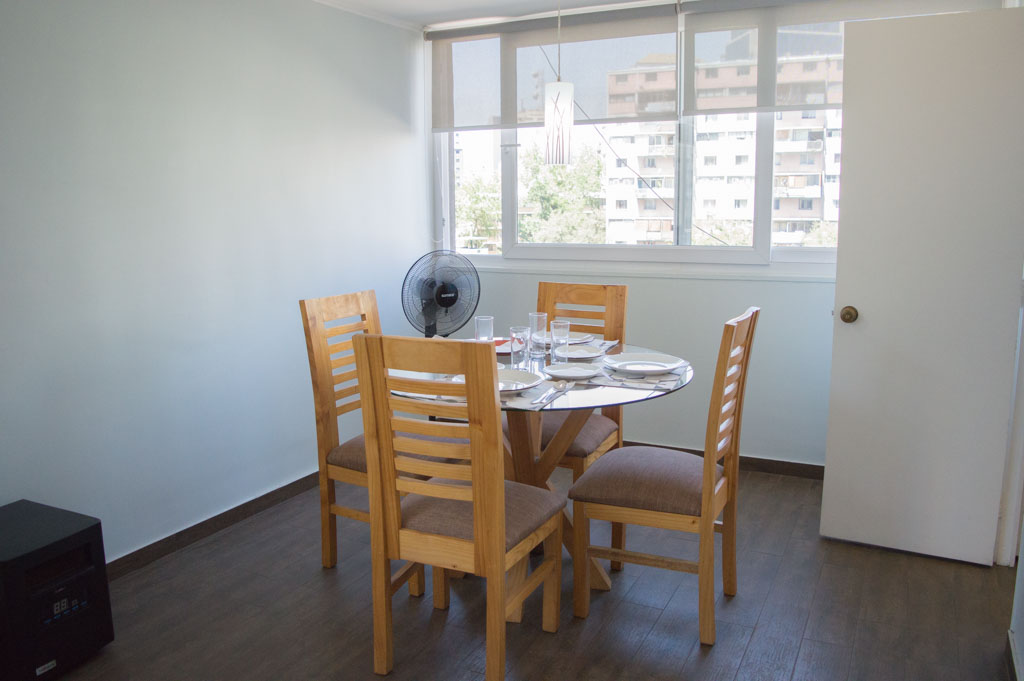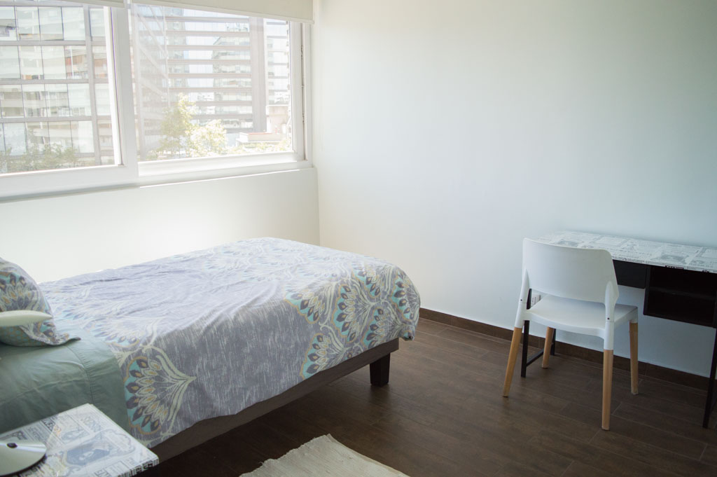 This 4 bedrooms furnished Apartment is located a 2 minutes’ walk from the bus stop and a 3 minutes’ walk from the Metro Station Pedro de Valdivia.The apartment has a living room, dinning room, kitchen (closed) and 2 bathrooms. The bedroom 1 has a single bed, closet, nightstand, desk and chair. The bedroom 2 has a single bed, closet, nightstand, desk and chair. The bedroom 3 has a single bed, closet, nightstand, desk and chair. The bedroom 4 has a single bed, closet, nightstand, desk and chair. The place measures 114m² approximately. The cost of services like common expenses and internet are paid in advance together with the monthly rent, with a consumption limit of $ 173USD. In addition, should be considered, the payment of the expenses of services of cold water, electricity and gas that add $ 69USD approximately. You should pay a security deposit, which will be returned at the end of the lease term; The tenant(s) must also pay $ 115USD fee when the unit is returned for cleaning. The unit is located close to Providencia Avenue, where they are located different shops, banks, supermarkets, restaurants, coffee shops, bars, and accessibility to different parts of the city. A few steps away you can find the Church of the Divine Providence, a national monument, and the sculpture’s park, with artworks of different artists, and pleasant green areas.