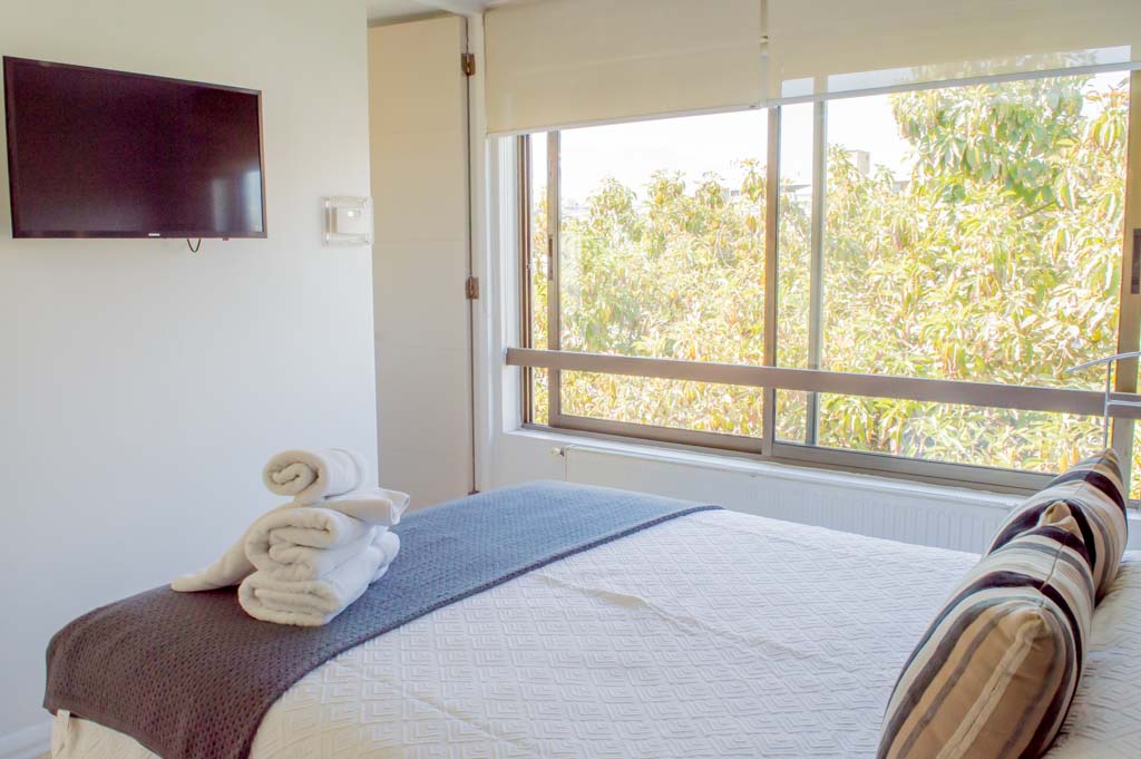 This 1 bedroom furnished Apartment is located a 2 minutes’ walk from the bus stop and a 11 minutes’ walk from the Metro Station Los Leones.The apartment has a living room, dinning room, kitchen (open), 1 bathroom and terrace. The bedroom 1 has a double bed, closet, 2 nightstands, TV and bathroom in suite. The place measures 35m² + 4m² of balcony approximately The cost of services like common expenses, hot water, cold water, electricity, internet and TV cable are paid in advance together with the monthly rent, with a consumption limit of $ 169USD. The accommodation has in-house share laundry, price per load for both washers or dryers is $ 6USD approximately. You should pay a security deposit, which will be returned at the end of the lease term; The tenant(s) must also pay $ 34USD fee when the unit is returned for cleaning. The unit is located close to Nueva Providencia Avenue and Providencia Avenue (the heart of Providencia,) where it is possible to find commercial stores, banks, gyms, supermarkets and public transport. A few steps away, it is the well-known Mall Costanera Center, the largest and most modern shopping center in Latin America.