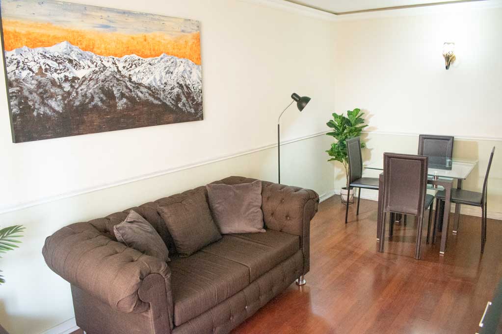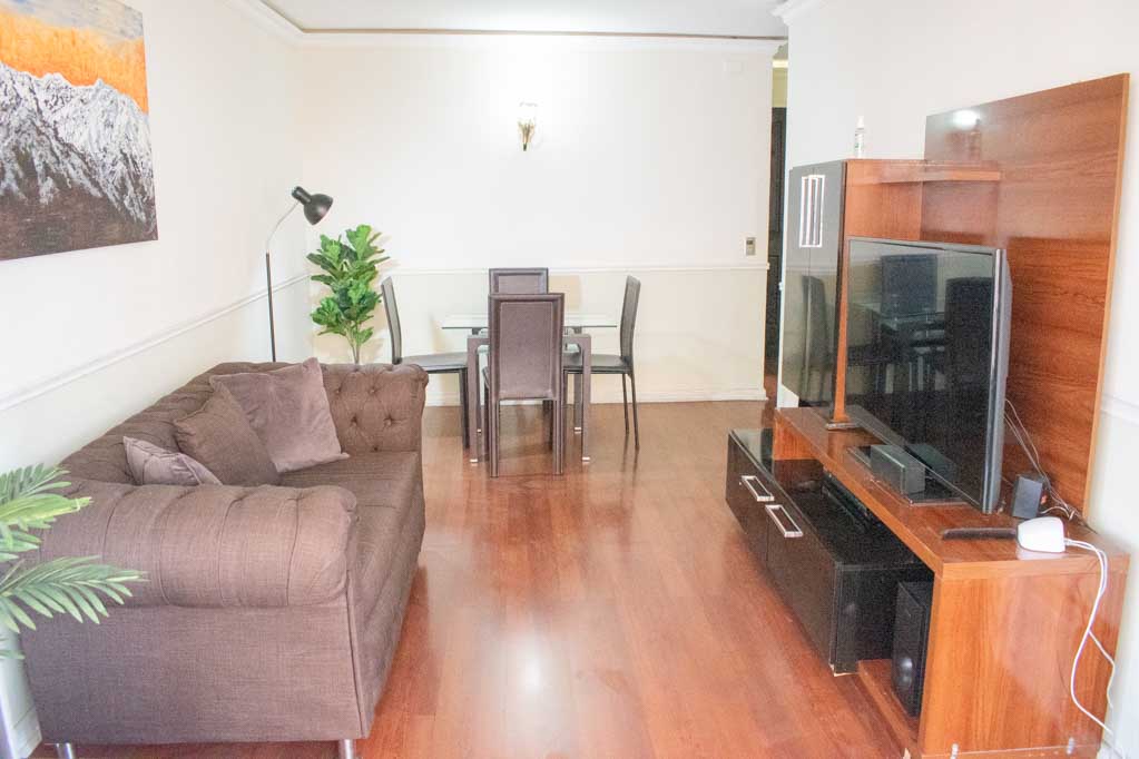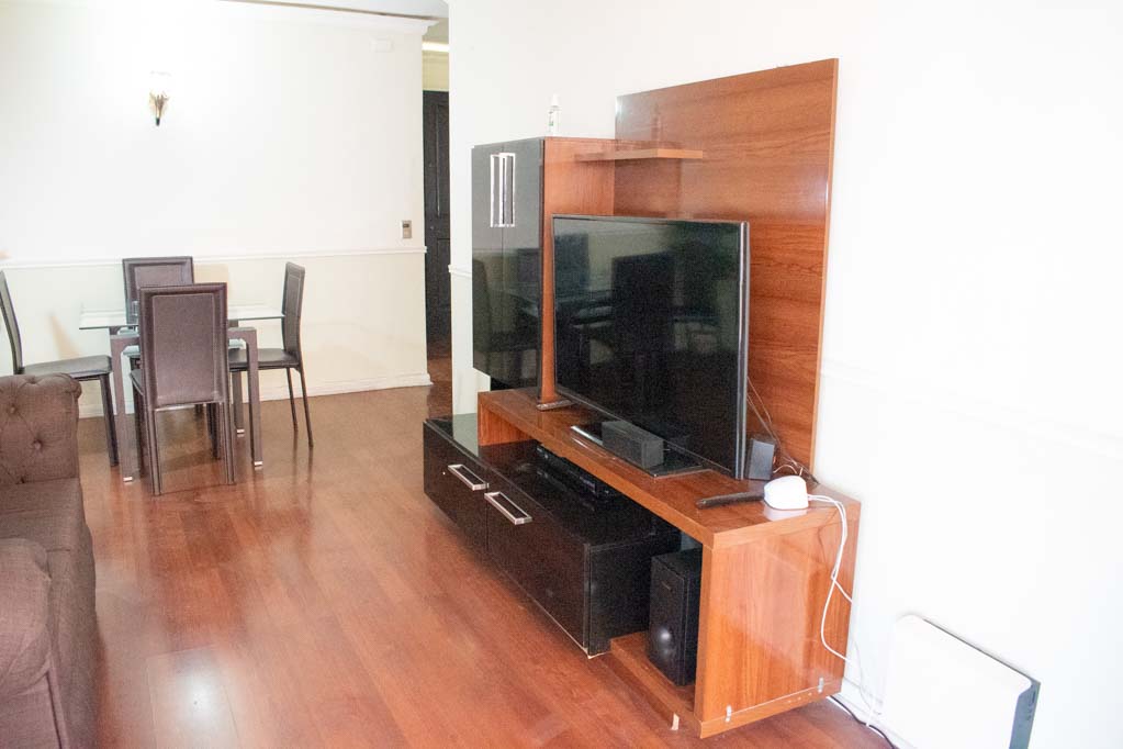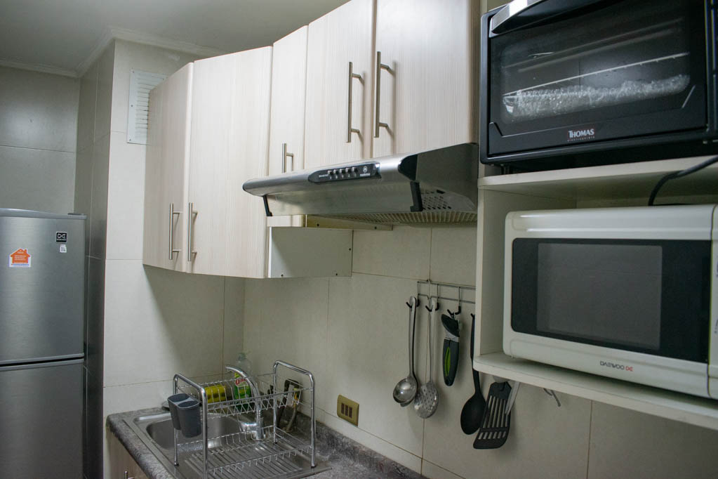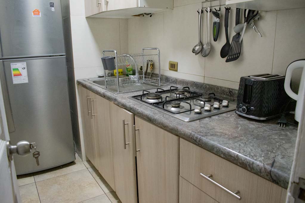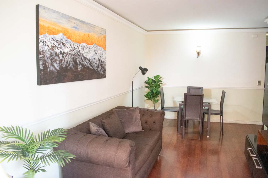 This 2 bedrooms furnished Apartment is located a 2 minutes’ walk from the bus stop and a 2 minutes’ walk from the Metro Station Tobalaba.The apartment has a living room, dinning room, kitchen (closed), 1 bathroom and terrace. The bedroom 1 has a double bed, walk-in closet and 2 nightstands. The bedroom 2 has a single bed, closet and nightstand. The place measures 57m² approximately. The cost of services like common expenses, hot water, cold water, electricity, gas and internet are paid in advance together with the monthly rent, with a consumption limit of $ 298USD. You should pay a security deposit, which will be returned at the end of the lease term; The tenant(s) must also pay $ 93USD fee when the unit is returned for cleaning. The unit is located close to Apoquindo Avenue, where there are various shops, a wide range of services, supermarkets, banks and public transport. A few steps away it is El Bosque Avenue, known for its coffee shops and restaurants. You can also visit the nearby Mall Costanera Center, the largest and most modern shopping center in Latin America.