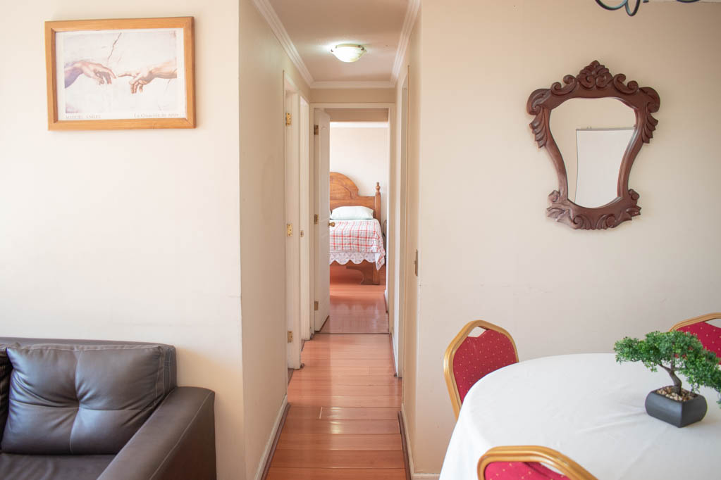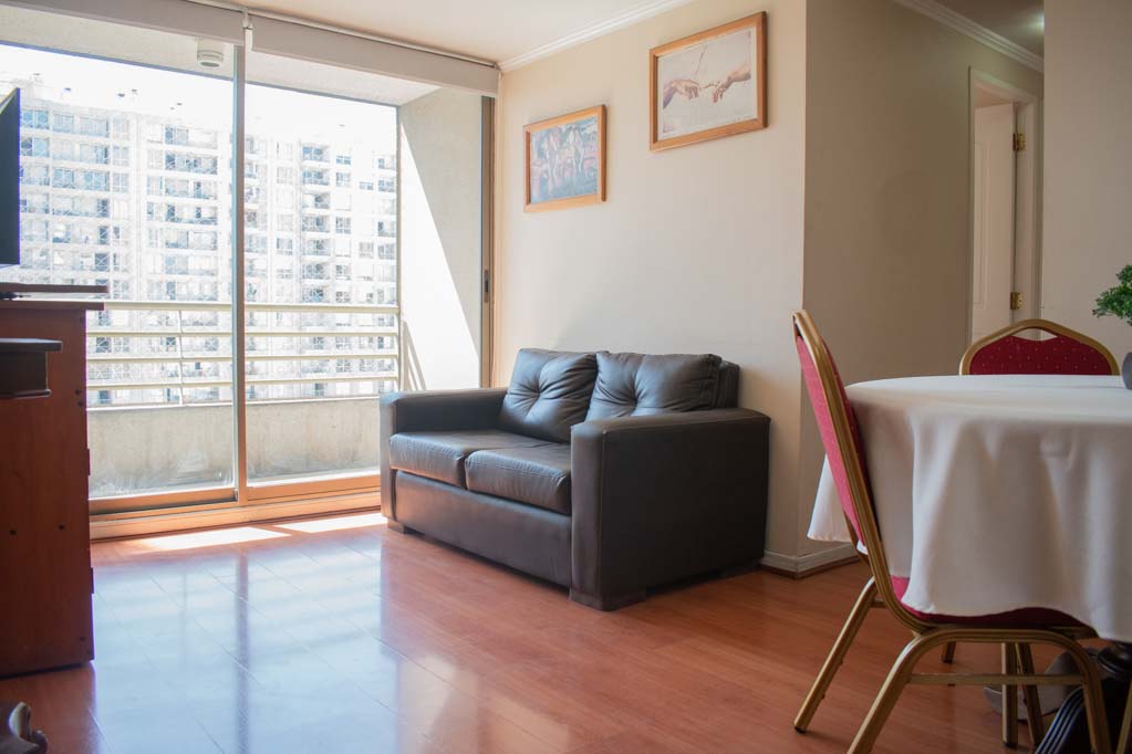 This 3 bedrooms furnished Apartment is located a 4 minutes’ walk from the bus stop and a 4 minutes’ walk from the Metro Station Santa Lucía.The apartment has a living room, dinning room, kitchen (closed), 2 bathrooms and terrace. The bedroom 1 has a double bed, closet, 2 nightstands and bathroom in suite. The bedroom 2 has a single bed, closet and nightstand. The bedroom 3 has a single bed, closet and nightstand. The place measures 72m² + 3m² of balcony approximately The cost of services like common expenses, hot water, cold water, electricity, gas and internet are paid in advance together with the monthly rent, with a consumption limit of $ 196USD. The accommodation has in-house share laundry, price per load for both washers or dryers is $ 2USD approximately. You should pay a security deposit, which will be returned at the end of the lease term; The tenant(s) must also pay $ 65USD fee when the unit is returned for cleaning. The unit is located close to the Biblioteca Nacional de Chile, the Municipal Theater of Santiago, Cine Arte, craft fairs, cultural centers and the Santa Lucia Hill (an important focus for tourism and Sunday walks due to the attractions it presents, such as water fountains, terraces and viewpoints where you can enjoy a privileged view of Santiago.)