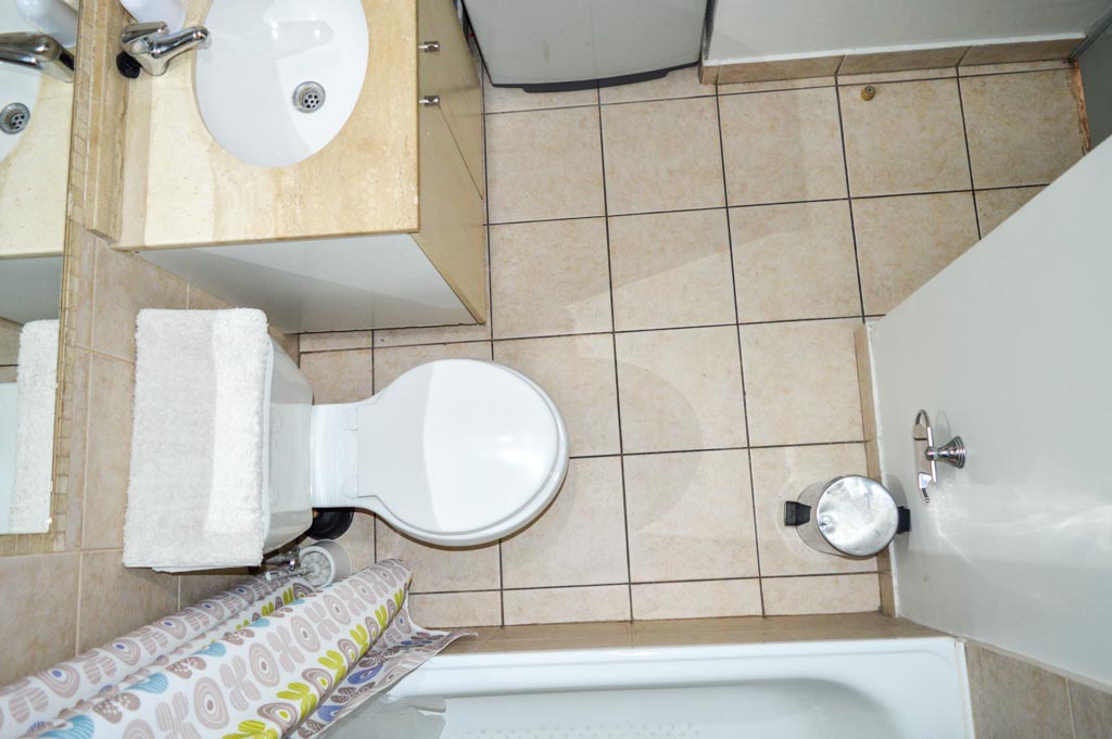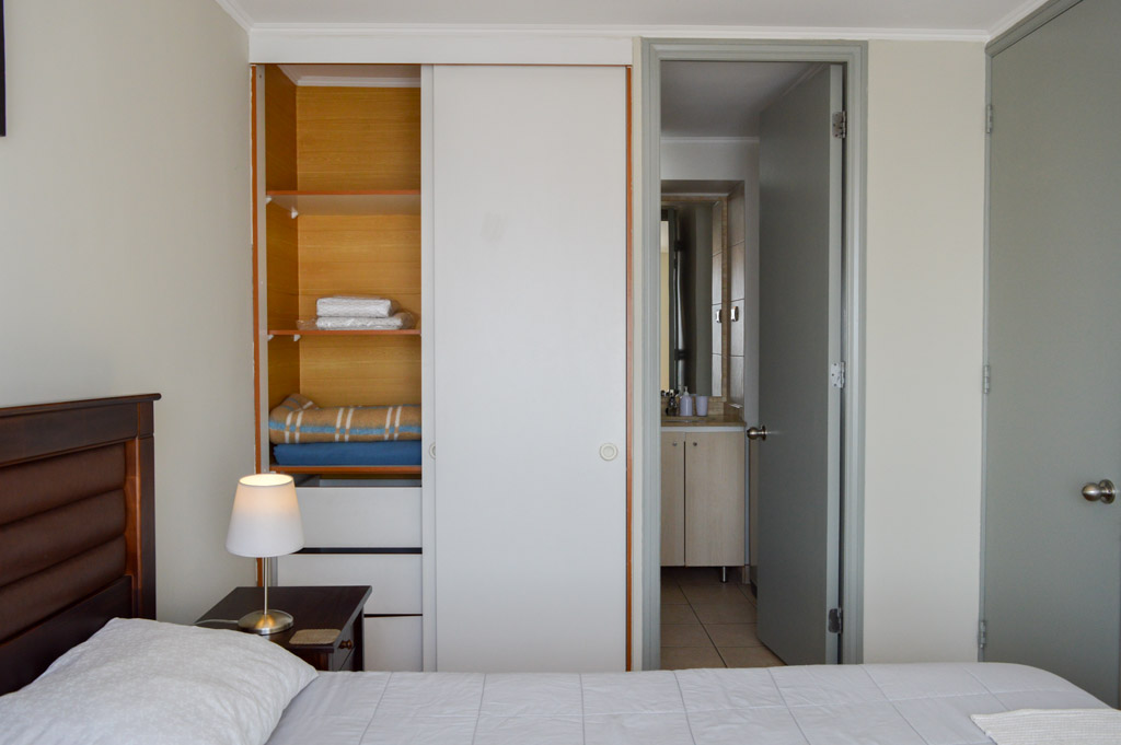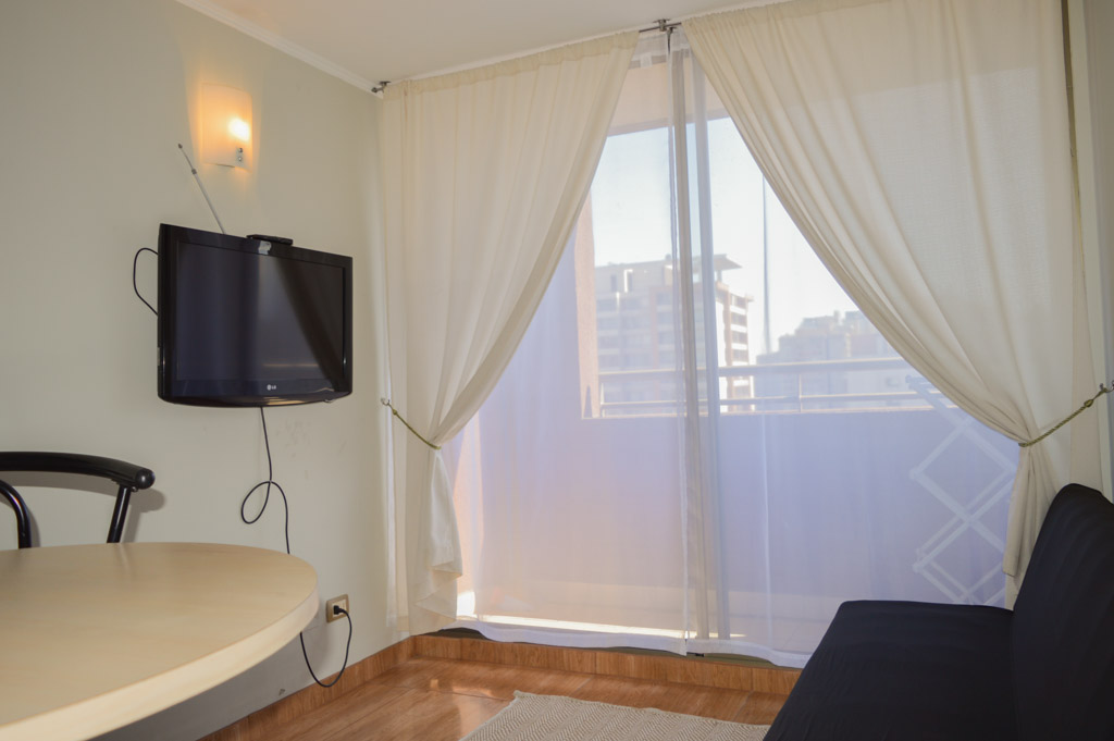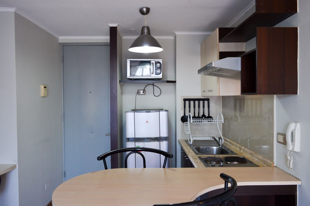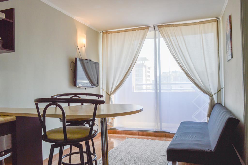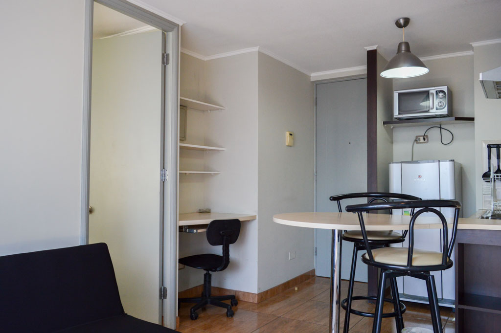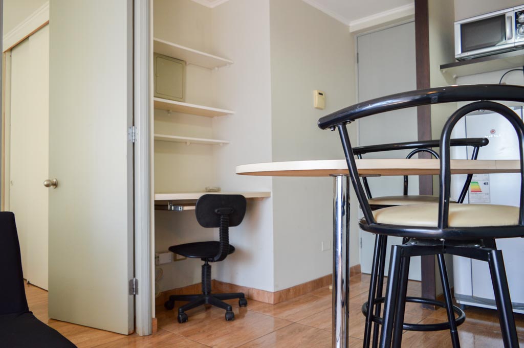 This 1 bedroom furnished Apartment is located a 6 minutes’ walk from the bus stop and a 6 minutes’ walk from the Metro Station Santa Lucía.The apartment has a living room, dinning room, kitchen (open), 1 bathroom and balcony. The bedroom 1 has a double bed, closet, 2 nightstands, TV and bathroom in suite. The place measures 29m² + 2m² of balcony approximately Should be considered, the payment of the expenses of services of common expenses, hot water, cold water and electricity that add $ 116USD approximately. The accommodation has in-house share laundry, price per load for both washers or dryers is $ 1USD approximately. You should pay a security deposit, which will be returned at the end of the lease term; The tenant(s) must also pay $ 39USD fee when the unit is returned for cleaning. The unit is located close to the Biblioteca Nacional de Chile, the Municipal Theater of Santiago, Cine Arte, craft fairs, cultural centers and the Santa Lucia Hill (an important focus for tourism and Sunday walks due to the attractions it presents, such as water fountains, terraces and viewpoints where you can enjoy a privileged view of Santiago.)