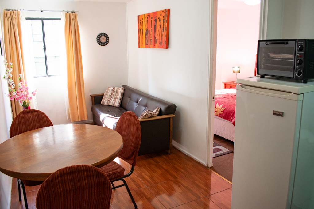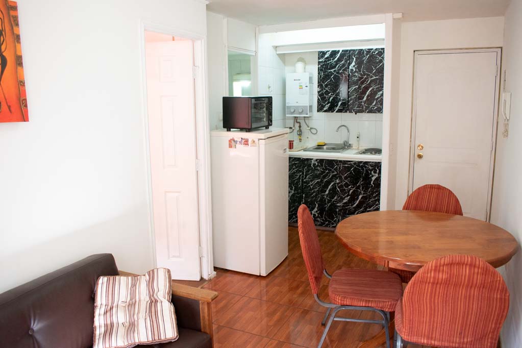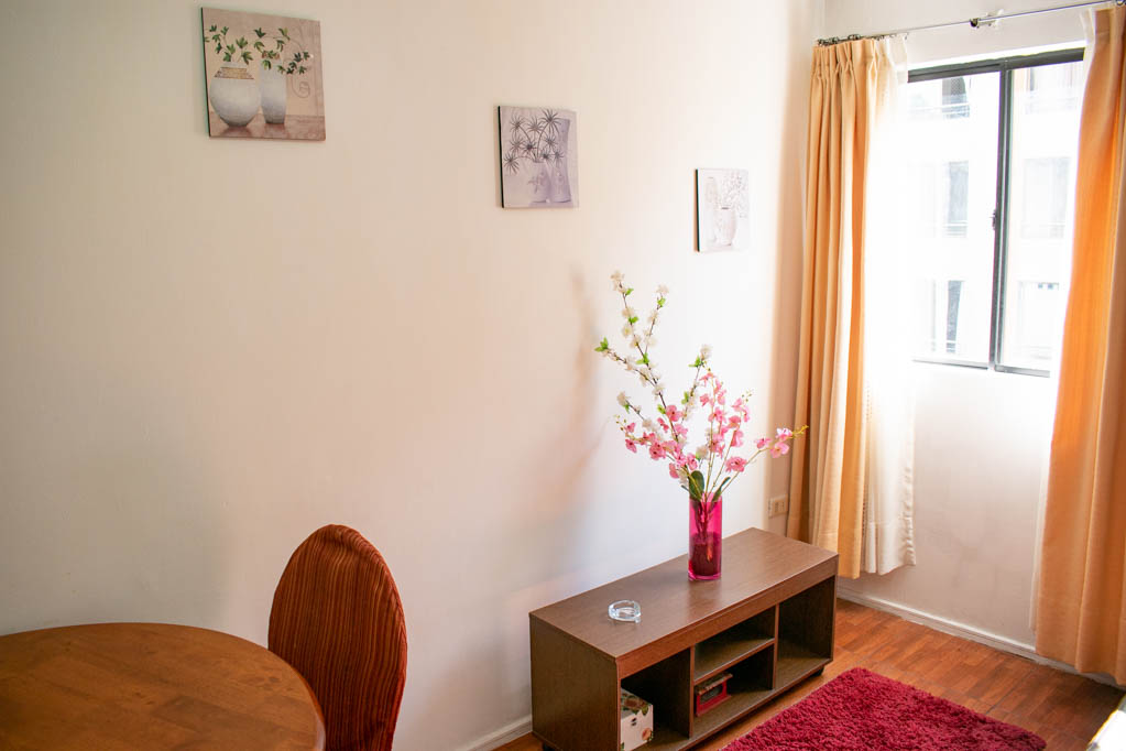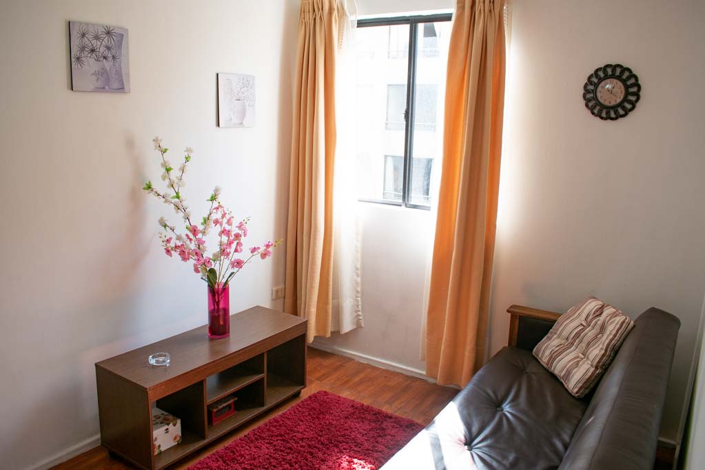 This 1 bedroom furnished Apartment is located a 2 minutes’ walk from the bus stop and a 1 minute’ walk from the Metro Station Bellas Artes.The apartment has a living room, dinning room, kitchen (open) and 1 bathroom. The bedroom 1 has a double bed, closet, 2 nightstands and chair. The place measures 30m² approximately. Should be considered, the payment of the expenses of services of common expenses, hot water, cold water, electricity and gas that add $ 110USD approximately. You should pay a security deposit, which will be returned at the end of the lease term; The tenant(s) must also pay $ 44USD fee when the unit is returned for cleaning. The unit is located close to the neighborhoods Lastarria and Bellas Artes (historic - cultural neighborhoods), characterized by its XIX century mansions restored and used as restaurants, coofee shops, bookstores, cultural centers, among others. A few steps from it, you will find the Chilean National Museum of Fine Arts, in which there are houses the most valuable national and international arts, and the Forest Park, an ideal place for sharing with friends, play sports and go for a walk.