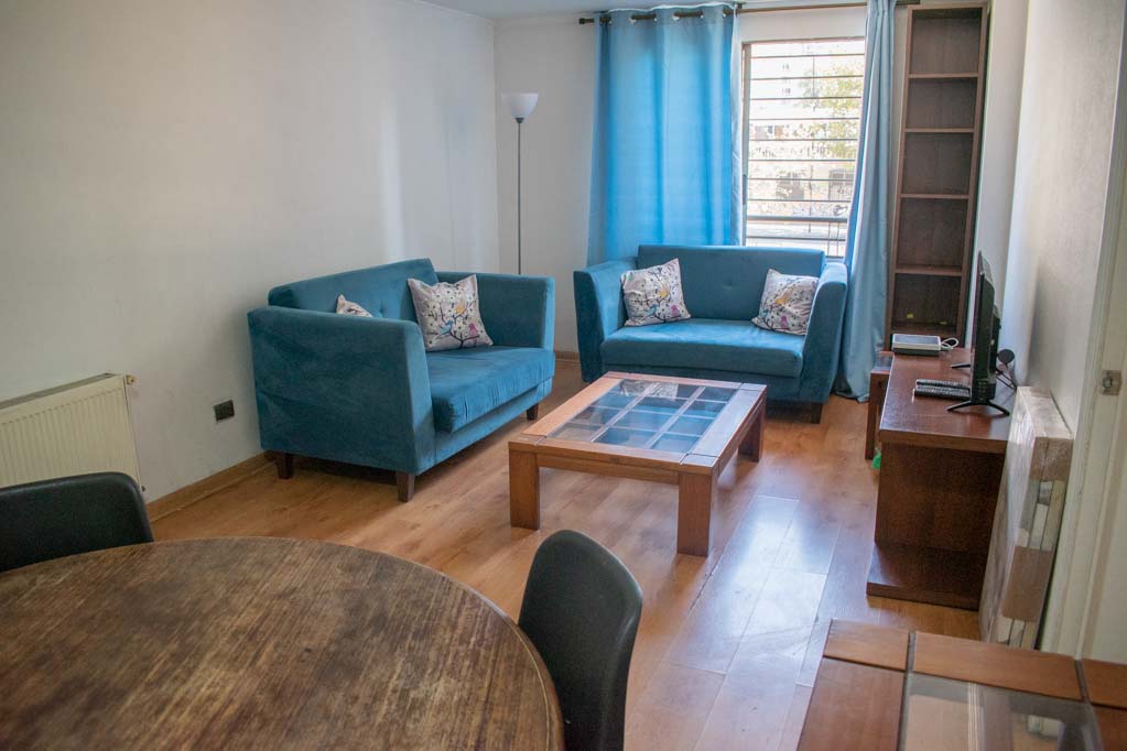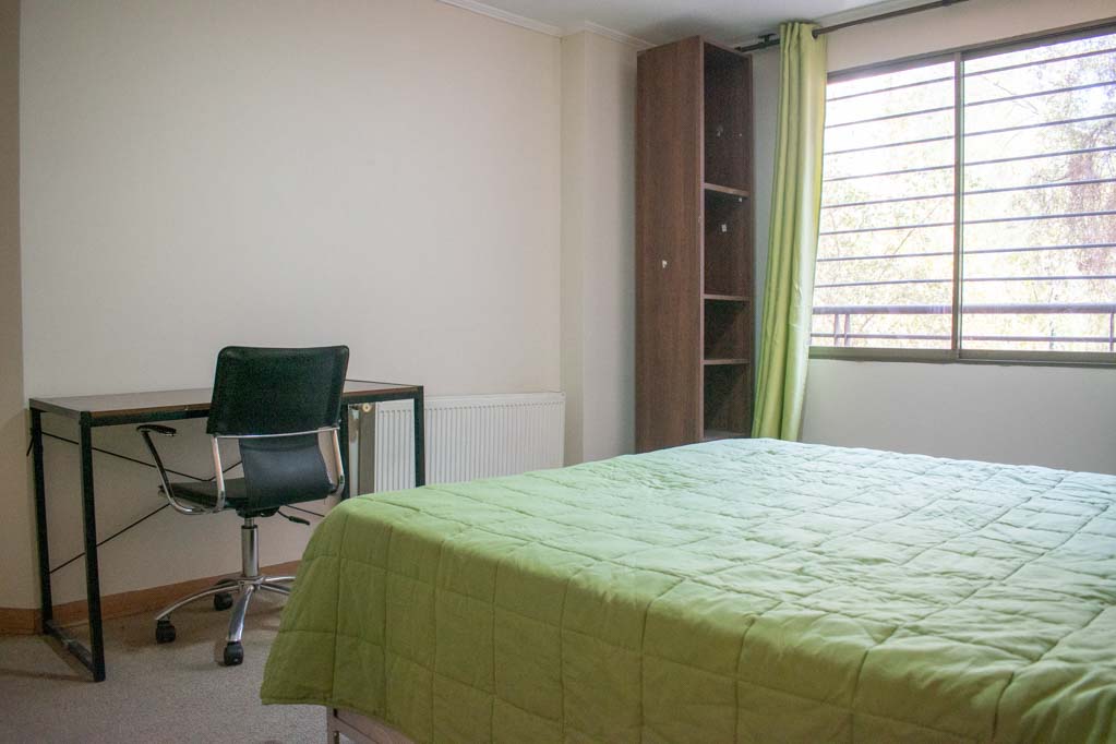 This 4 bedrooms furnished Apartment is located a 2 minutes’ walk from the bus stop and a 1 minute’ walk from the Metro Station Parque Almagro.The apartment has a living room, dinning room, kitchen (closed) and 2 bathrooms. The bedroom 1 has a single bed, closet, nightstand, desk and chair. The bedroom 2 has a single bed, closet, nightstand, desk and chair. The bedroom 3 has a single bed, closet, nightstand, desk and chair. The bedroom 4 has a double bed, walk-in closet, 2 nightstands, desk, chair and bathroom in suite. The place measures 100m² approximately. The cost of services like common expenses, hot water, cold water, electricity, gas and internet are paid in advance together with the monthly rent, with a consumption limit of $ 380USD. The accommodation has in-house share laundry, price per load for both washers or dryers is $ 2USD approximately. You should pay a security deposit, which will be returned at the end of the lease term; The tenant(s) must also pay $ 67USD fee when the unit is returned for cleaning. The unit is located close to the Almagro Park, which has green areas to practice exercises and walk; In the area there are outstanding monuments such as the Causiño Palace and the church of Los Sacramentinos, there is also the campus of the Central University, which provides a youthful air to the sector with its students. In addition, there are various types of public transport to different parts of the city.