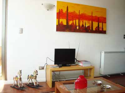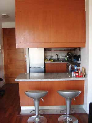 This 2 bedrooms furnished Apartment.The apartment has a kitchen (open) and 1 bathroom. The place measures 45m² + 5m² of balcony approximately The cost of services like common expenses, hot water, cold water, electricity, gas and internet are paid in advance together with the monthly rent, with a consumption limit of $ 90USD. The accommodation has in-house share laundry approximately. You should pay a security deposit, which will be returned at the end of the lease term; The tenant(s) must also pay $ 17USD fee when the unit is returned for cleaning. The unit is located close to the neighborhood República is characterized by its academic environment, and its diversity in bars and food places. In this area there are multiple universities and professional institutes, such as Andrés Bello National University, Diego Portales University, the University of Chile, among others.