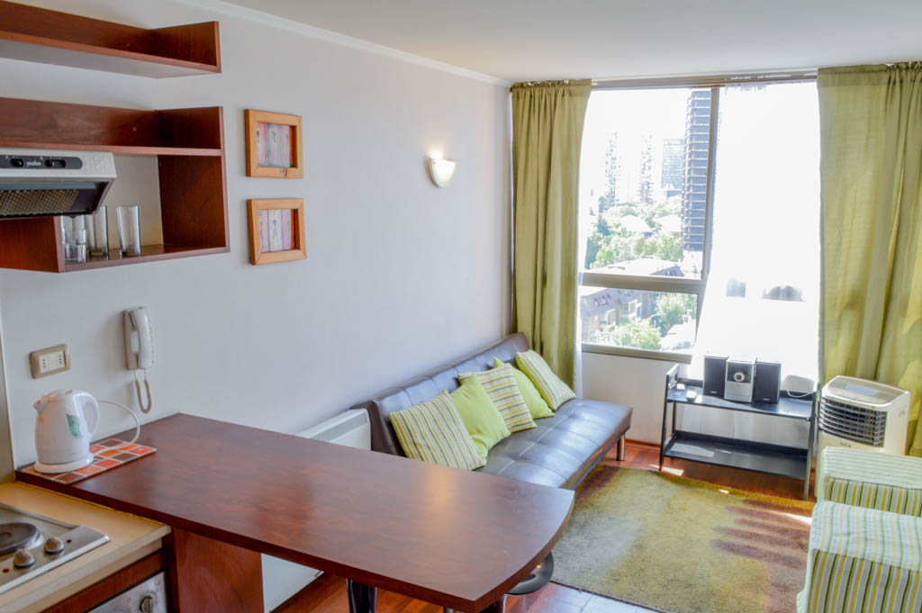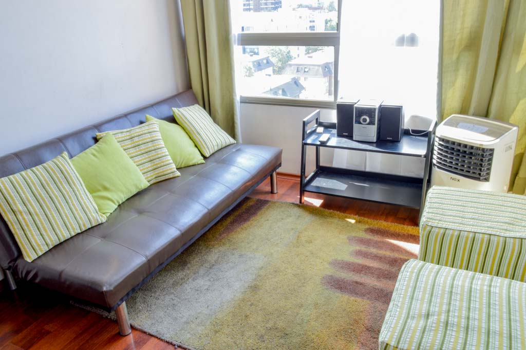 This 1 bedroom furnished Apartment is located a 3 minutes’ walk from the bus stop and a 5 minutes’ walk from the Metro Station Parque Bustamante.The apartment has a living room, dinning room, kitchen (open) and 1 bathroom. The bedroom 1 has a double bed, closet, 2 nightstands, TV and bathroom in suite. The place measures 34m² approximately. Should be considered, the payment of the expenses of services of common expenses, hot water, cold water and electricity that add $ 99USD approximately. The accommodation has in-house share laundry, price per load for both washers or dryers is $ 2USD approximately. You should pay a security deposit, which will be returned at the end of the lease term; The tenant(s) must also pay $ 23USD fee when the unit is returned for cleaning. The unit is located close to Bustamante Park, one of the most important green areas of the city of Santiago, is ideal for walking, biking and sharing with friends or family. Nearby, there are the Catholic University, the University of Chile and a literary coffee shop, where you will find a wide variety of books to order and read in the same place, accompanied by a coffee. Only 10 minutes from the Park, there is the well-known Bellavista neighborhood.