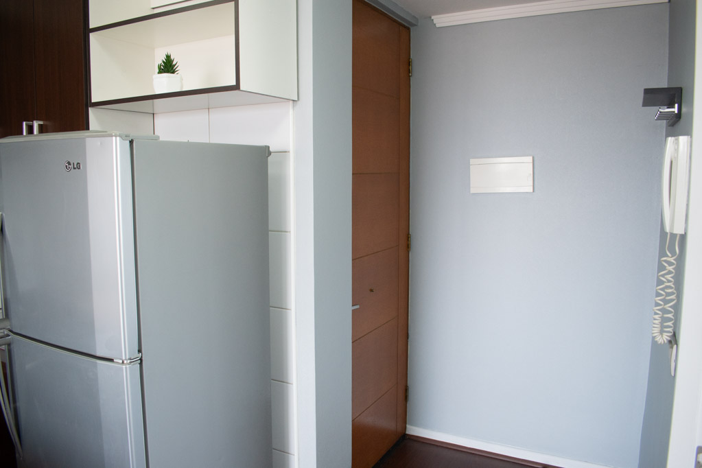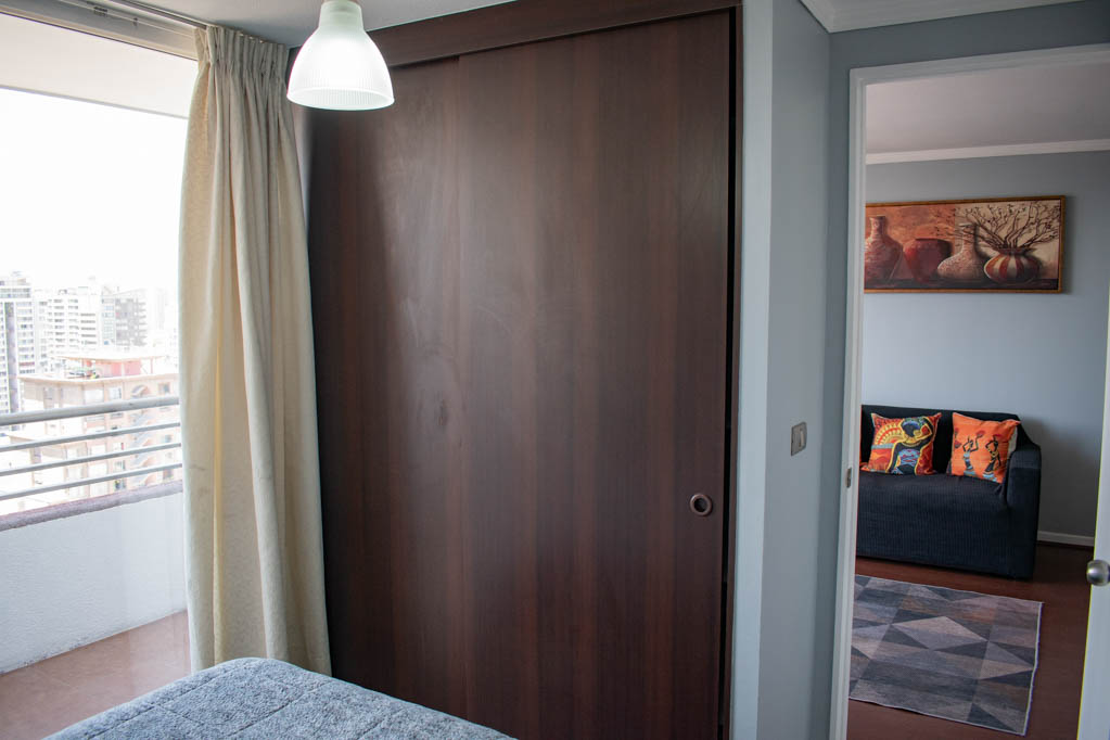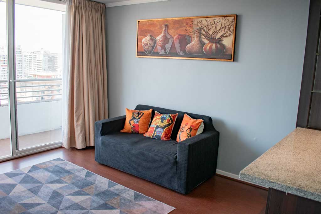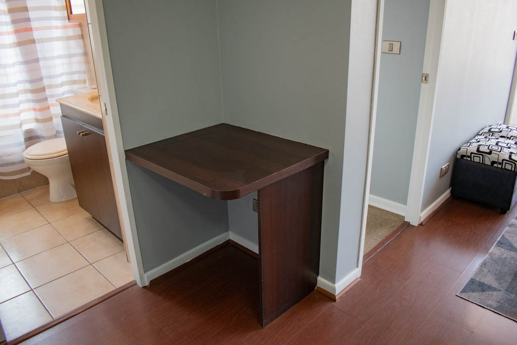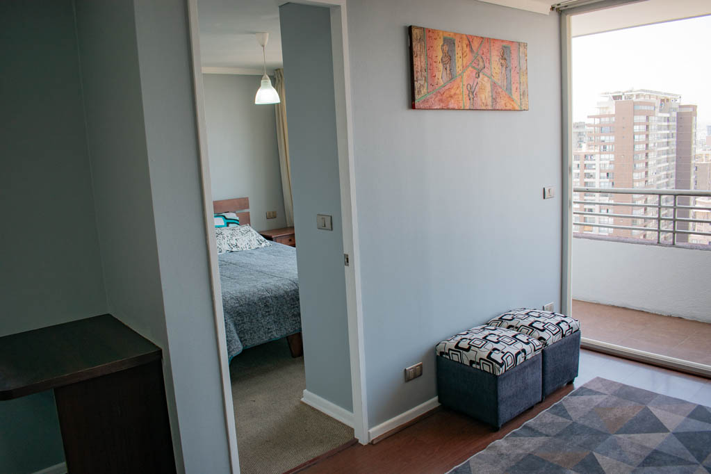 This 2 bedrooms furnished Apartment is located a 2 minutes’ walk from the bus stop and a 7 minutes’ walk from the Metro Station Santa Lucía.The apartment has a living room, dinning room, kitchen (open), 1 bathroom and terrace. The bedroom 1 has a double bed, closet and 2 nightstands. The bedroom 2 has a closet, desk and chair. The place measures 43m² + 9m² of balcony approximately Should be considered, the payment of the expenses of services of common expenses, hot water, cold water and electricity that add $ 137USD approximately. The accommodation has in-house share laundry, price per load for both washers or dryers is $ 2USD approximately. You should pay a security deposit, which will be returned at the end of the lease term; The tenant(s) must also pay $ 46USD fee when the unit is returned for cleaning. The unit is located close to the Biblioteca Nacional de Chile, the Municipal Theater of Santiago, Cine Arte, craft fairs, cultural centers and the Santa Lucia Hill (an important focus for tourism and Sunday walks due to the attractions it presents, such as water fountains, terraces and viewpoints where you can enjoy a privileged view of Santiago.)