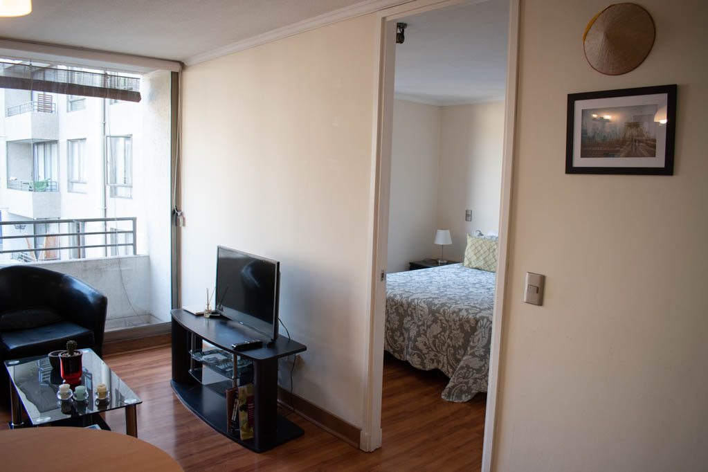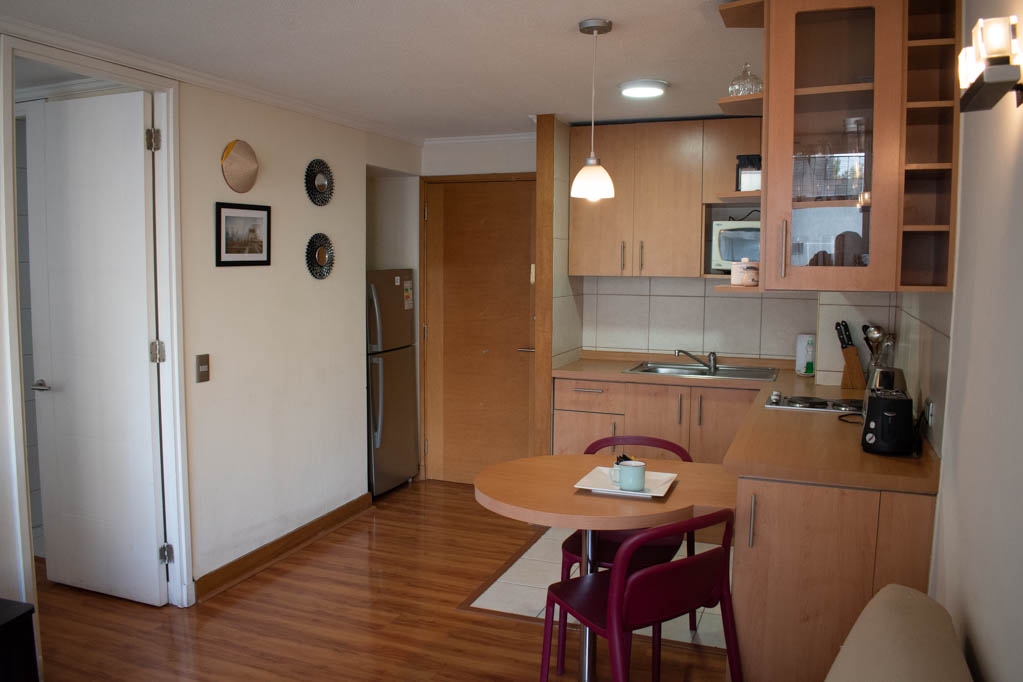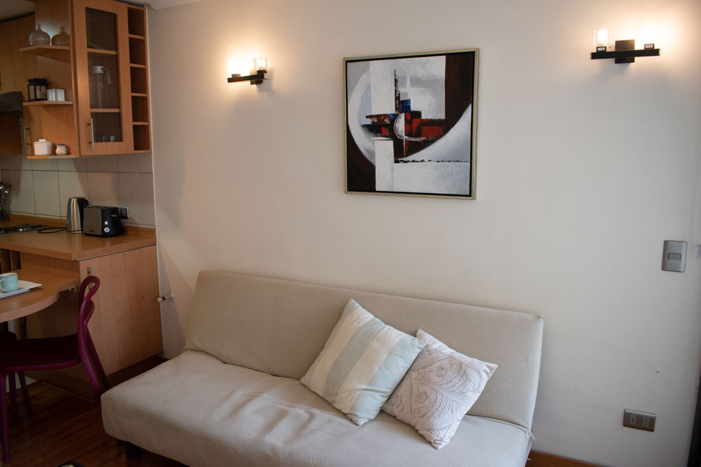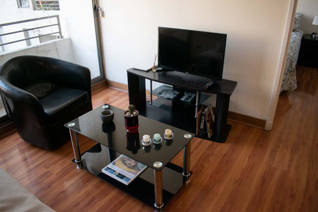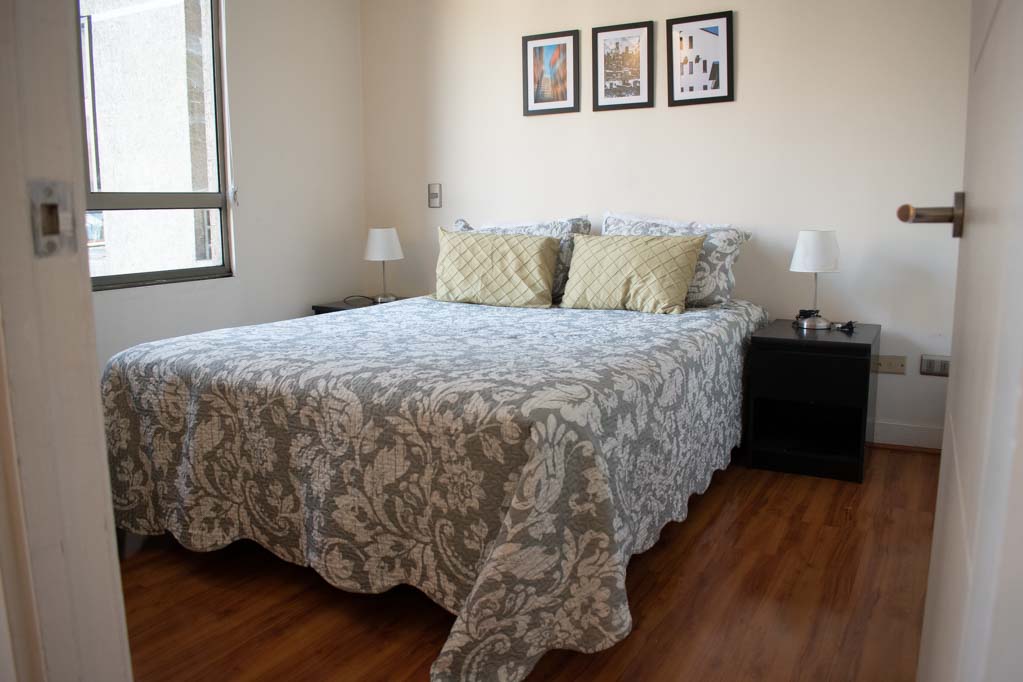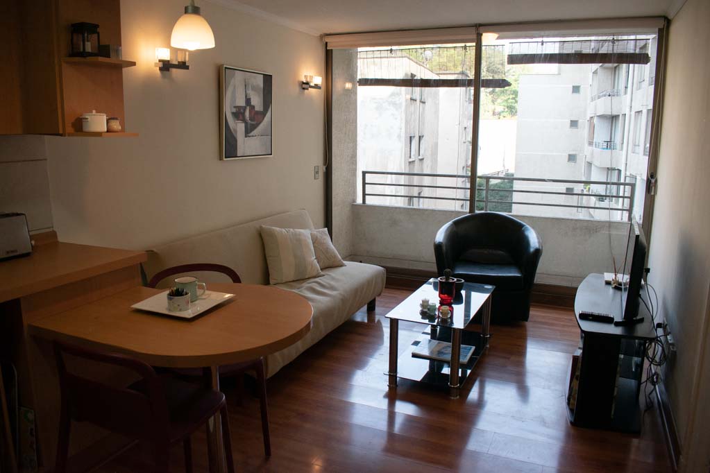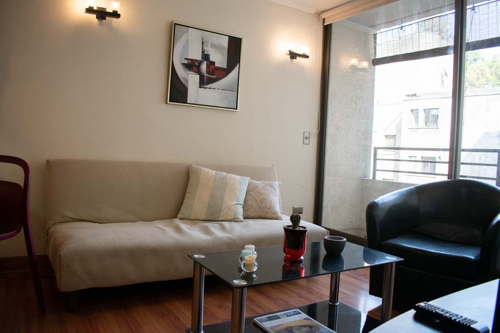 This 1 bedroom furnished Apartment is located a 2 minutes’ walk from the bus stop and a 2 minutes’ walk from the Metro Station Universidad Católica.The apartment has a living room, dinning room, kitchen (open), 1 bathroom and balcony. The bedroom 1 has a double bed, closet, 2 nightstands, desk, chair and bathroom in suite. The place measures 34m² + 1m² of balcony approximately. The cost of services like common expenses, hot water, cold water, electricity and internet are paid in advance together with the monthly rent, with a consumption limit of $ 145USD. The accommodation has in-house share laundry, price per load for both washers or dryers is $ 1USD approximately. You should pay a security deposit, which will be returned at the end of the lease term; The tenant(s) must also pay $ 34USD fee when the unit is returned for cleaning. The unit is located close to the Faculty of Architecture of the University of Chile and the Central House of the Catholic University. On Bernardo O'Higgins Avenue (better known as Alameda) it is possible to find a wide range of shops, banks, cinemas, restaurants and public transport. In its vicinity, you can also enjoy the neighborhood Lastarria, known for its variety of bars, cafés, restaurants and cultural centers such as the GAM.